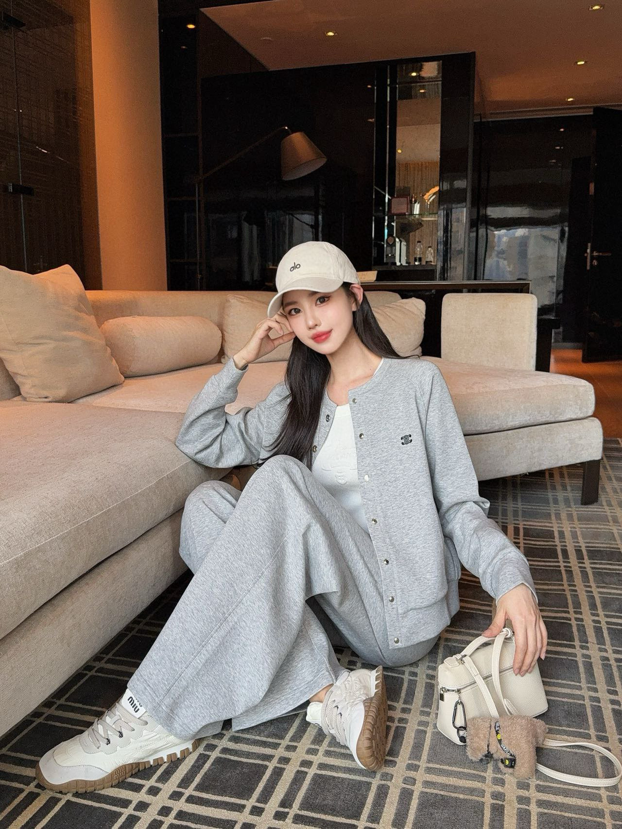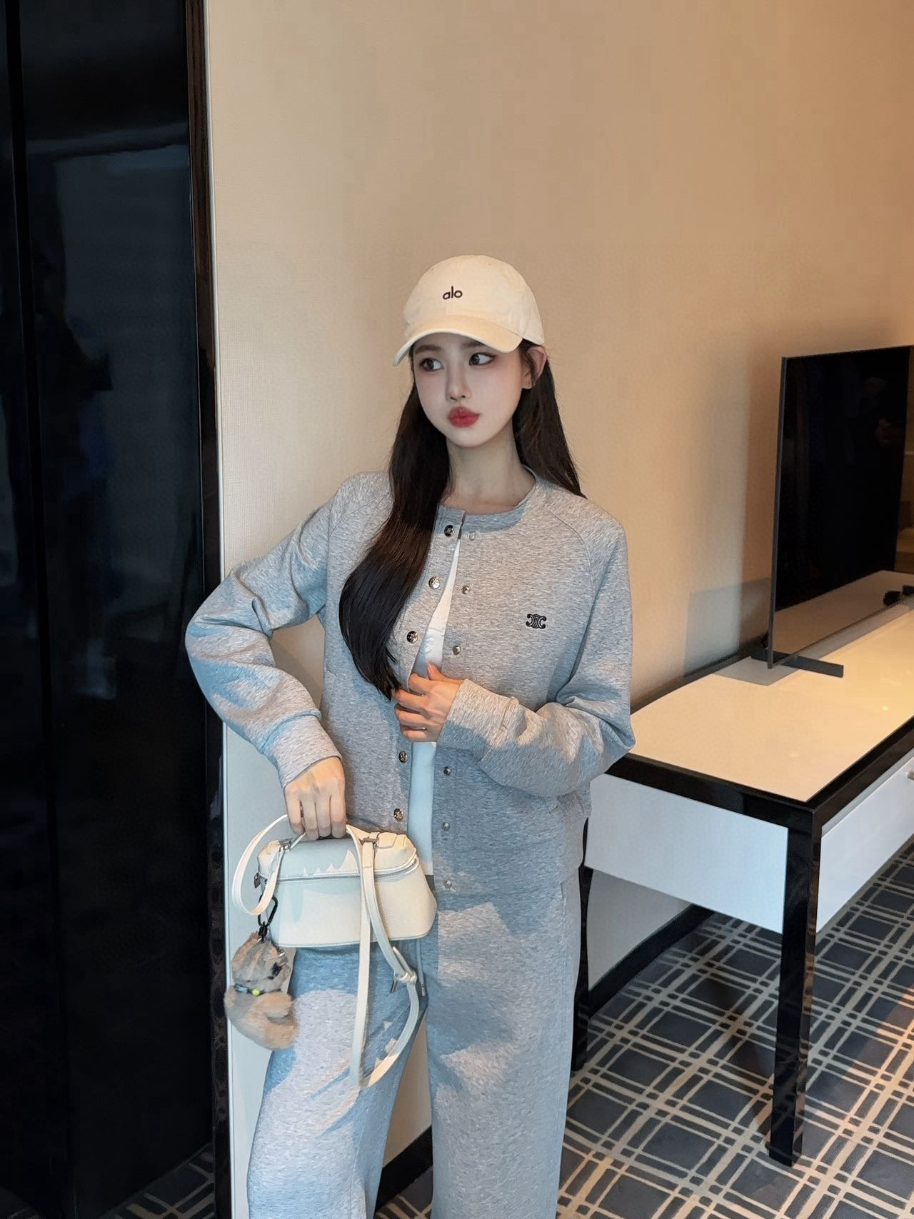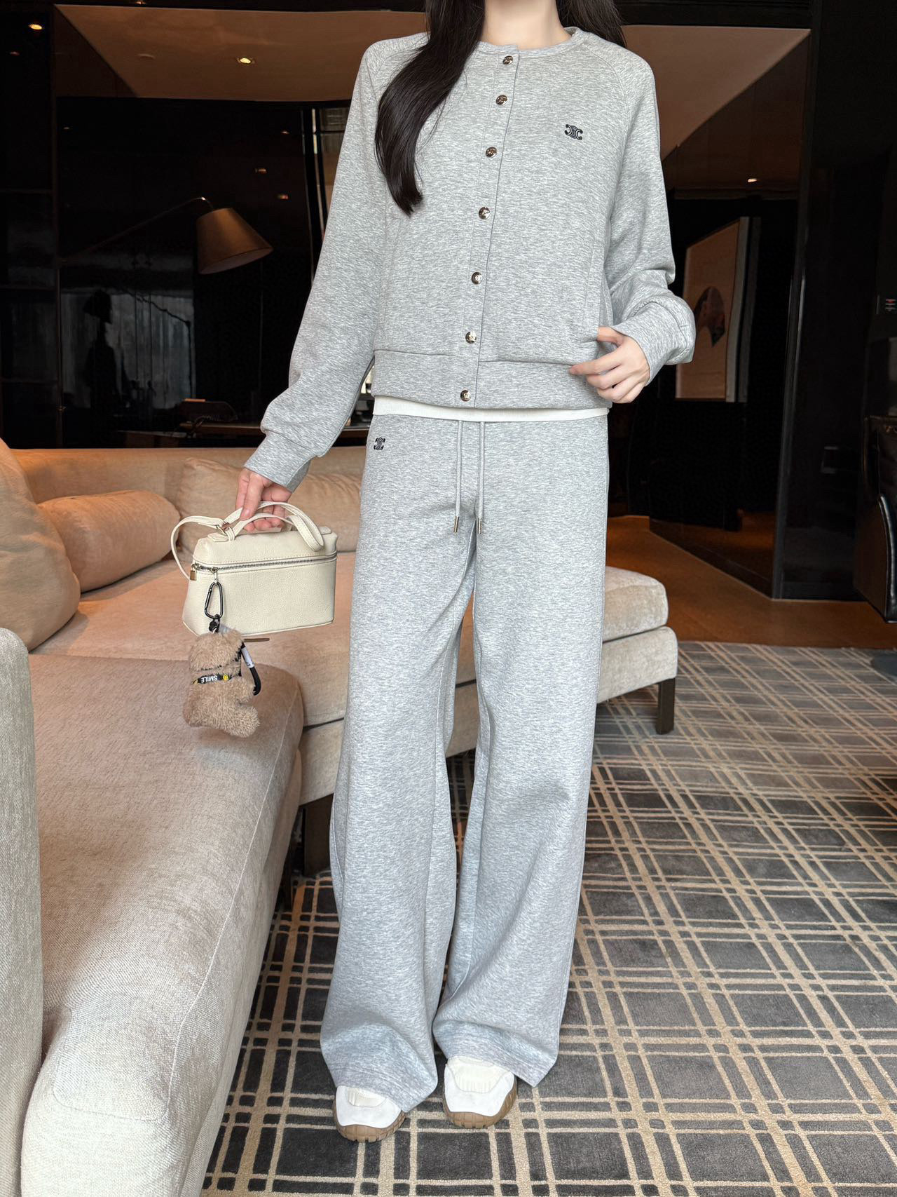 Celine赛琳凯旋门刺绣定制五金扣圆领外套抽绳松紧腰长裤休闲套装