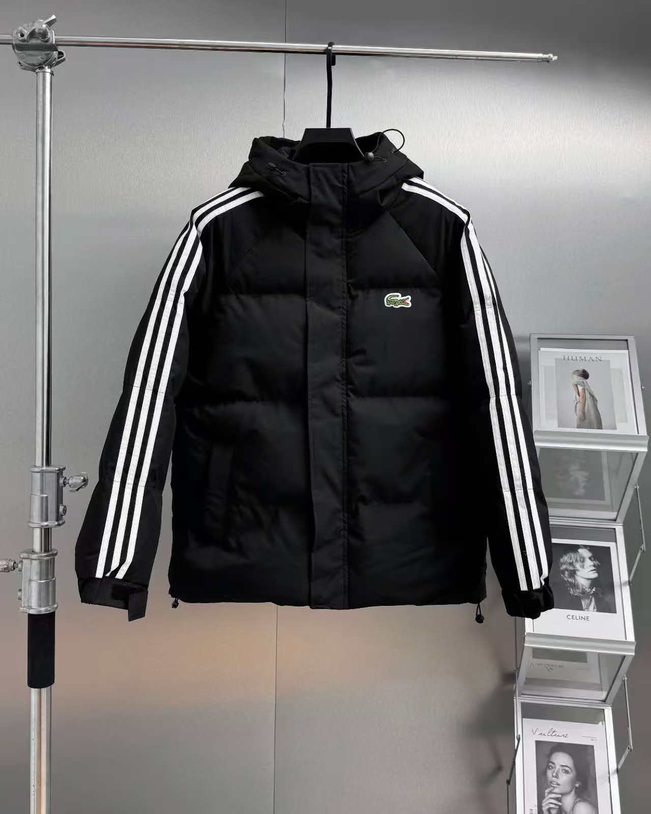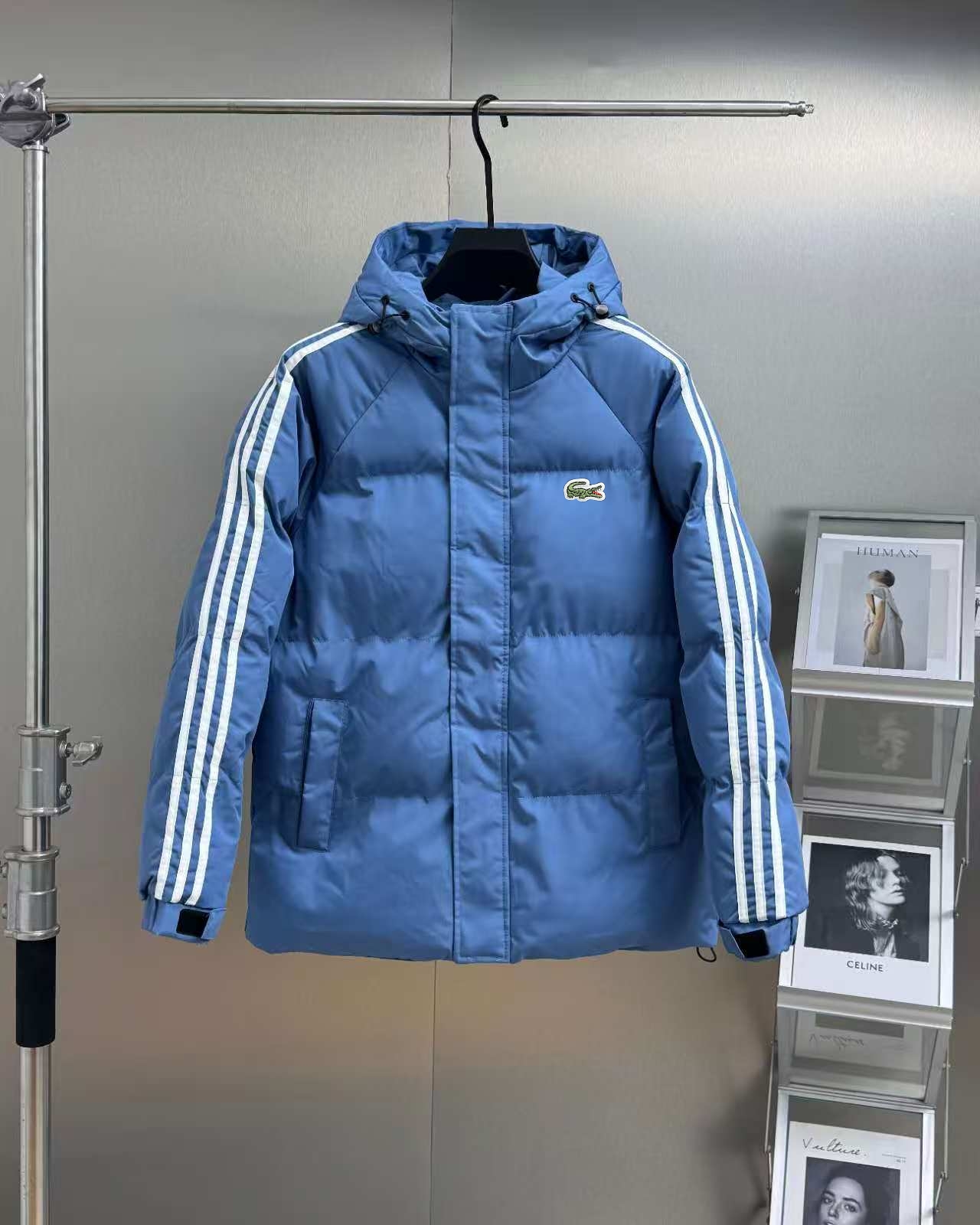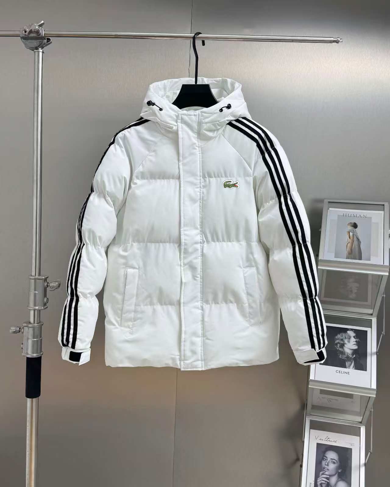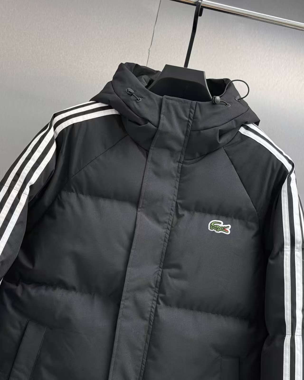 LACOSTE 法国 鳄鱼经典三条杠系列 男士运动休闲连帽防风羽绒棉服外套