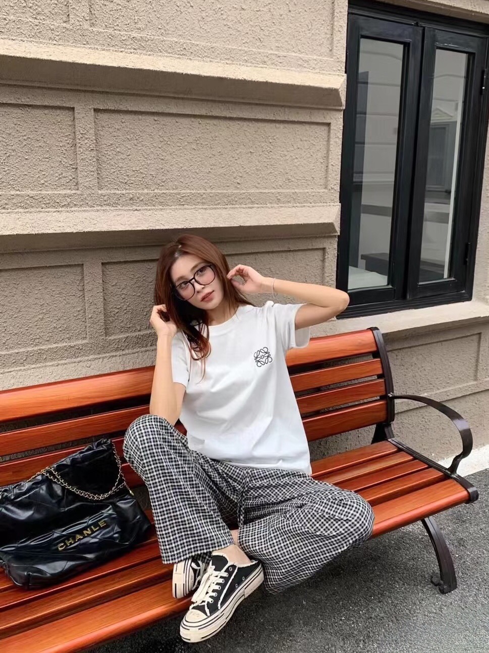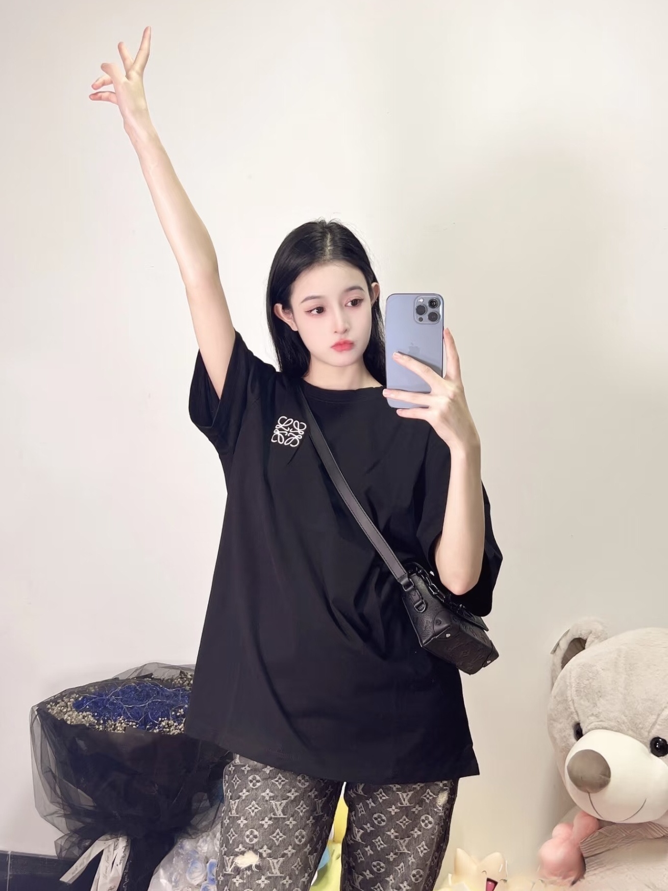 上身图 罗意威 胸前刺绣款 经典圆领短袖T恤 426402