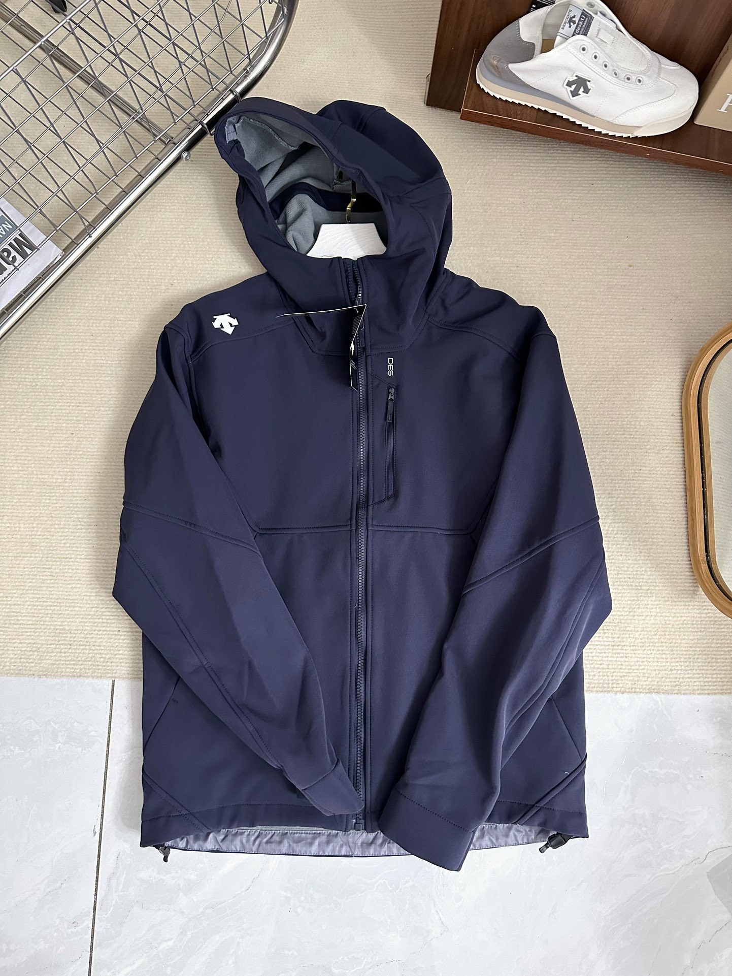 DESCENTE迪桑特25秋冬季防泼水抓绒跑步连帽梭织男外套D4431RJK01A 全天候户外拉绒休闲运动连帽软壳冲锋衣