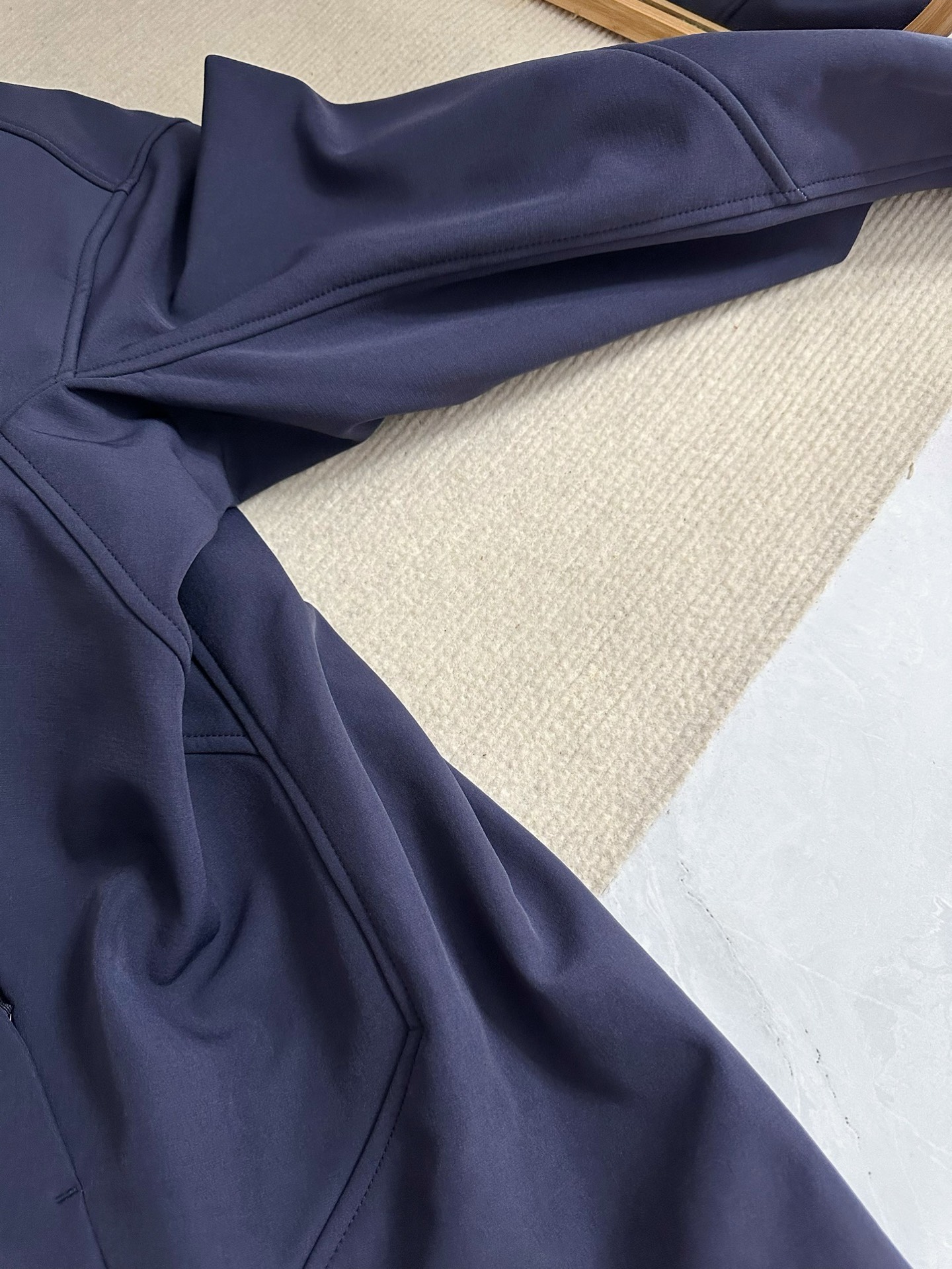 接缝都在内里直接进行包边加插肩袖 加高立领 无摩擦感