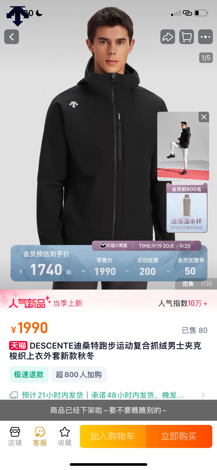 180212191 - 供 DESCENTE迪桑特25秋冬季防泼水抓绒跑步连帽梭织男 422520