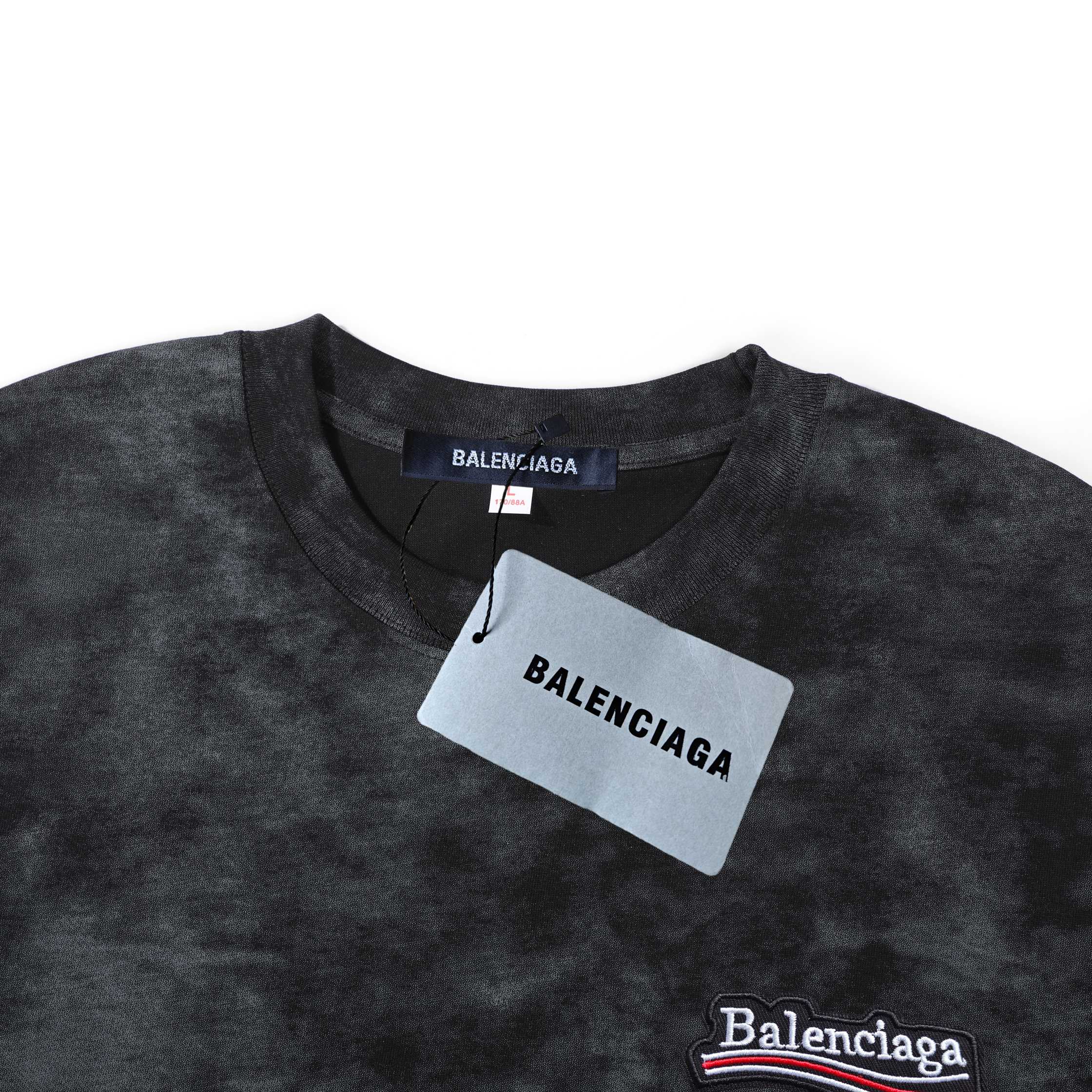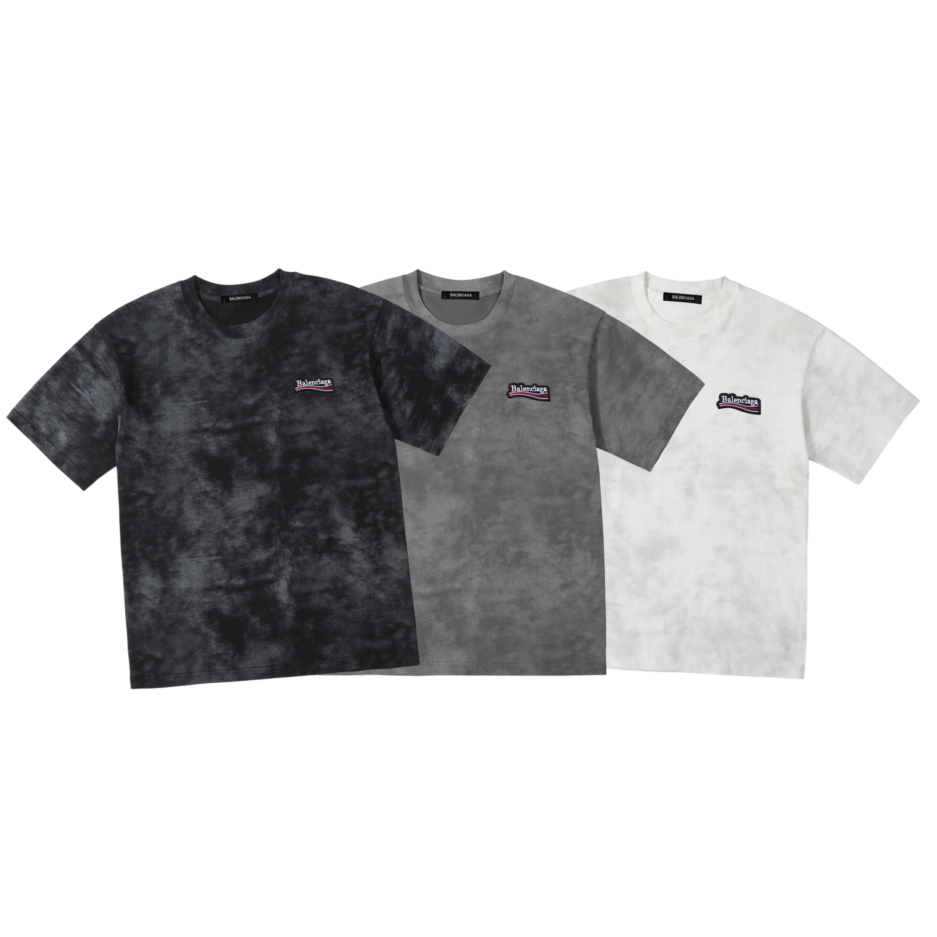批发 BALENCIAGA巴黎世家刺绣标水洗做旧扎染棉质短袖T恤