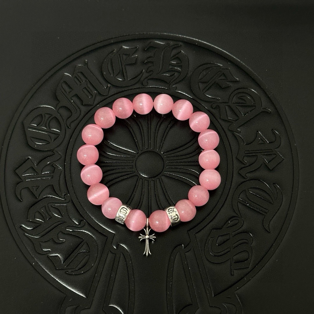 85203651 - 三珠 Chrome hearts克罗心粉色猫眼石泰银手链 418575