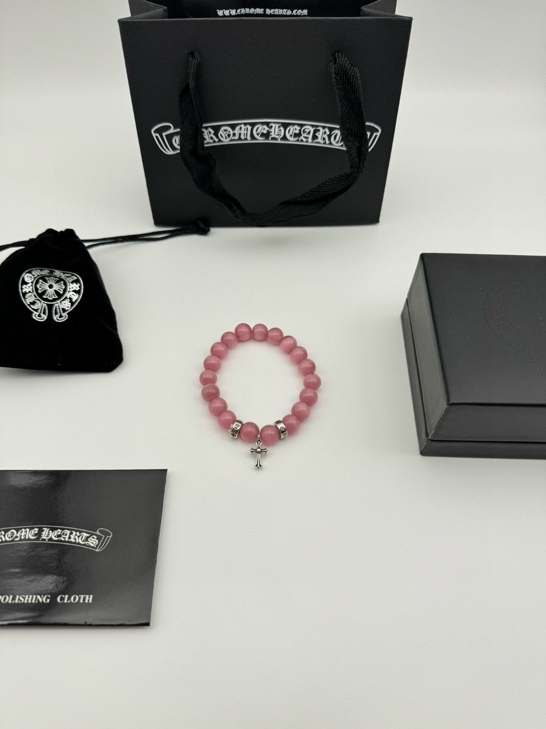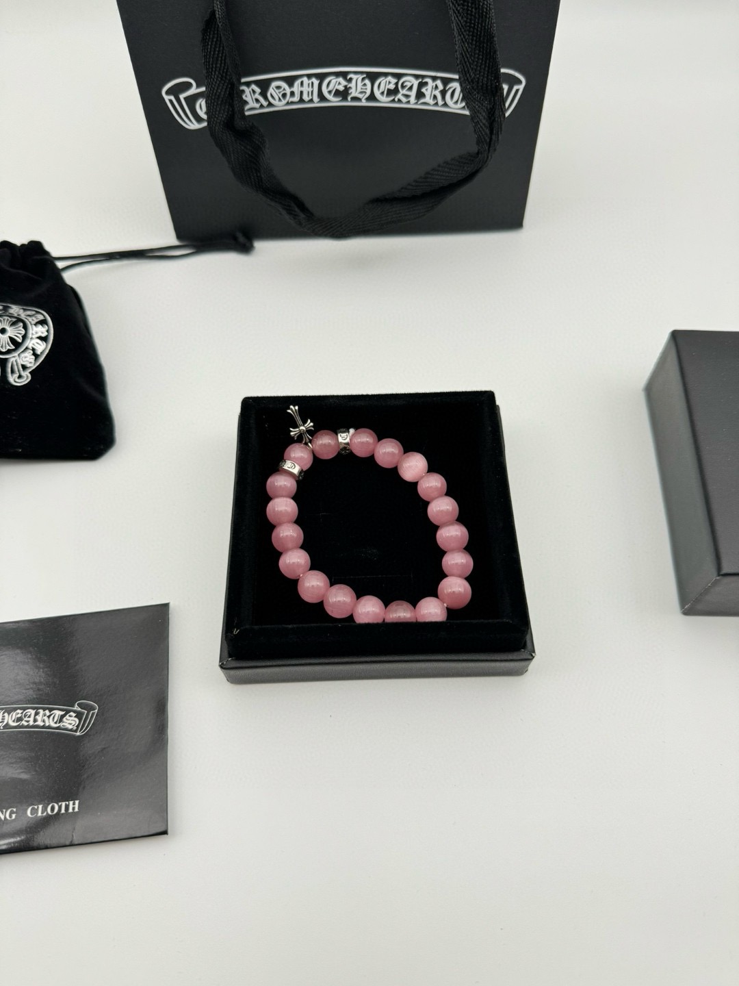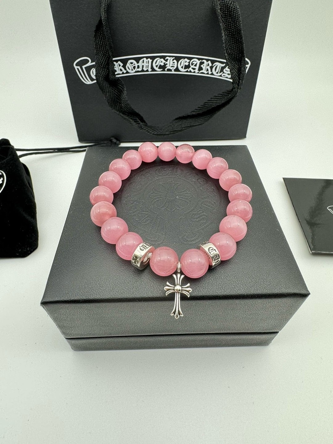 三珠 Chrome hearts克罗心粉色猫眼石泰银手链