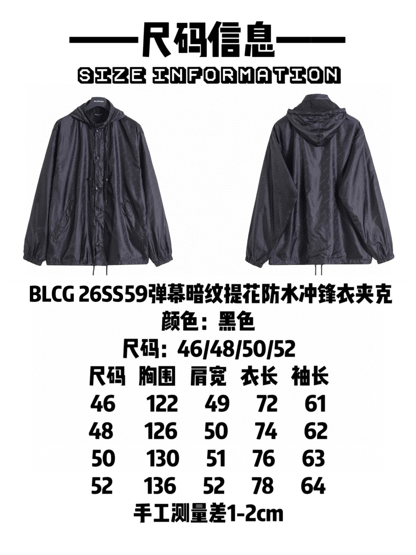 巴黎世家 𝘽𝘼𝙇𝙀𝙉𝘾𝙄𝘼𝙂𝘼 BLCG 26SS 59弹幕暗纹提花冲锋衣夹克