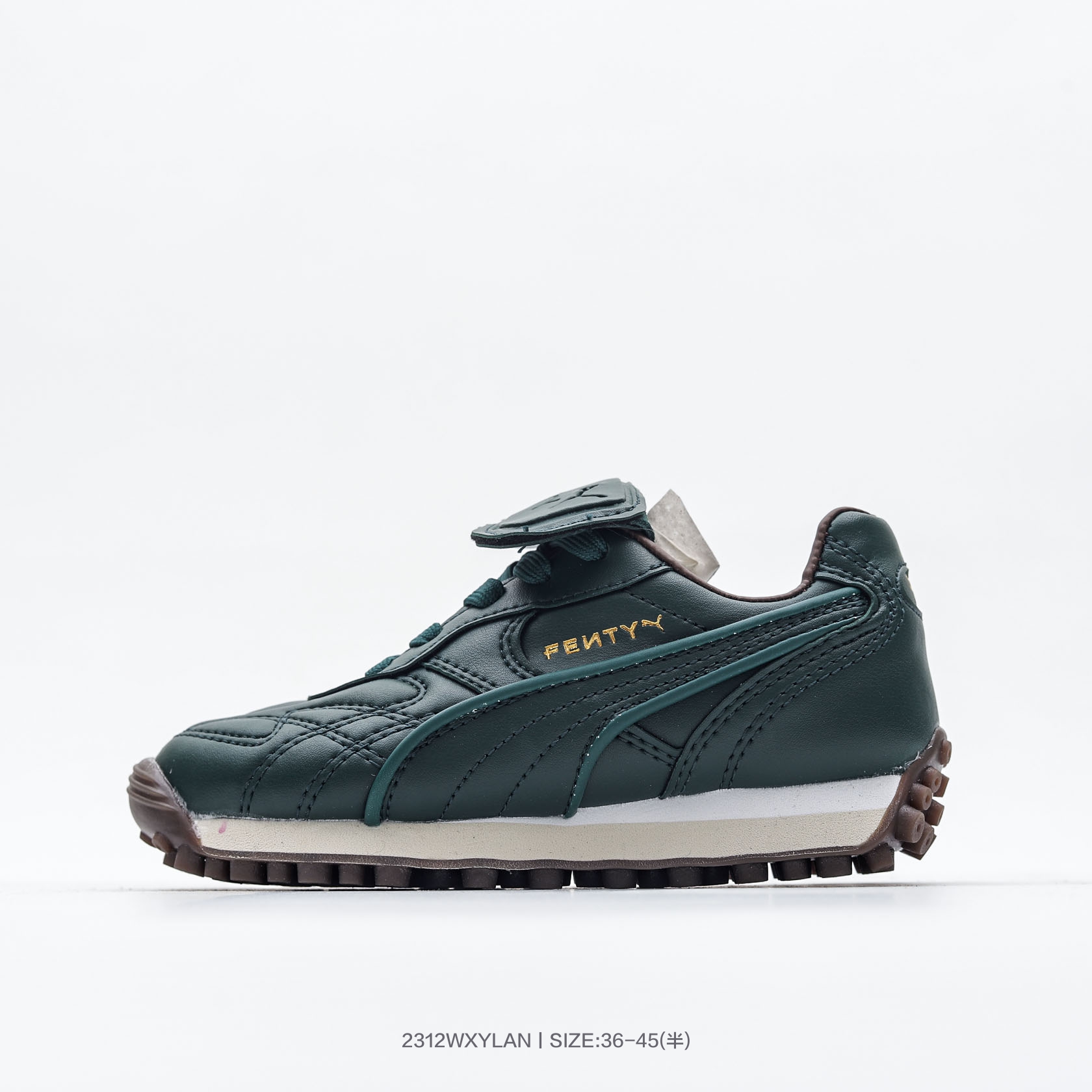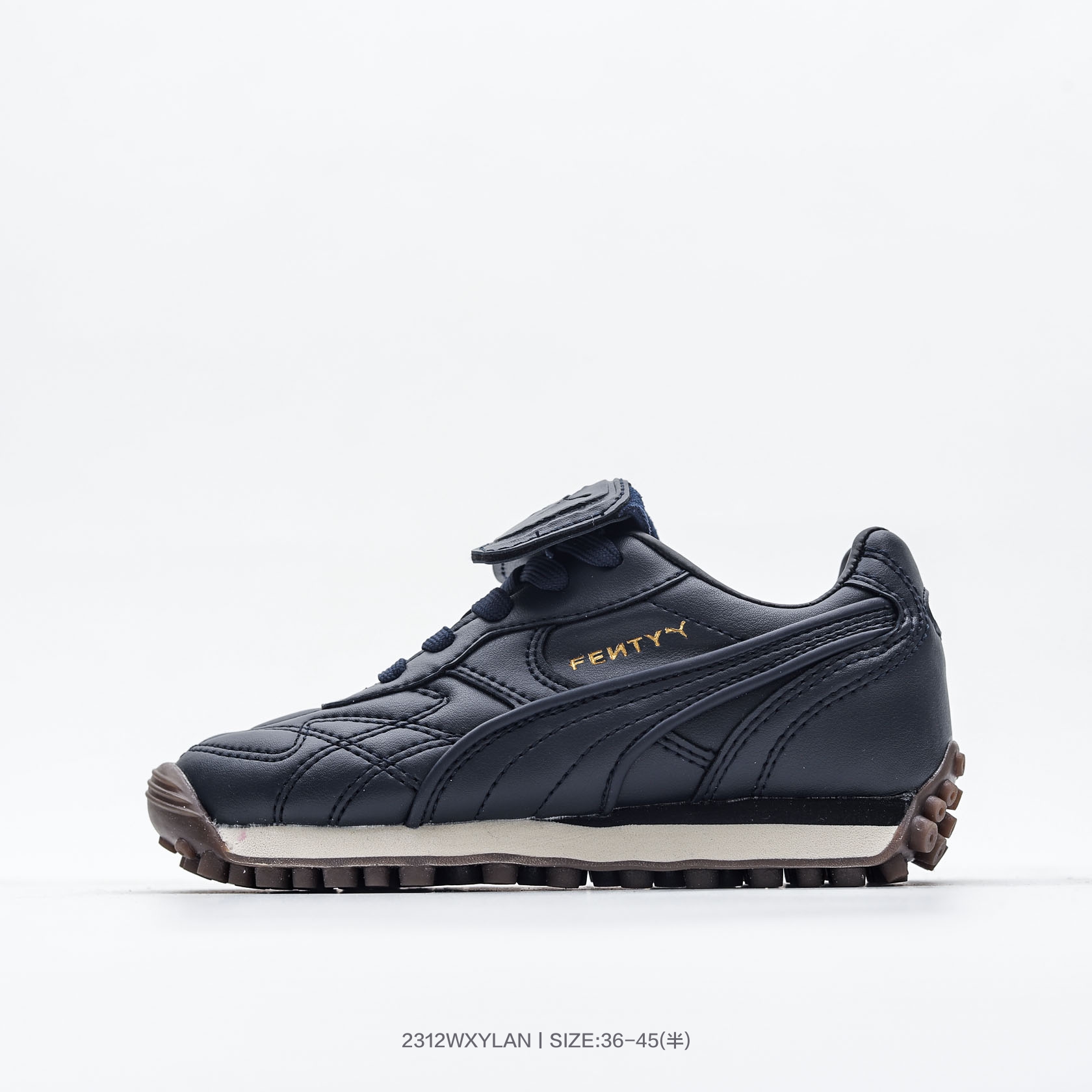 亲子童鞋 FENTY x彪马 PUMA Avanti 长舌鞋款 焕新诠释足球潮流时尚 国际巨星蕾哈娜 Rihanna 与全球知名运动品牌PUMA延续合作篇章 全新配色打造 PUMA King 鞋的高品质皮革与复古跑鞋 PUMA Easy Rider 的外底设计两大经典元素集于一身 材质方面采用柔软的复古皮革打造鞋面 并运用皮革滚边的设计点缀同色系皮质跑道 LOGO 细节上 鞋舌处印有 FENTY 品牌标志性字样 鞋带头则配以金色装饰 塑造极具质感的复古潮流风尚 货号 398983 01