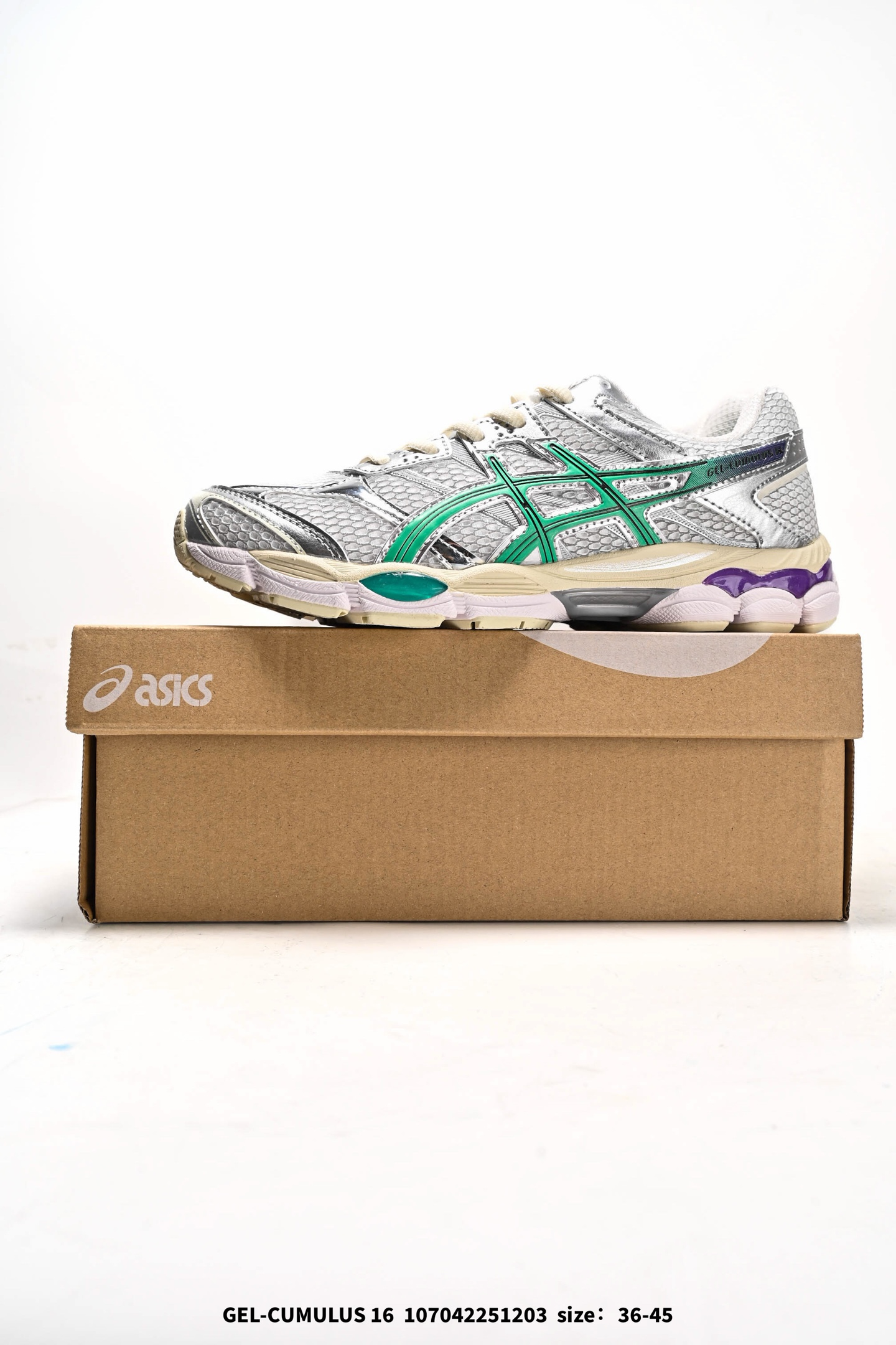 亚瑟士 asics 男女鞋跑步鞋GEL CUMULUS 16 SSCB夏季新品预售运动鞋缓震联名款老爹鞋 ASICS GEL CUMULUS 16 是一款定位为缓冲减震的次 级跑鞋 适合体重不大的跑者穿着 1 它相比前代改进了Trusstic防震片 增大了GEL缓震胶 并采用了最新的FluidRide双层中底 上层为SpEVA 下层为solyte 增强了缓冲和回弹能力 鞋面采用多种材质组合 包括光泽合成皮革覆盖层 无缝面板和开放式网眼底层 营造出技术美学的外观 其AHAR超耐磨橡胶大底不仅具有3倍的耐磨性 还兼顾了轻量和良好的抓地性