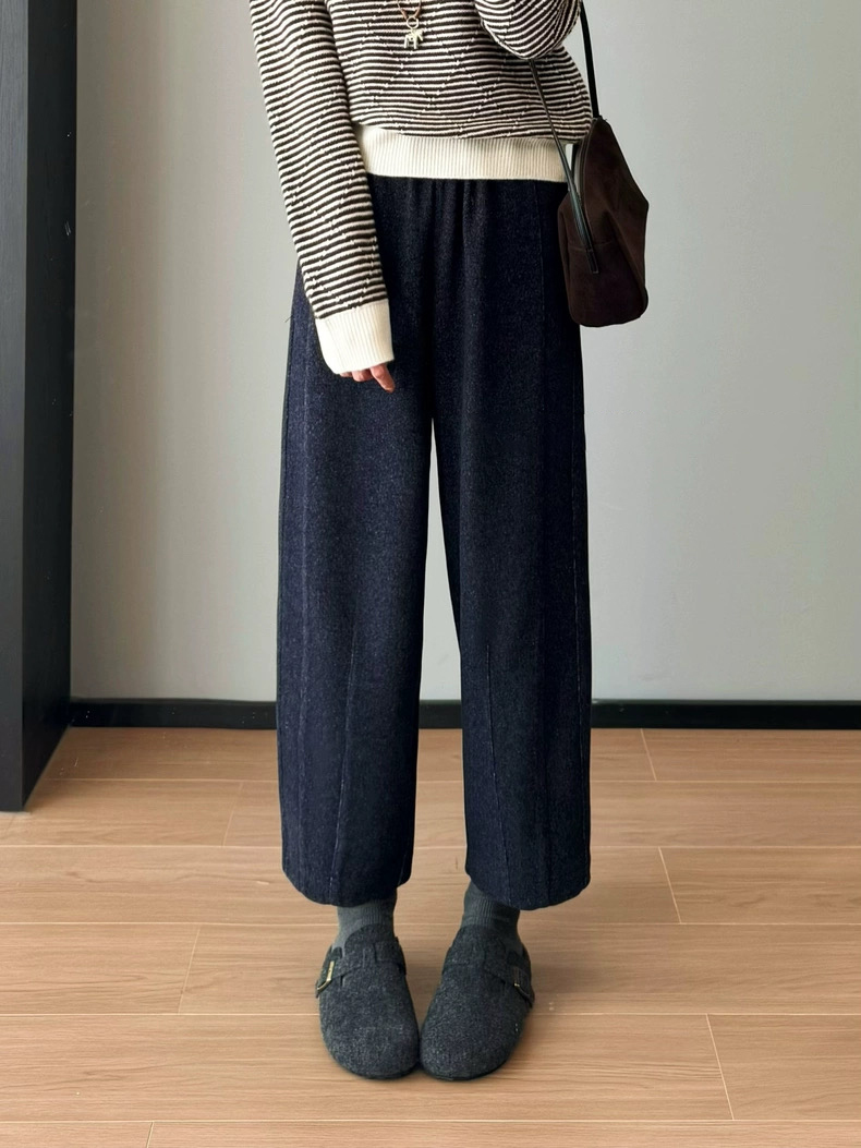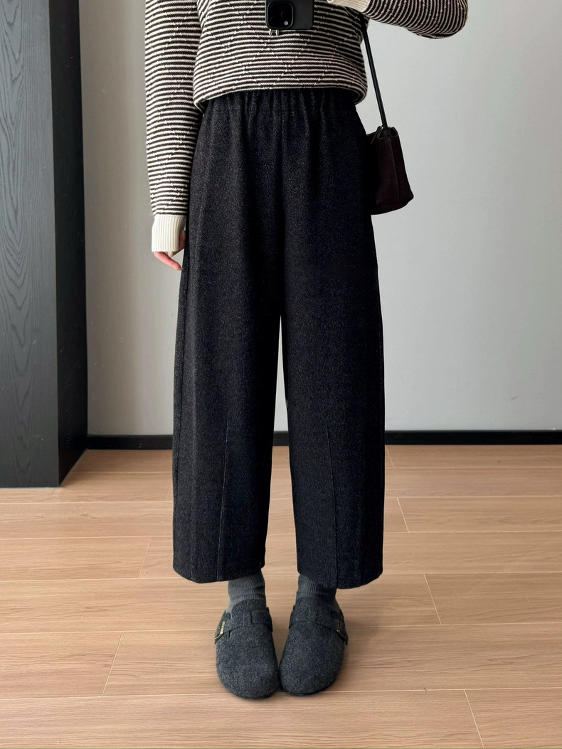 花纱柏林裤 冬季保暖加厚磨毛松紧高腰山本羊毛毛呢马丘裤