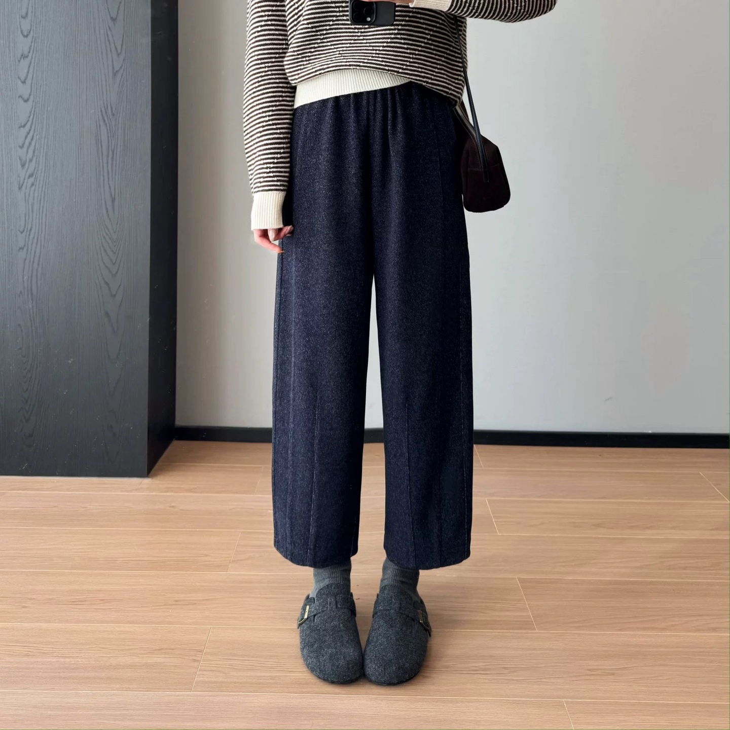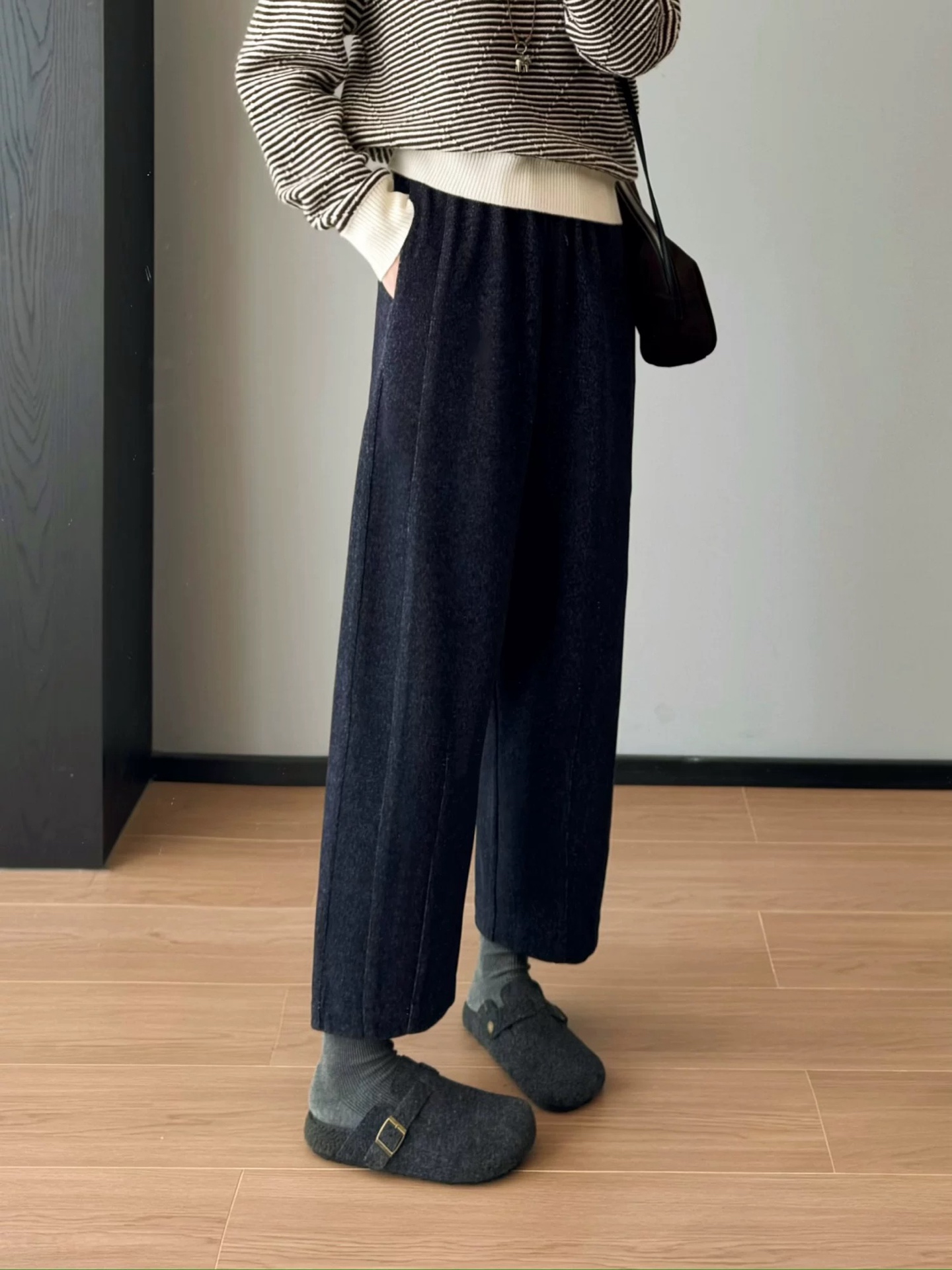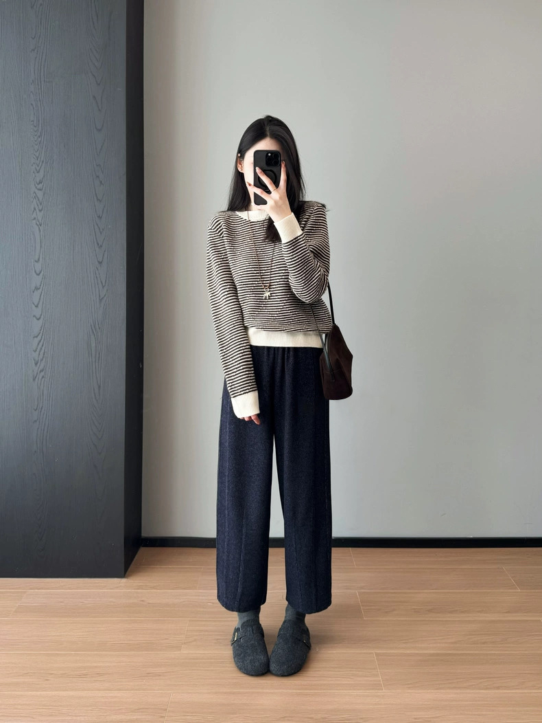 一条由内而外 从版型到材质都让人无可挑剔的一款裤子 马丘裤与羊毛的结合 保暖又时髦 版型挺括不拖沓 定制面料 版型质感都巨好 裤型巨洋气 上身挺括显瘦 属于难得遇到的好面料 足足等了一个月终于出货了 大工厂出货 质量真的太好了