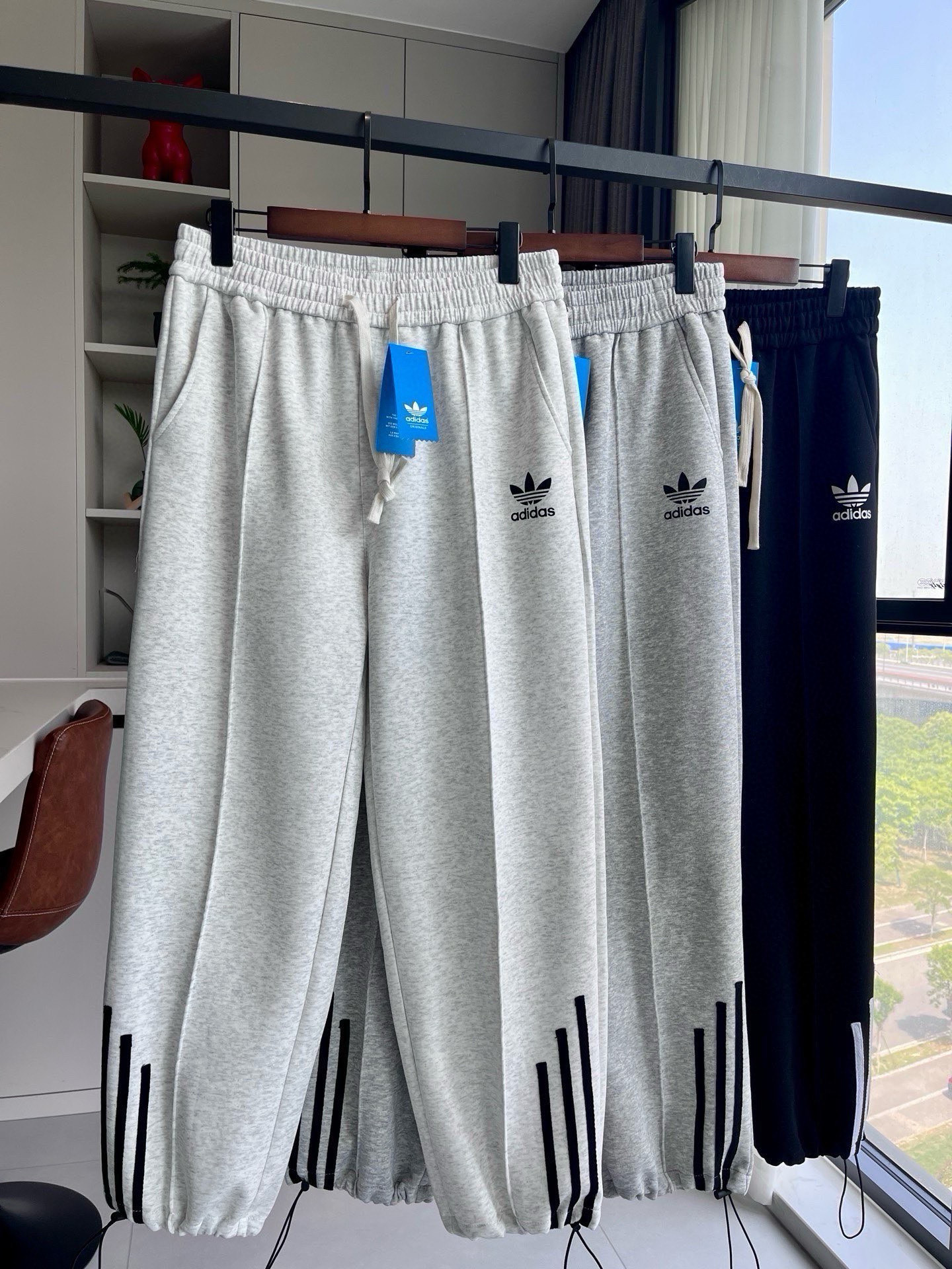 阿迪达斯三叶草Adidas裤脚三条杠卫裤直筒裤阔腿裤休闲裤运动裤 一裤两穿 可直筒可束脚 高街潮流痞帅风 版型优秀 能衬托腿型 保持舒适的亲肤感而且不会臃肿 非常好搭不挑人 上身舒适耐看 随心所欲完成日常穿搭 男女同款 情侣款哦