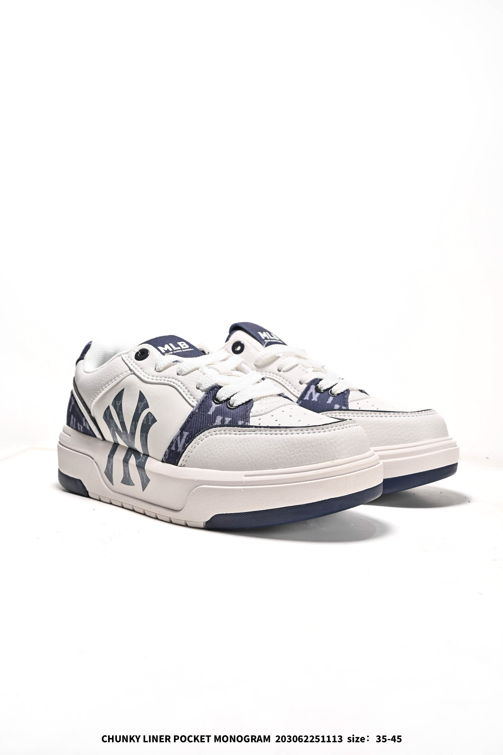 公司级MLB CHUNKY LINER DENIM 潮流百搭 厚底增高 牛仔舒适休闲鞋 防滑耐磨 低帮 老爹鞋 货号 3ASXMO5GN 尺码 35 36 36 5 37 5 38 38 5 39 40 40 5 41 42 42 5 43 44 45 编码 203062251113