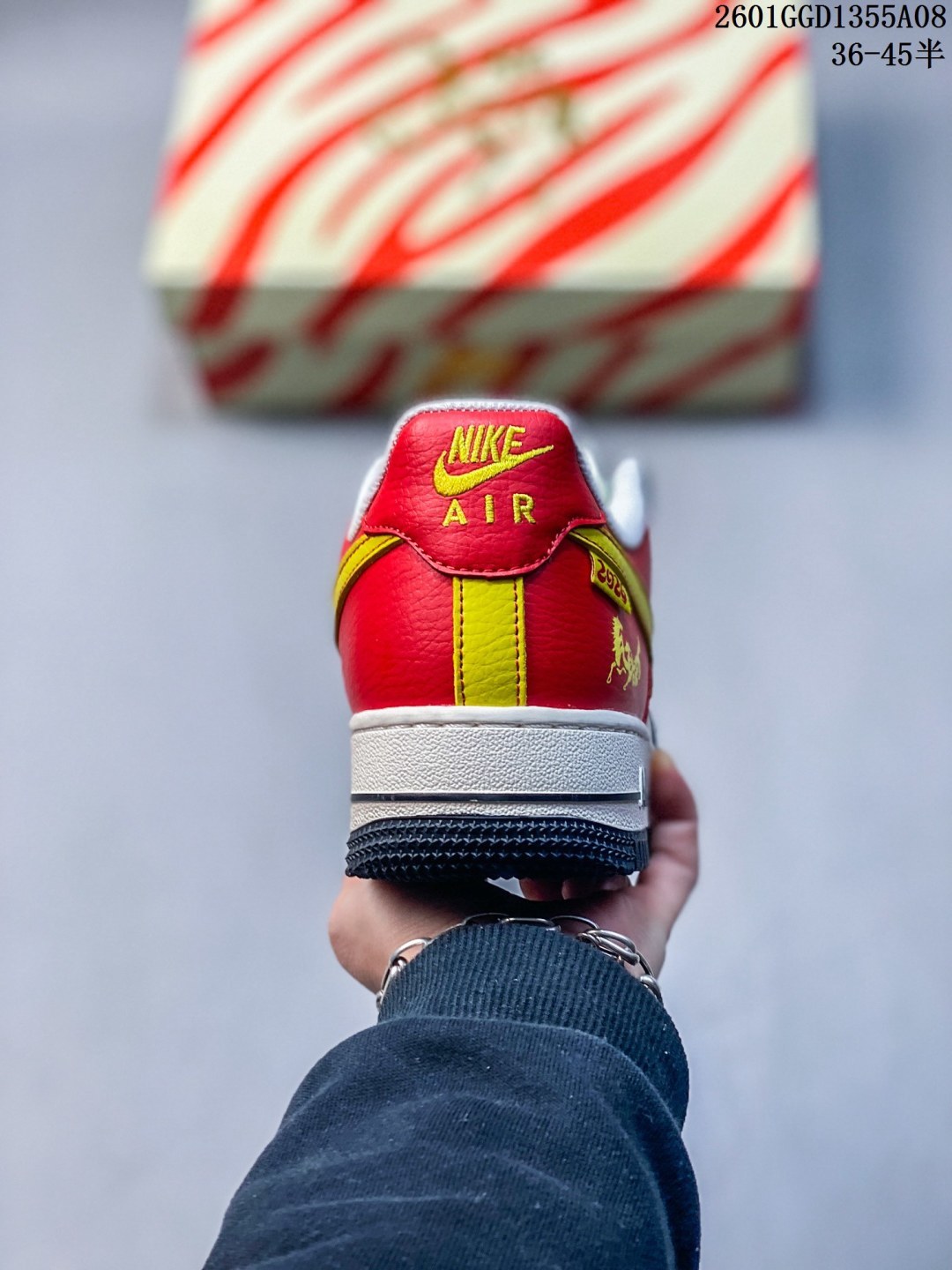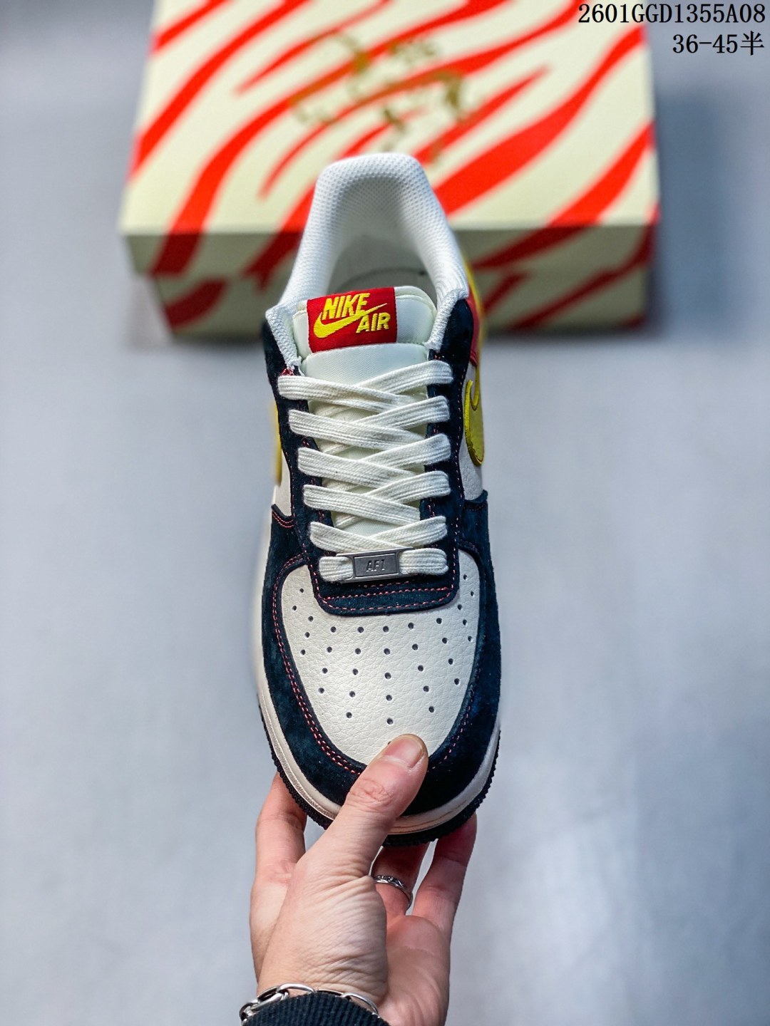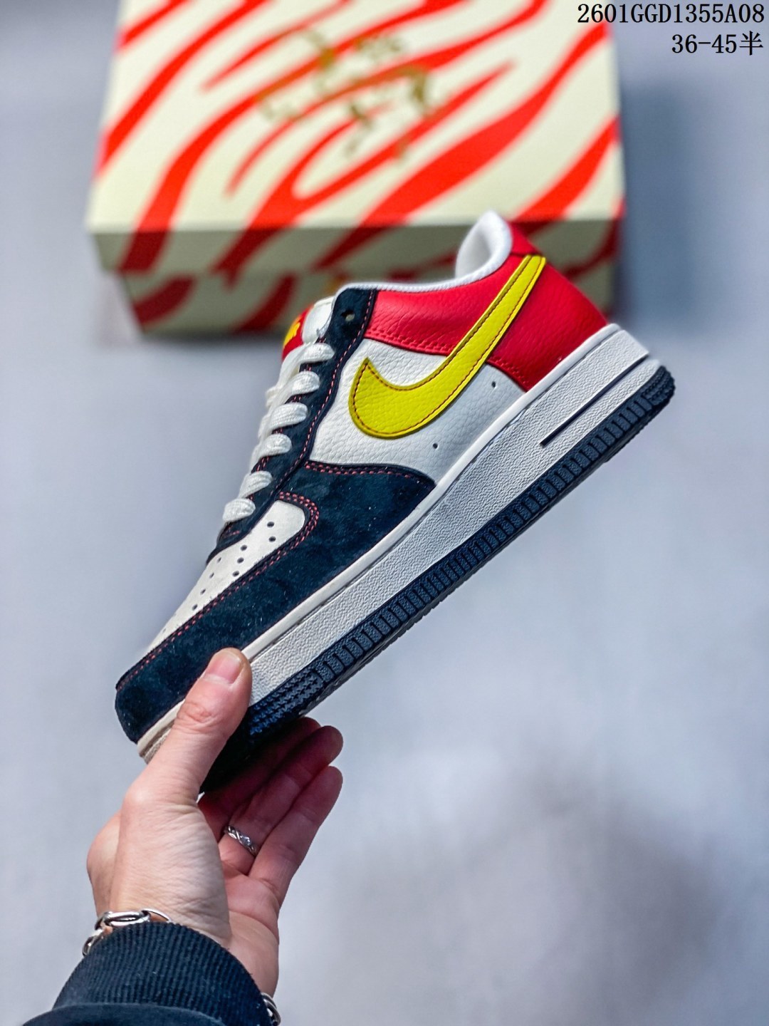 马年限定海外爆款限量发售 高端定制Nike Air Force 1 07 Low 马年限定 红金刺绣 高端定制 采用皮革 麂皮复合拼接 鞋头 鞋身主体为细腻皮革 保证挺括度 鞋侧及后跟区域用藏青色麂皮 提升质感与复古氛围 不同材质通过精密车线锁边 接缝处做了包边处理 避免边缘磨损 鞋身拼接白 藏青 正红三色 麂皮 皮革材质质感拉满 低帮休闲板鞋 定制鞋盒 大厂纯原品质出货 超高清洁度 皮料切割干净无任何毛边 细节完美