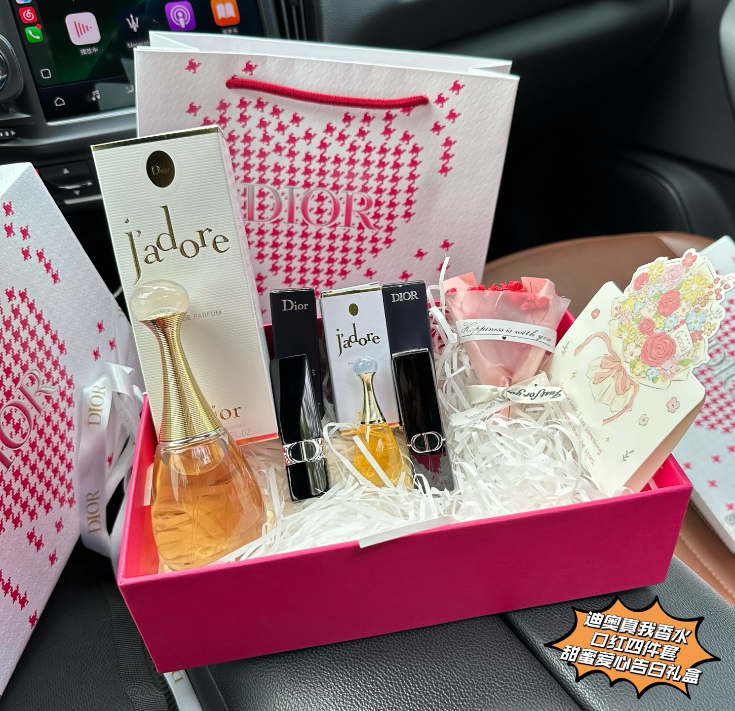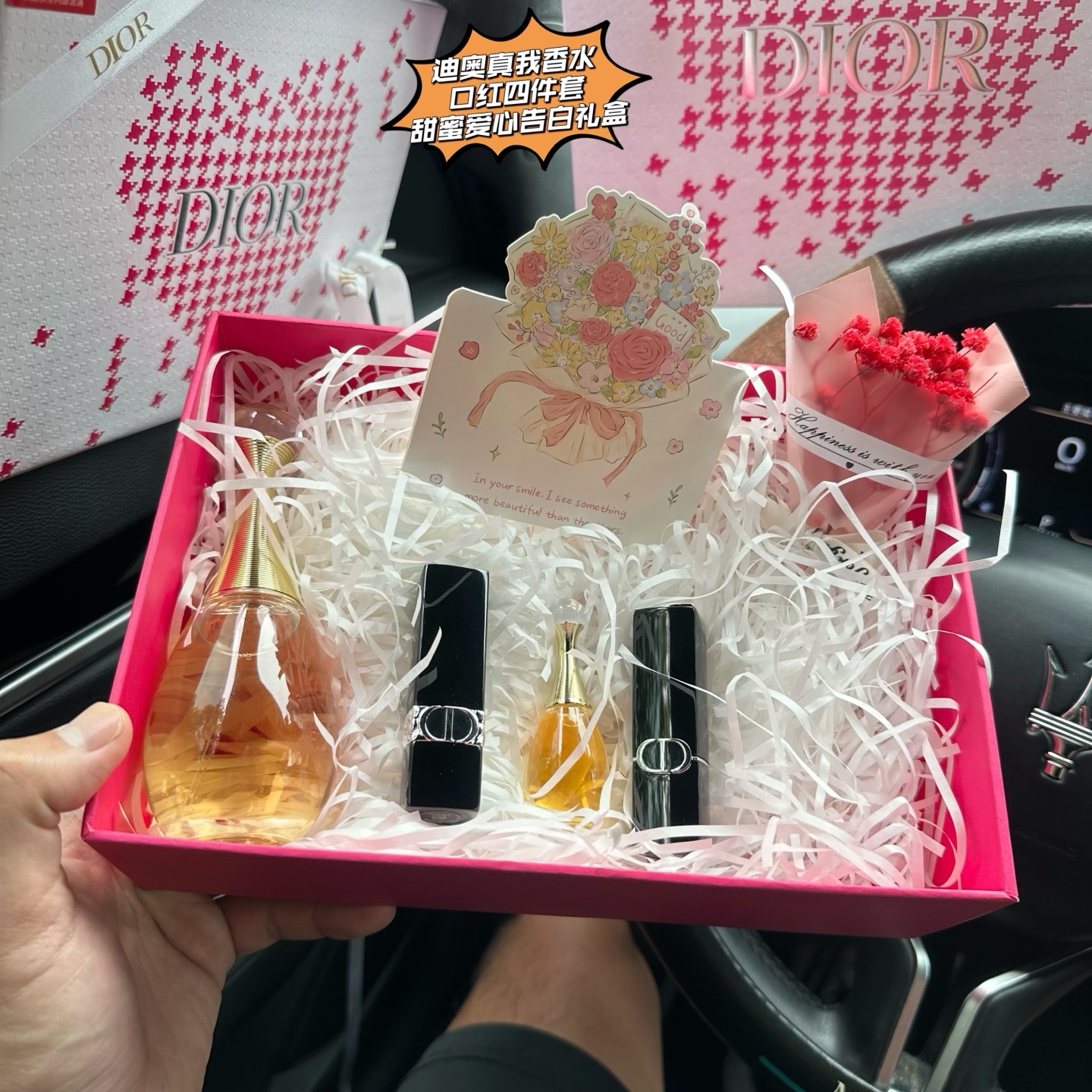此款式售后到明年 配打包箱 你是我人生路上最璀璨的星光 以爱为名 甜蜜告白 爱不必喧哗 真心自会抵达 低调的奢华中 暗藏炽热 简约的设计里 镌刻永恒 Di0r迪澳真我香水口红四件套甜蜜爱心告白礼盒 JD京东渠D只流出一批十几盒 限时臻献 以迪澳之名 定格告白瞬间 Di0r的浪漫 藏在每一抹唇间温柔 每一缕萦绕芬芳 让甜蜜告白礼盒替你诉说 看封面就很甜蜜 开盖更是惊艳 一盒四样礼物 样样精彩 惊喜感满满