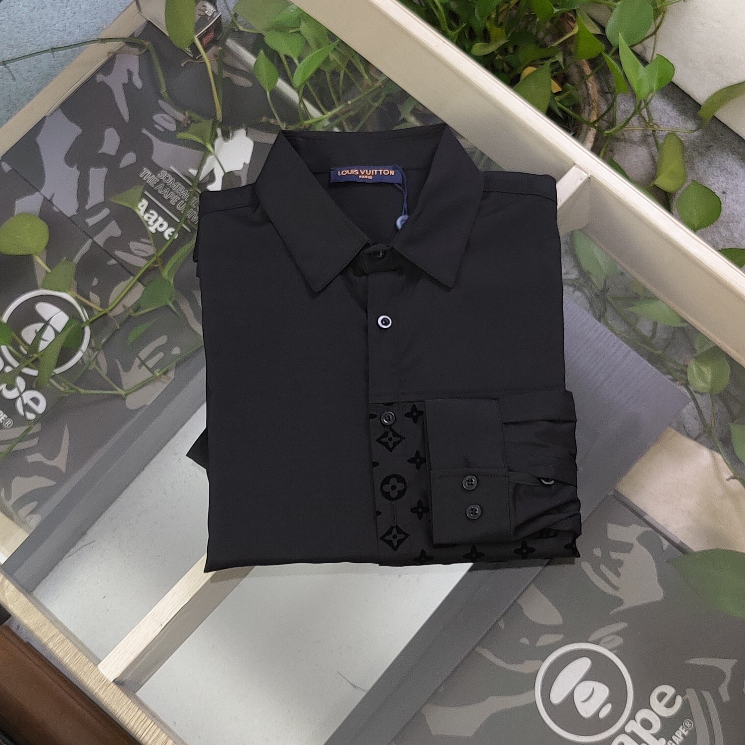 2025新款Louis Vuitton路易威登LV胸口拼接提花logo图案休闲情侣长袖衬衫 采用爽滑纯棉面料 体感更舒服 定位裁剪 衬衫对格 费时又废料 整体印花立体饱满 穿出潮流时尚 外搭内穿都完美 男女同款