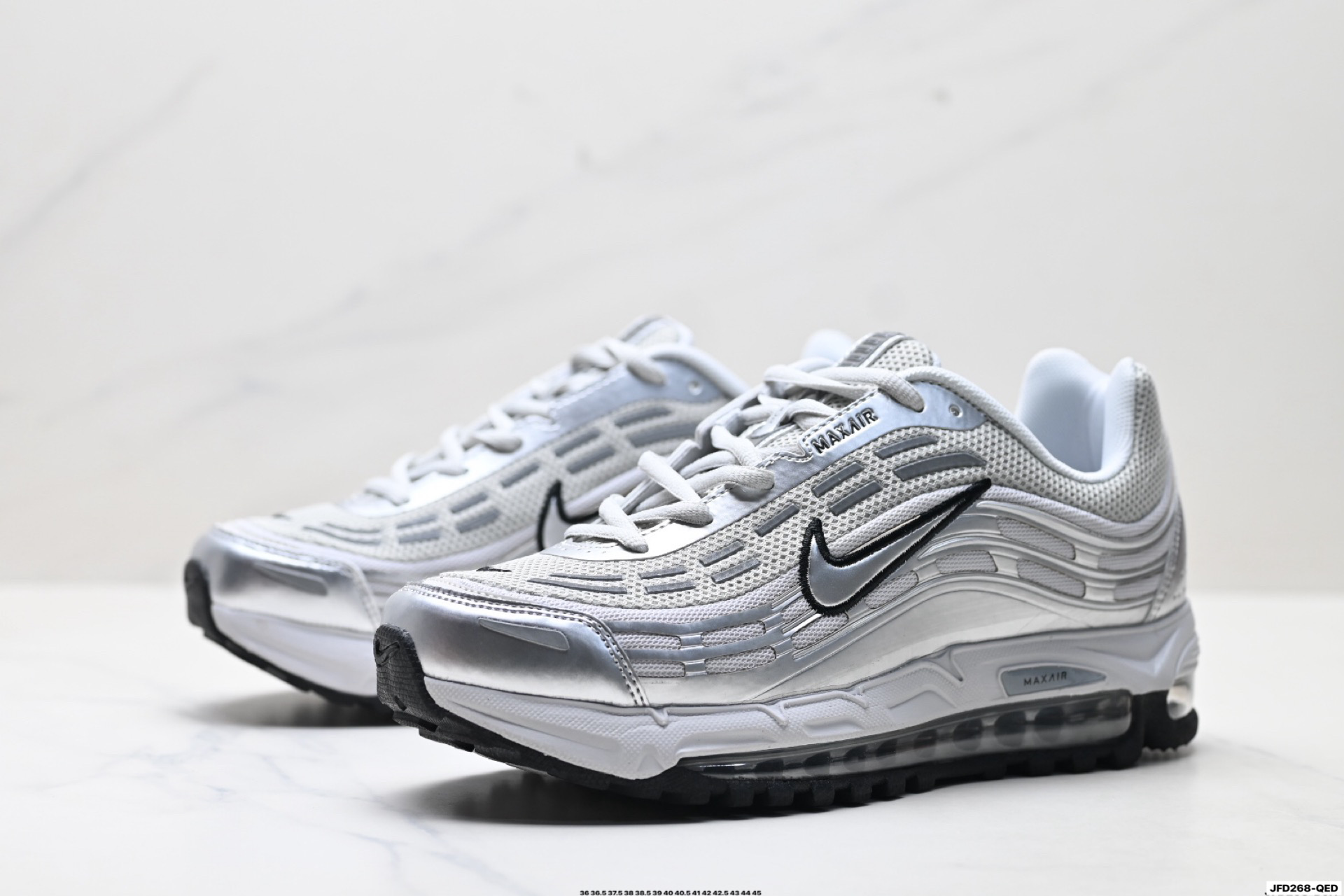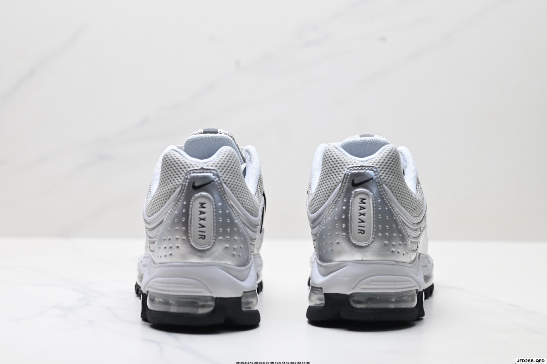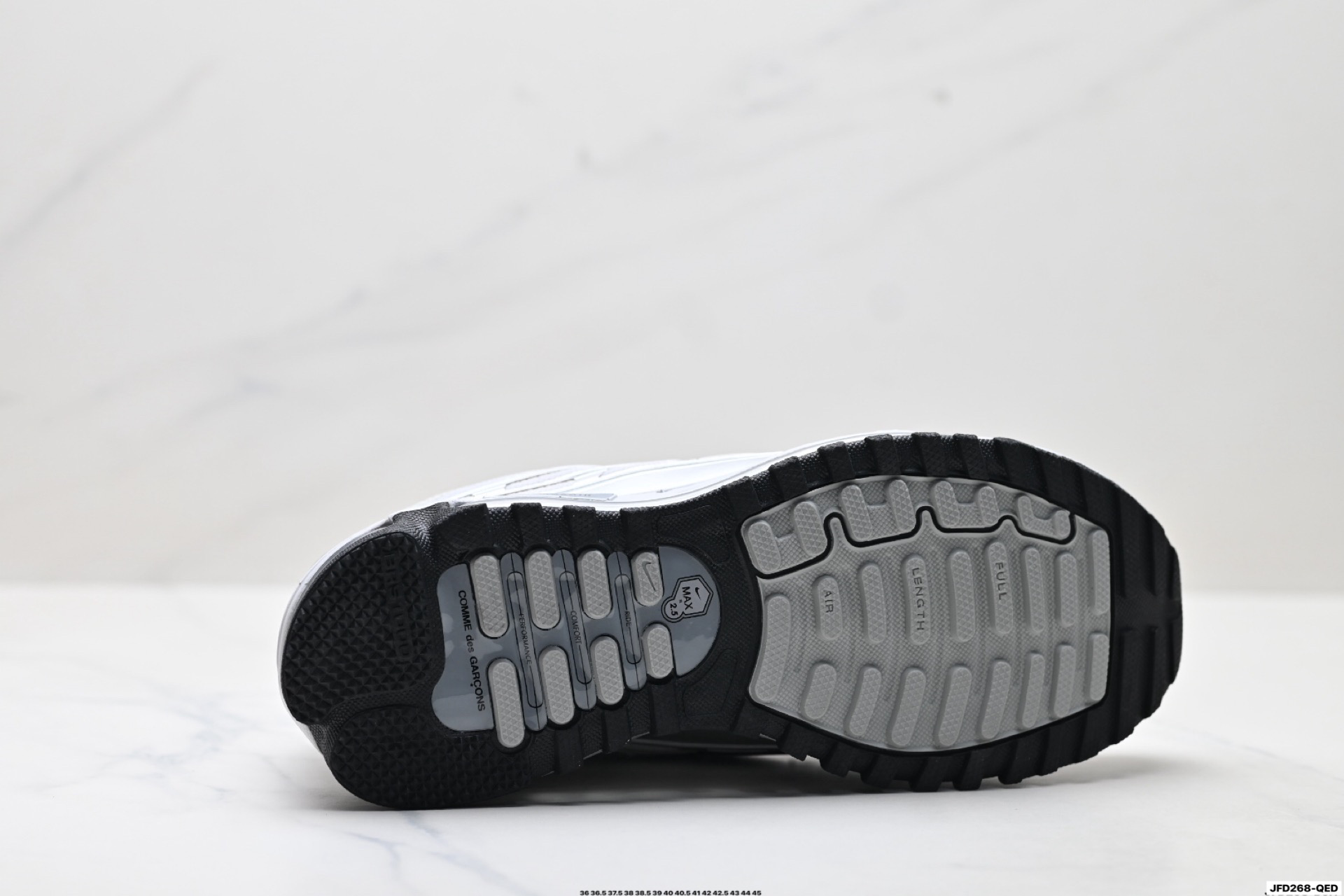 搭配全掌式 Max Air 气垫为步伐注入充沛活力中底完美拉帮 钢印注胶孔一应俱全 半透明中底和外底为整体造型画龙点睛 打造舒心时尚