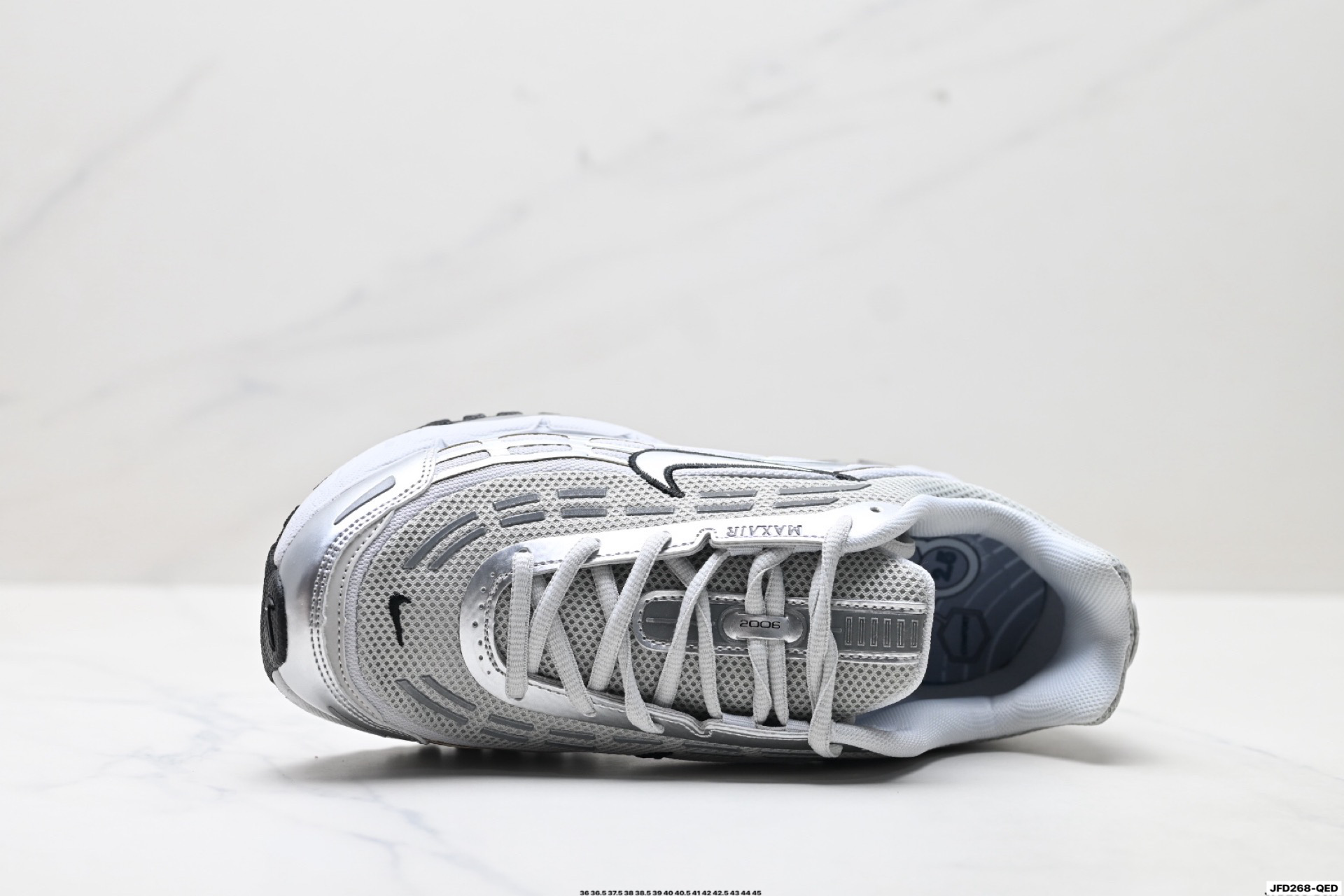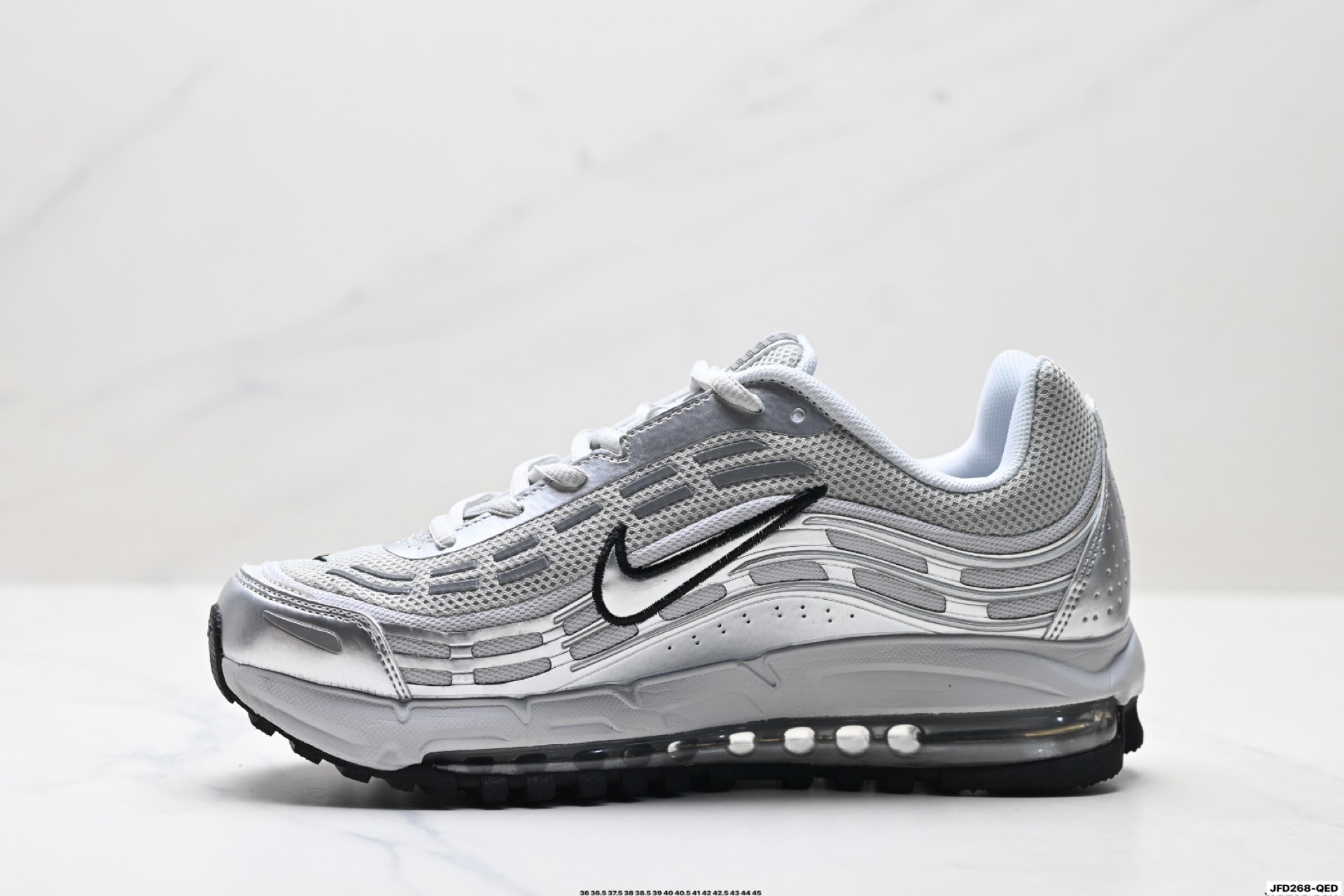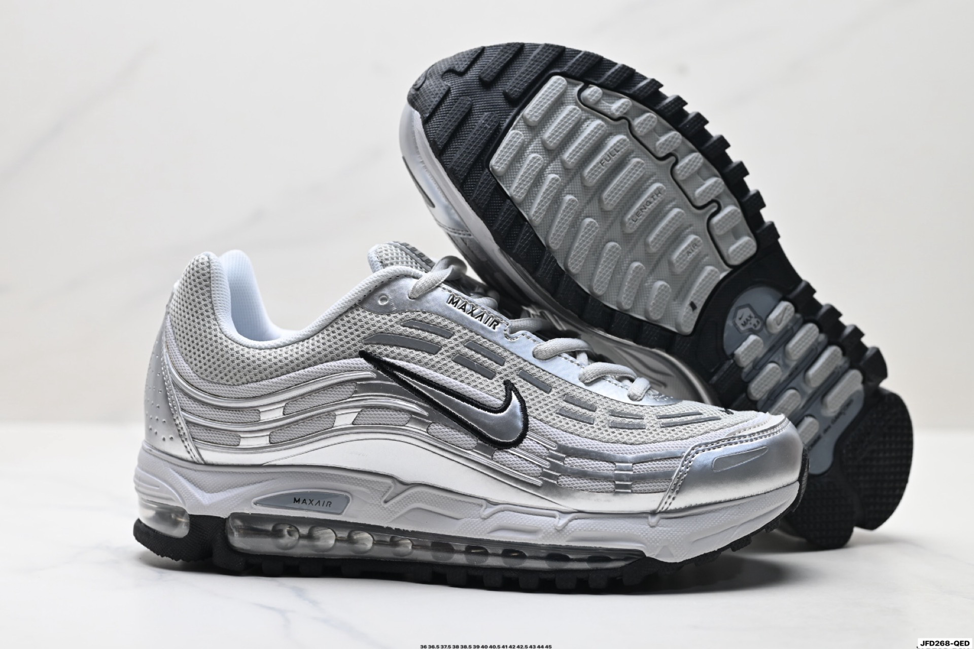 搭配全掌式 Max Air 气垫为步伐注入充沛活力中底完美拉帮 钢印注胶孔一应俱全 半透明中底和外底为整体造型画龙点睛 打造舒心时尚