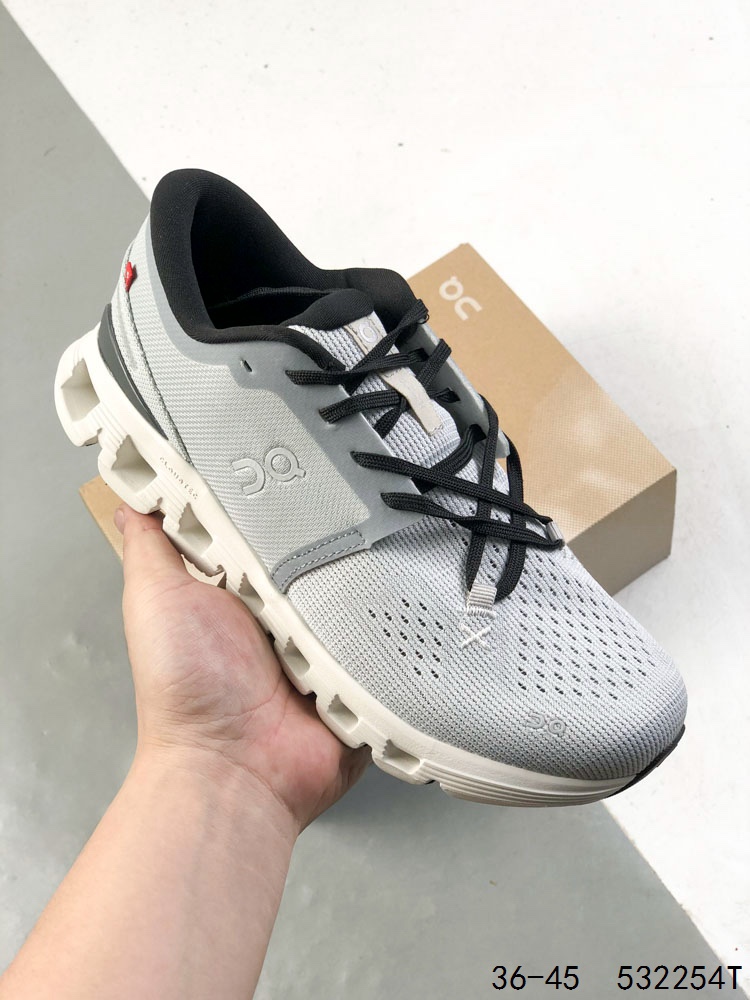On昂跑 Cloud x 4 0舒适百搭防滑耐磨低帮休闲跑步鞋 采用人体工程超薄透气网织布鞋面材质 搭镂空CloudTec 科技泡棉缓震 4 5cm厘米 加厚中底