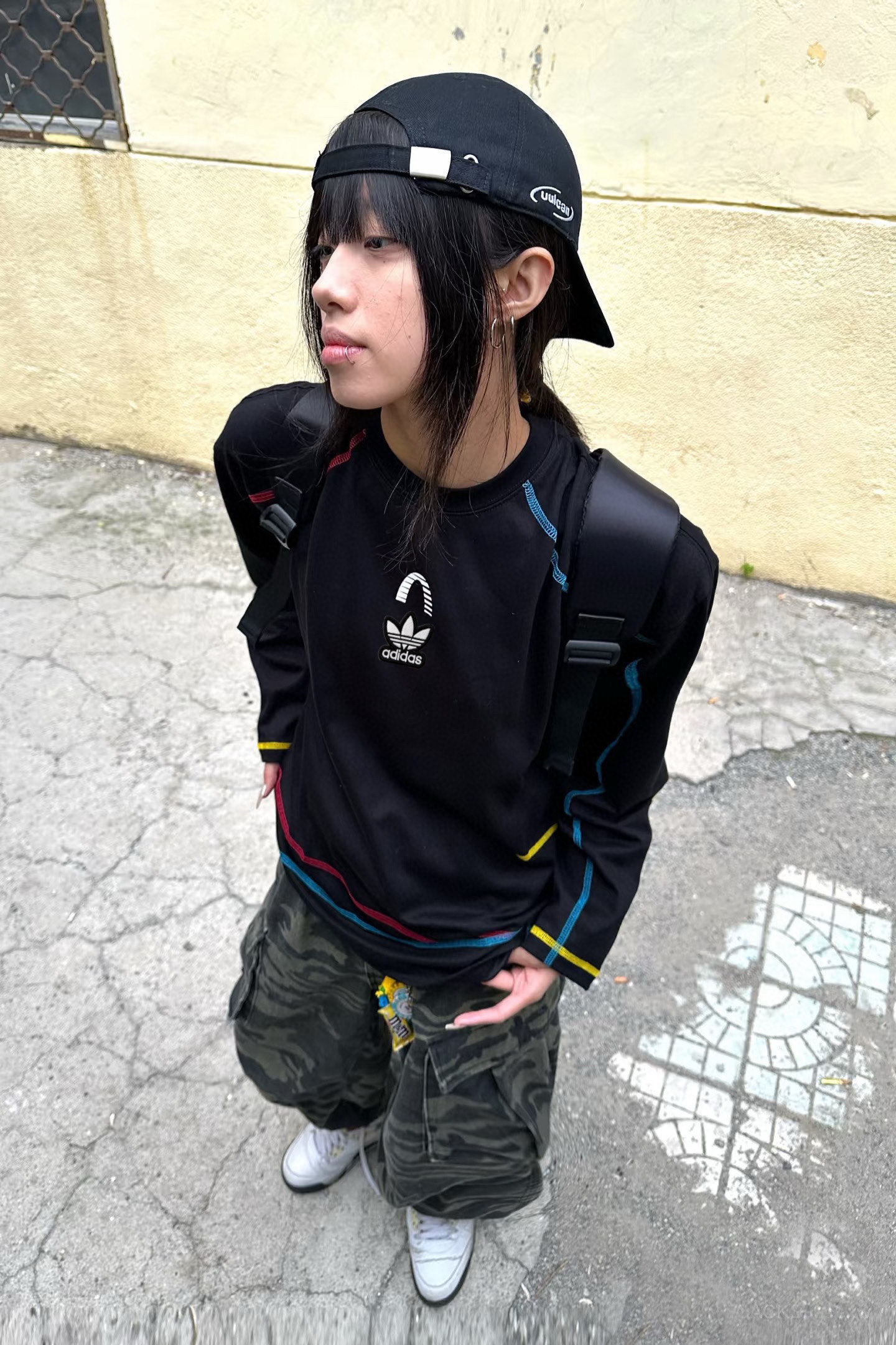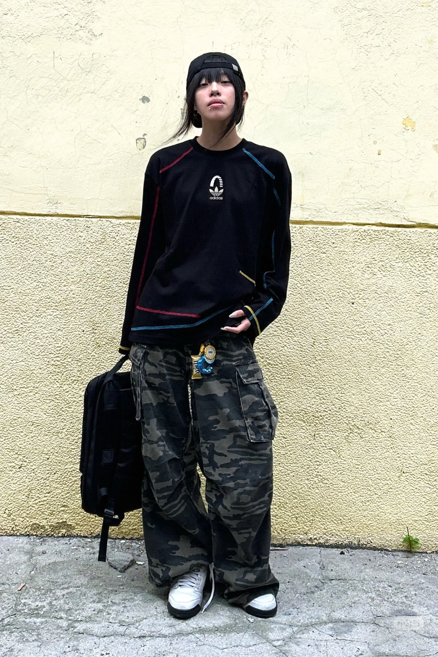 阿迪达斯Adidas黑色美式彩色哈苏线长袖t恤男款秋季高级感运动卫衣潮牌情侣上衣