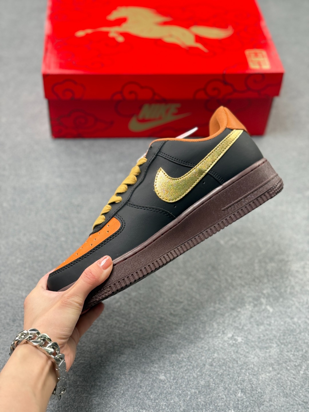 海外限量发售 公司级NIke Air Force 1 07 Low 马年限定 玄黑赤金 空军一号低帮 运动鞋 休闲鞋 头层皮 折边针车 工艺难度大 原楦头原纸板 高端定制鞋盒 原厂鞋底 超高清洁度 细节完美