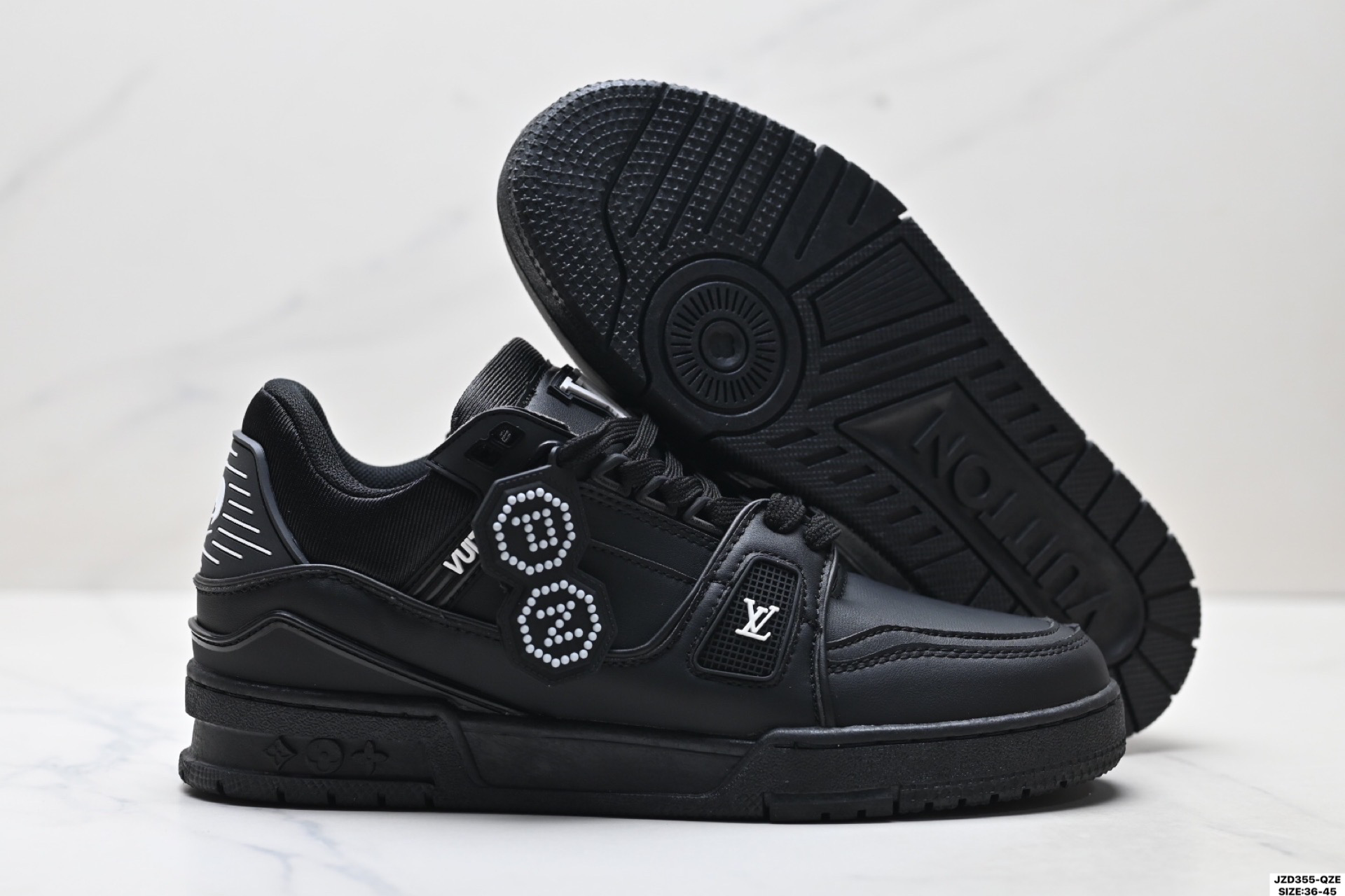 全新 Sneaker Lo 公司级路易威登板鞋 一代 经典款 官方一比一版本 新款 LV Tyler x LOUIS VUITTON Trainer 1 0 帆布拼接皮面 圆头系带 低帮 板鞋 圆头系带低帮生活休闲鞋男女款 LV Trainer最新配色 L家 篮球鞋风格运动鞋 该鞋由艺术总监 VIRGIL ABLOH设计 垫脚聚米微料加透气英伦风 细节原版一致 Size 39 45 36 45
