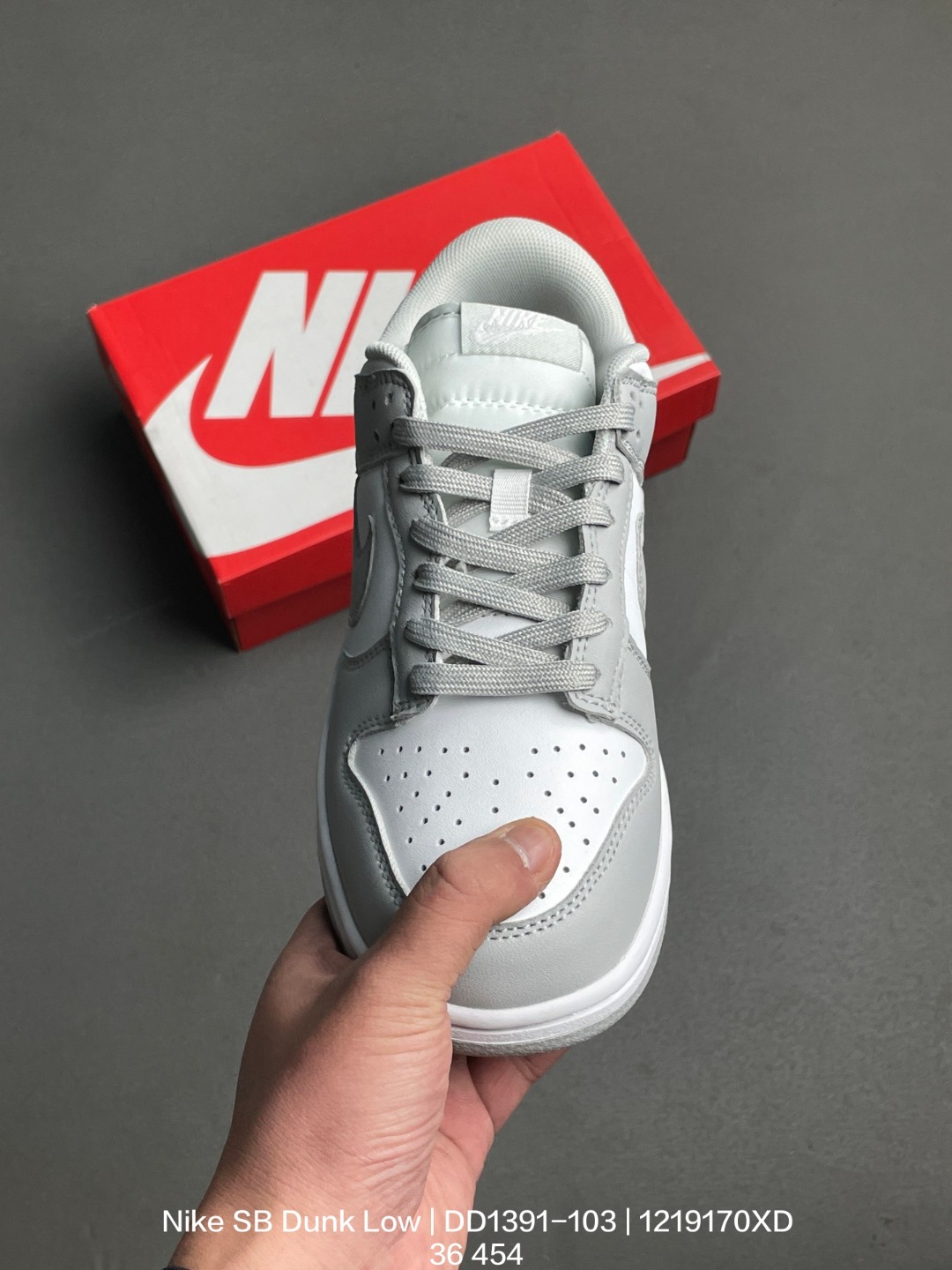 Nike 耐克 原楦原纸版开发 采用拼接式二层皮鞋面材质尽显低调简约气质 百搭利器配色全新耐克Nike SB Dunk Low Photon Dust 扣篮系列低帮休闲运动滑板板鞋 白灰烟灰雾霾灰 DD1391 103