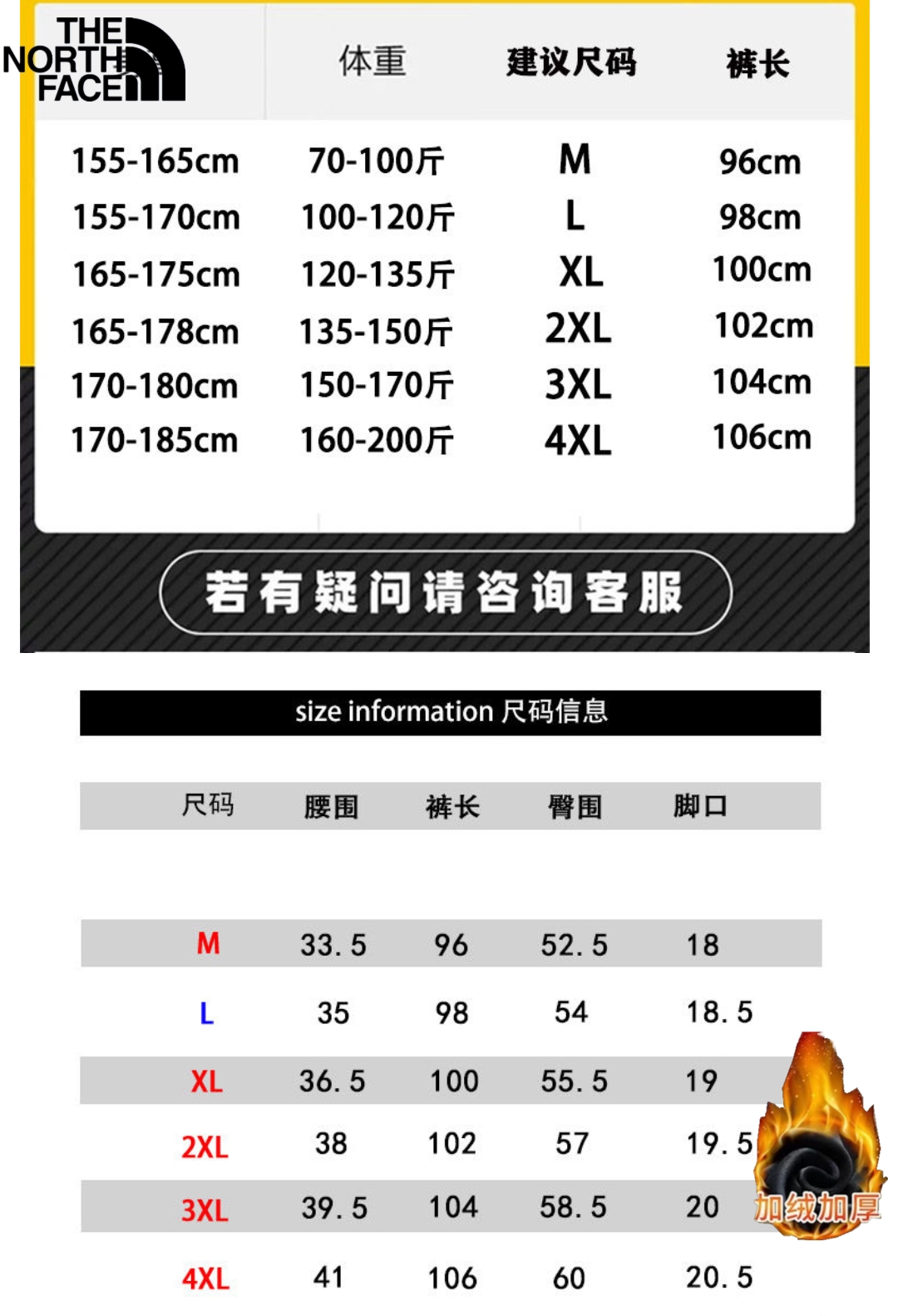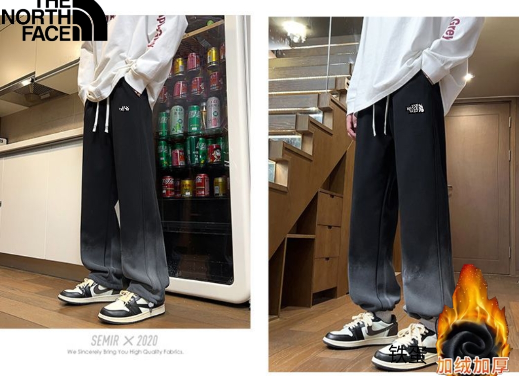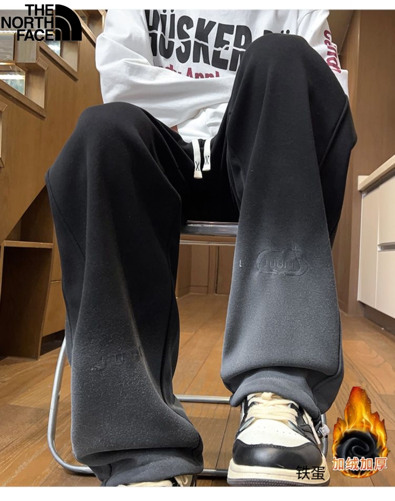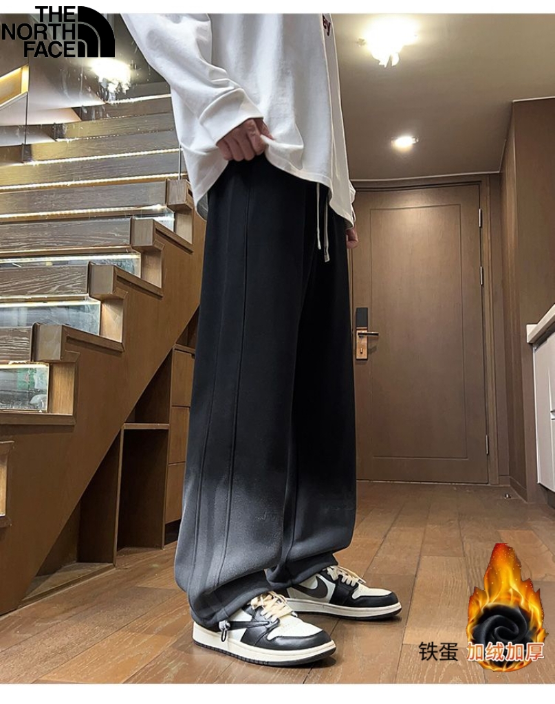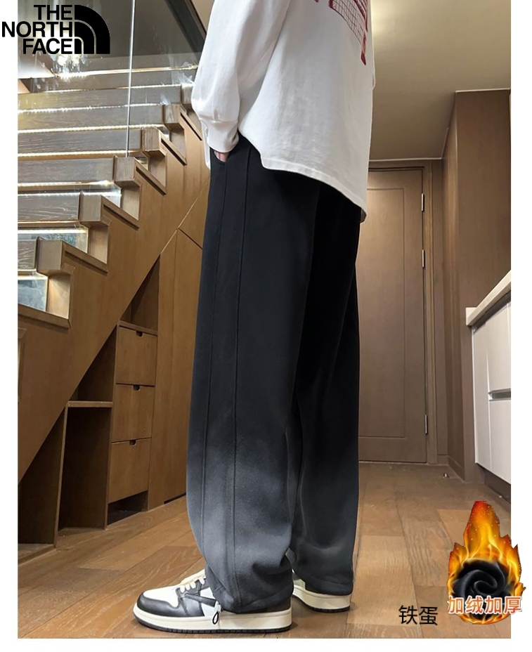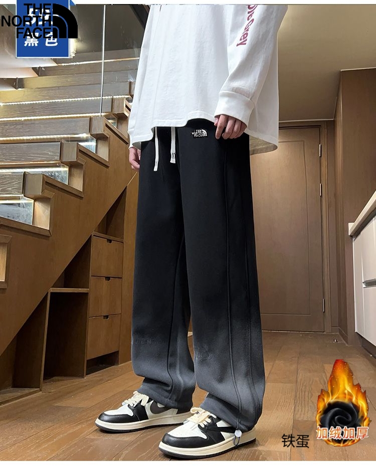 北面The North Face冬季新款 男女同款水洗做旧松紧腰加绒加厚保暖渐变色休闲裤 男士百搭加厚直筒裤 休闲裤长裤