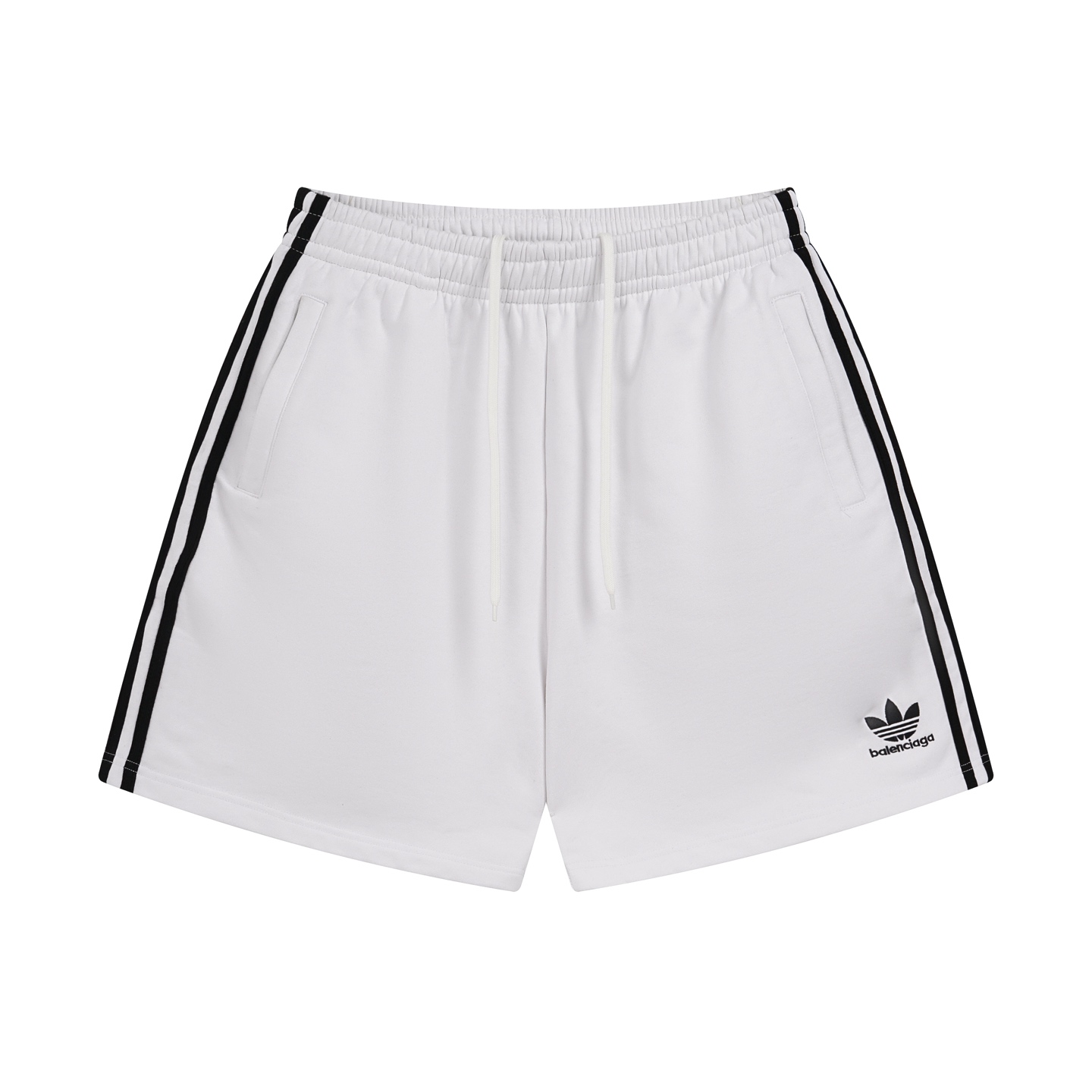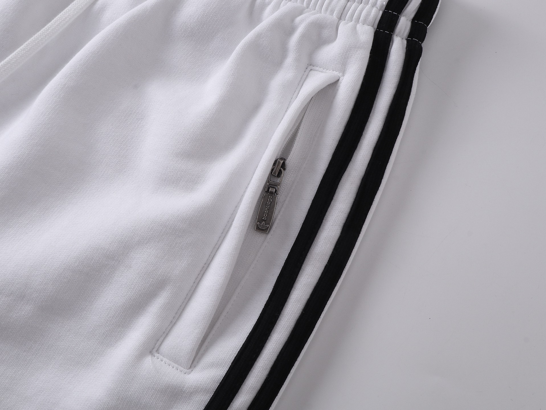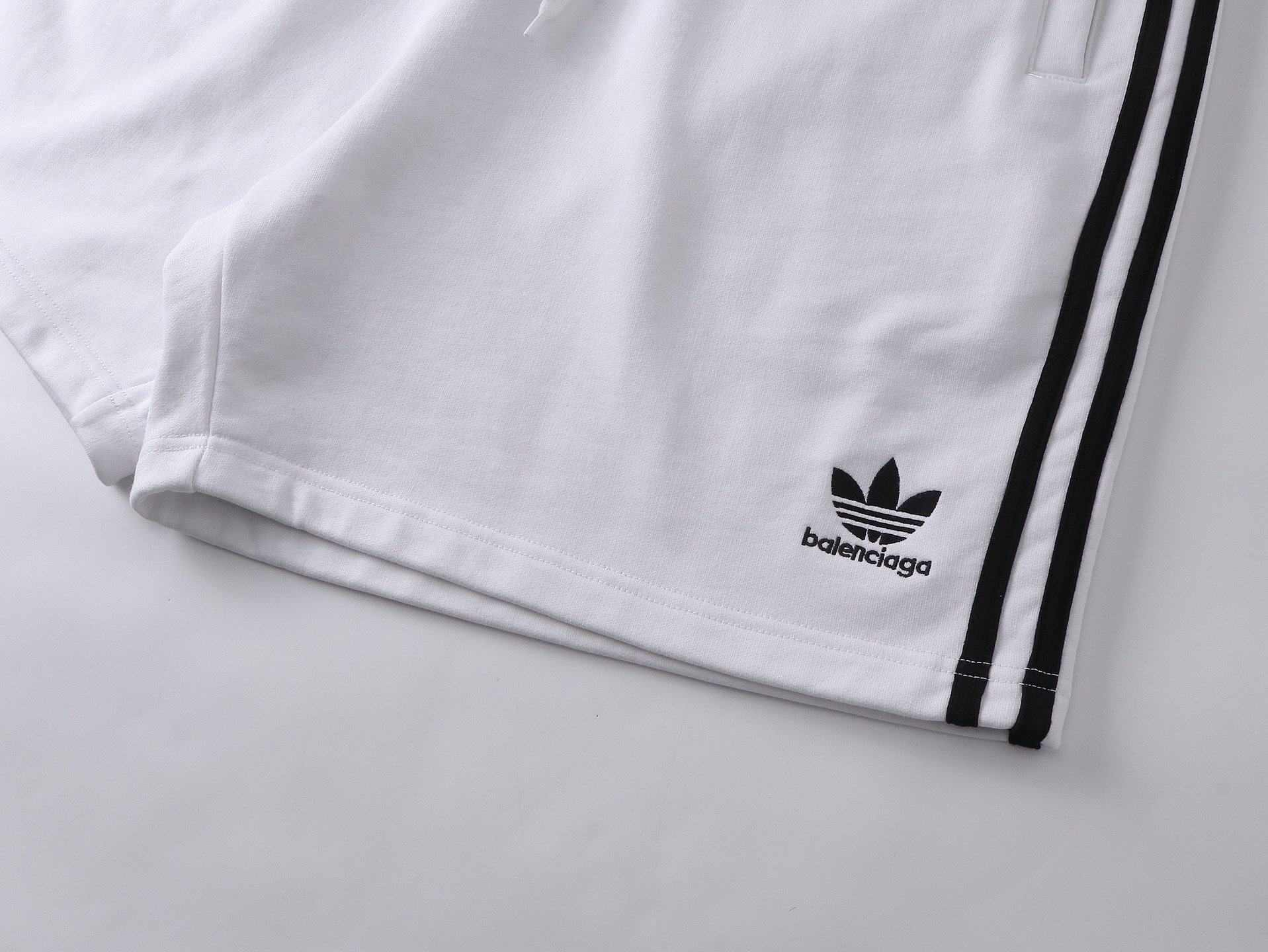 实拍图 顶级版本 官网品质 BALENCI GA 巴黎 2025新款 巴黎联名adidas 三叶草刺绣侧缝拉边条 袋口做隐形拉链短裤 砖柜同步 第一时间正品研制 欢印对比 面料采用巴黎ZP定织定染全棉毛圈大卫衣 克重460克 布面干净 布纹清晰 手感柔软舒适 刺绣采用进口田岛绣花机 字母清晰 效果立体 版型釆用宽松版型 男女同款