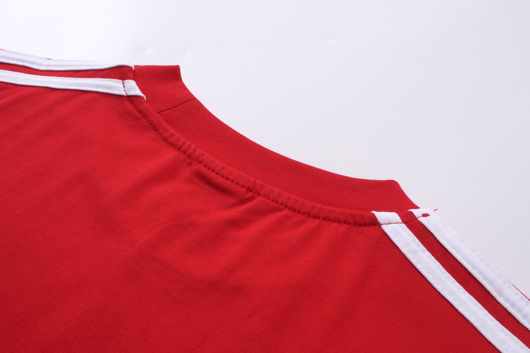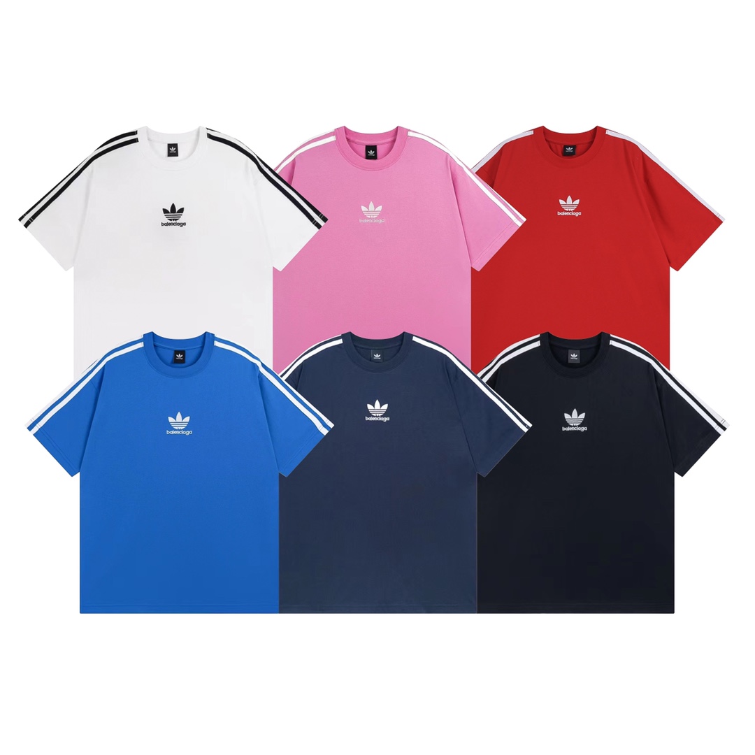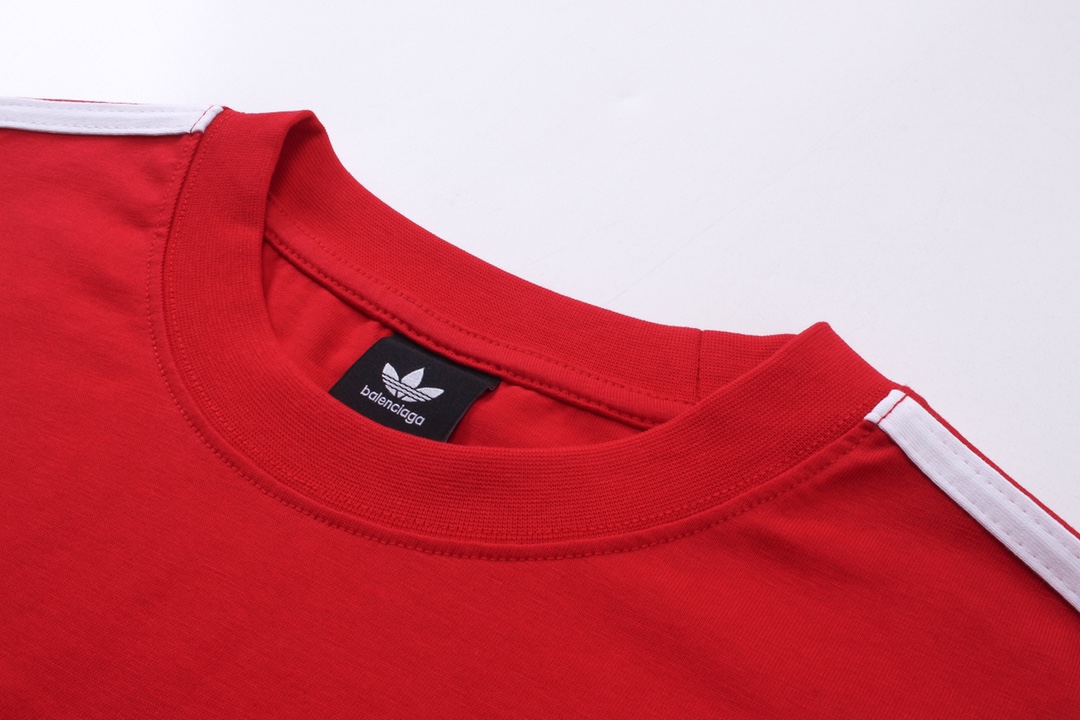 细节图 顶级版本 官网品质 BALENCI GA 巴黎联名Adidas阿迪达斯三叶草三条纹LOGO绣花短袖T恤