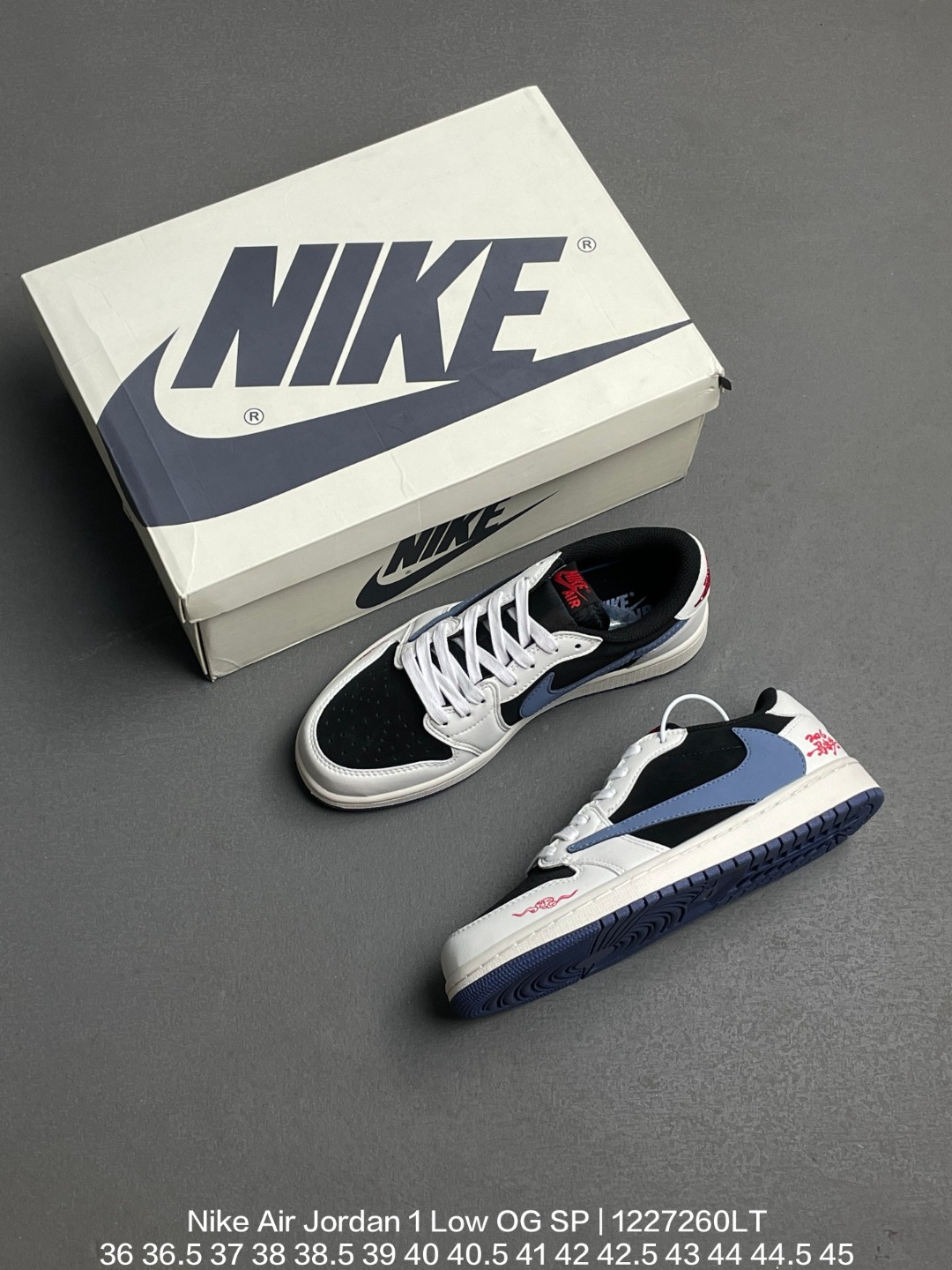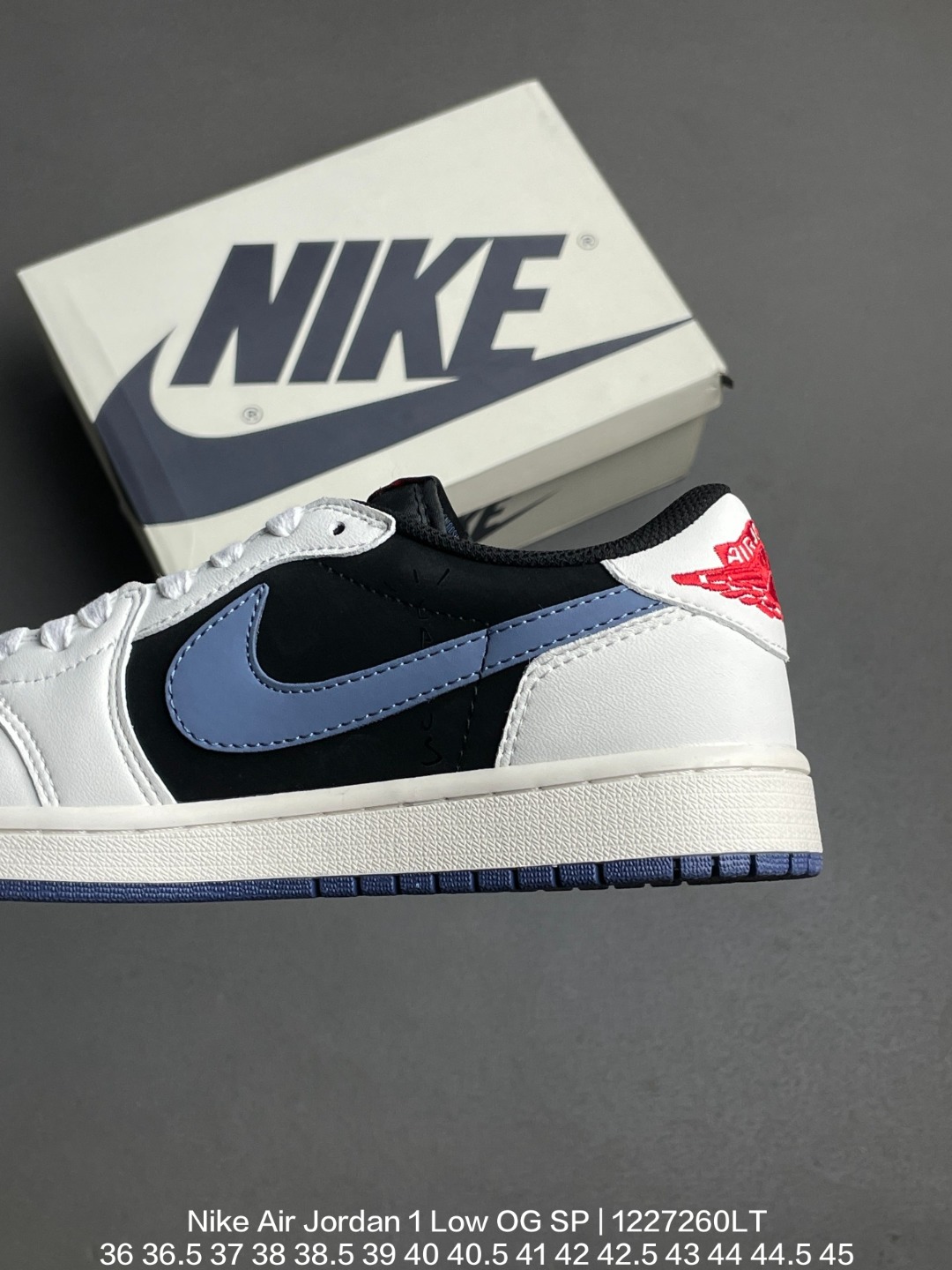 Jordan 乔丹 采用牛培皮革鞋面 内置气垫及耐磨橡胶大底 倒钩AJ1 当红嘻哈歌手特拉维斯 斯科特携手藤原浩主理品牌fragment design x Travis Scott x Nike Air Jordan 1 Low OG SP Black White Grey AJ1乔丹一代经典低帮文化百搭休闲运动篮球鞋