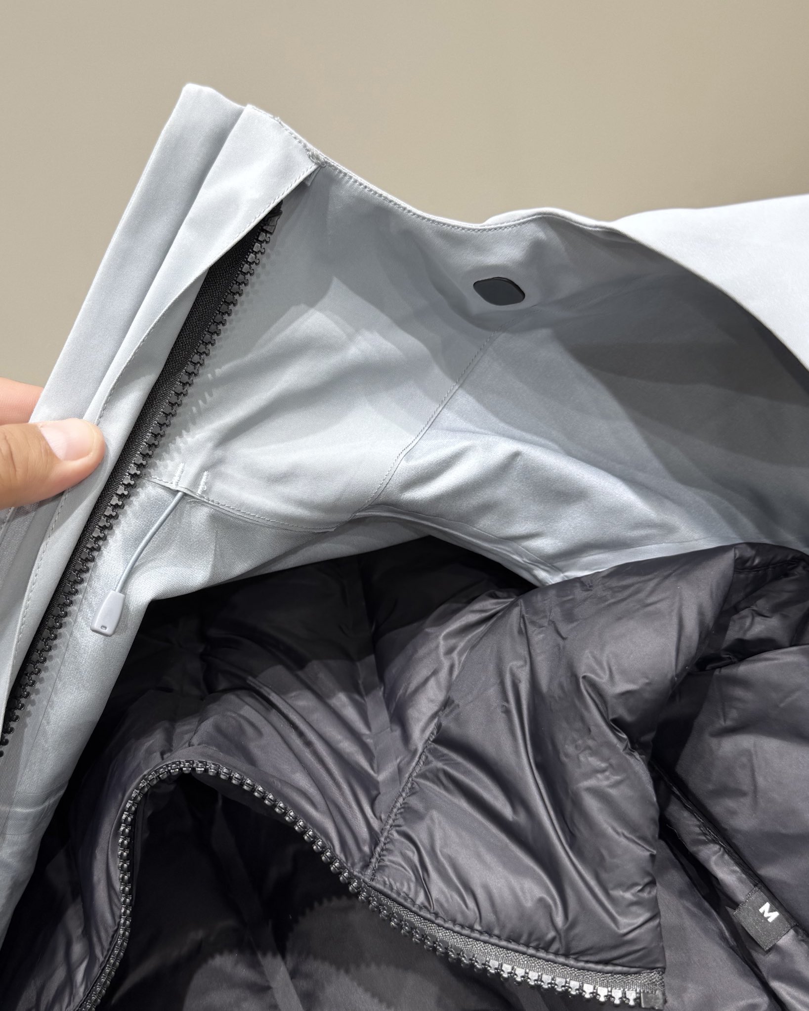 面料采用bluesign认证的面料 轻薄而耐磨 防风 防水且透气 内胆白鸭绒填充 轻便保暖 内置拉链结合 适合各种户外 旅游活动