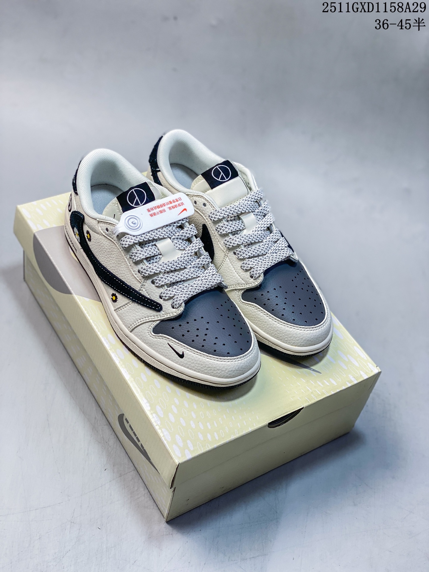 海外爆款限量发售 Travis Scott x Jordan 1 Low 权志龙联名 雏菊米灰黑 高端定制 乔丹倒勾低帮休闲板鞋 大厂纯原品质出货 纯正版型 定制鞋盒 皮料切割干净无任何毛边 细节完美 超高清洁度