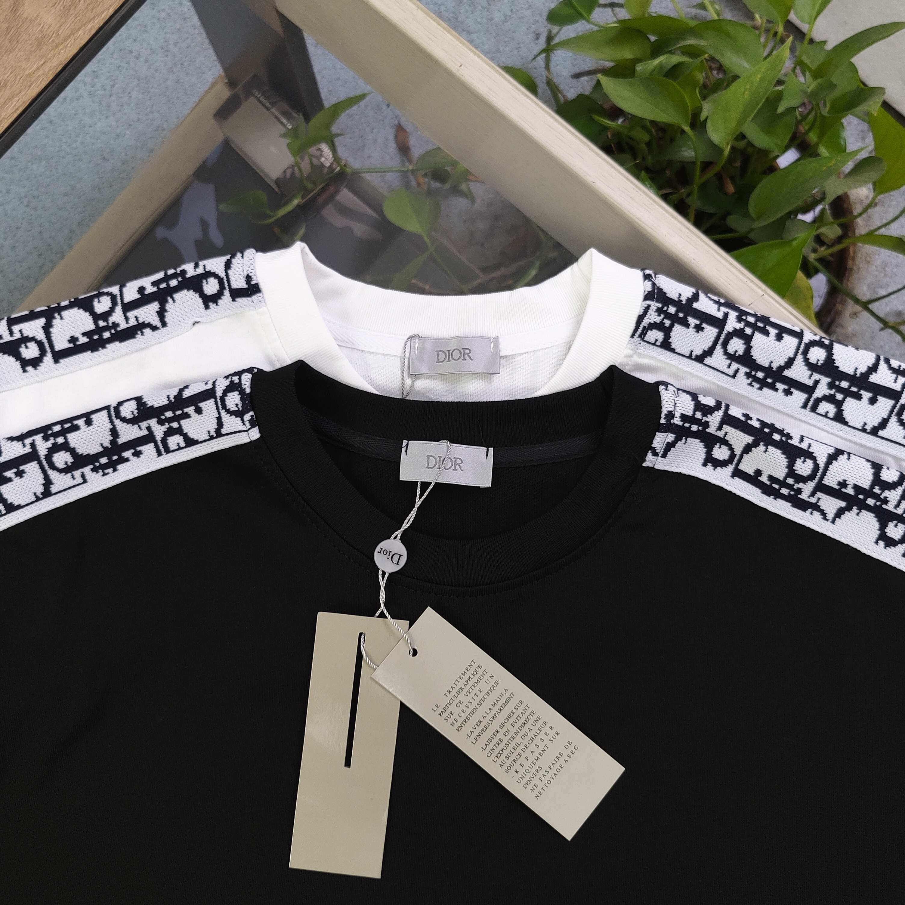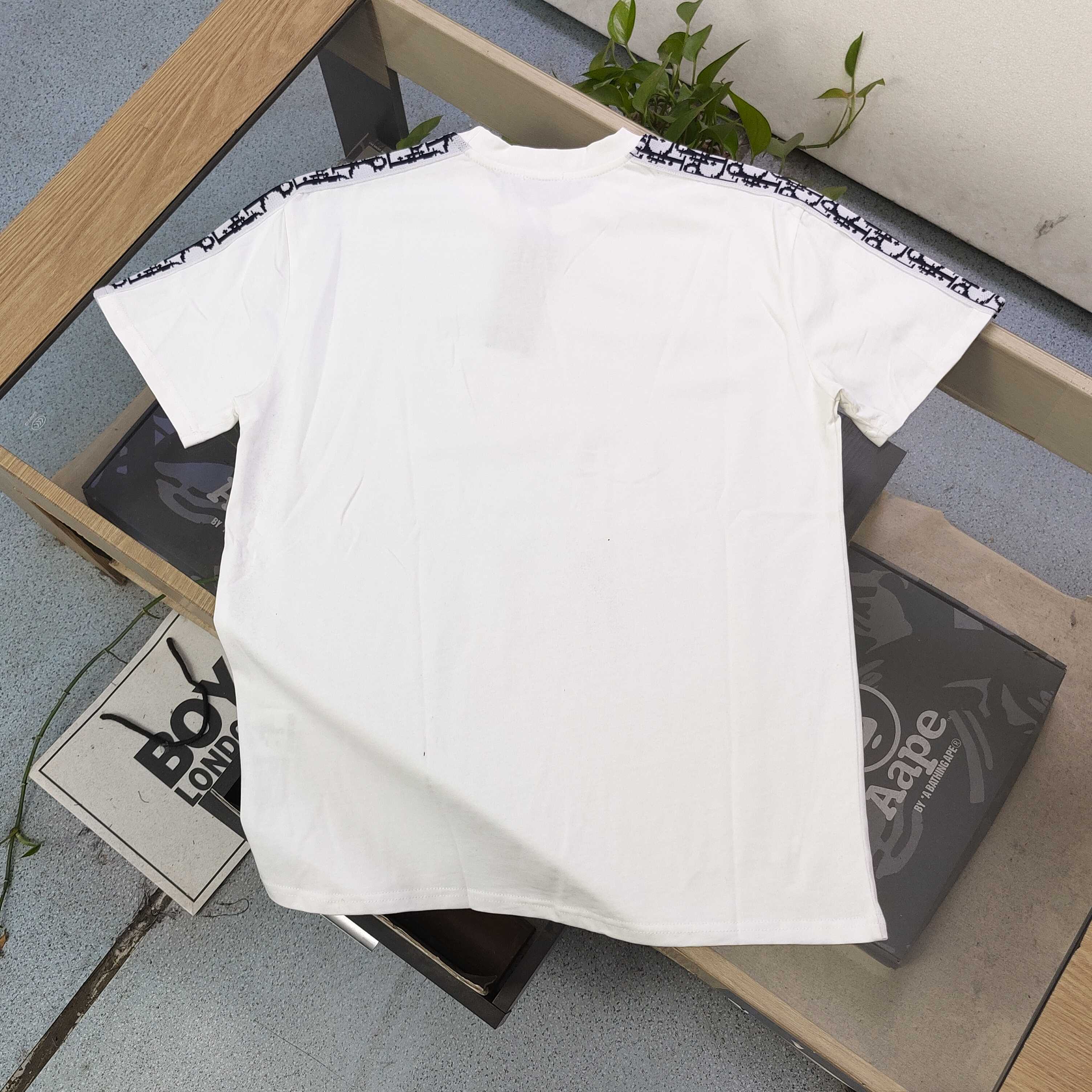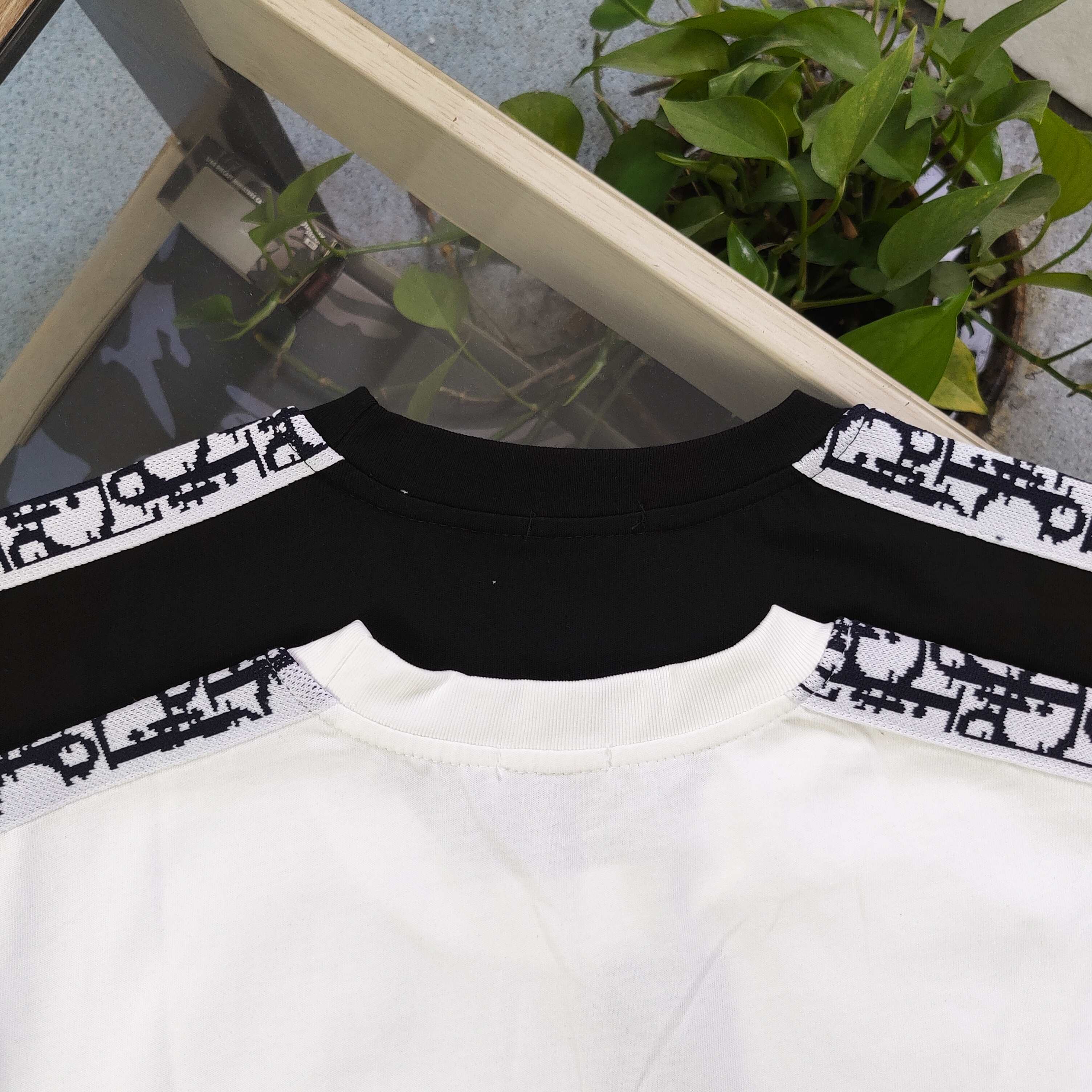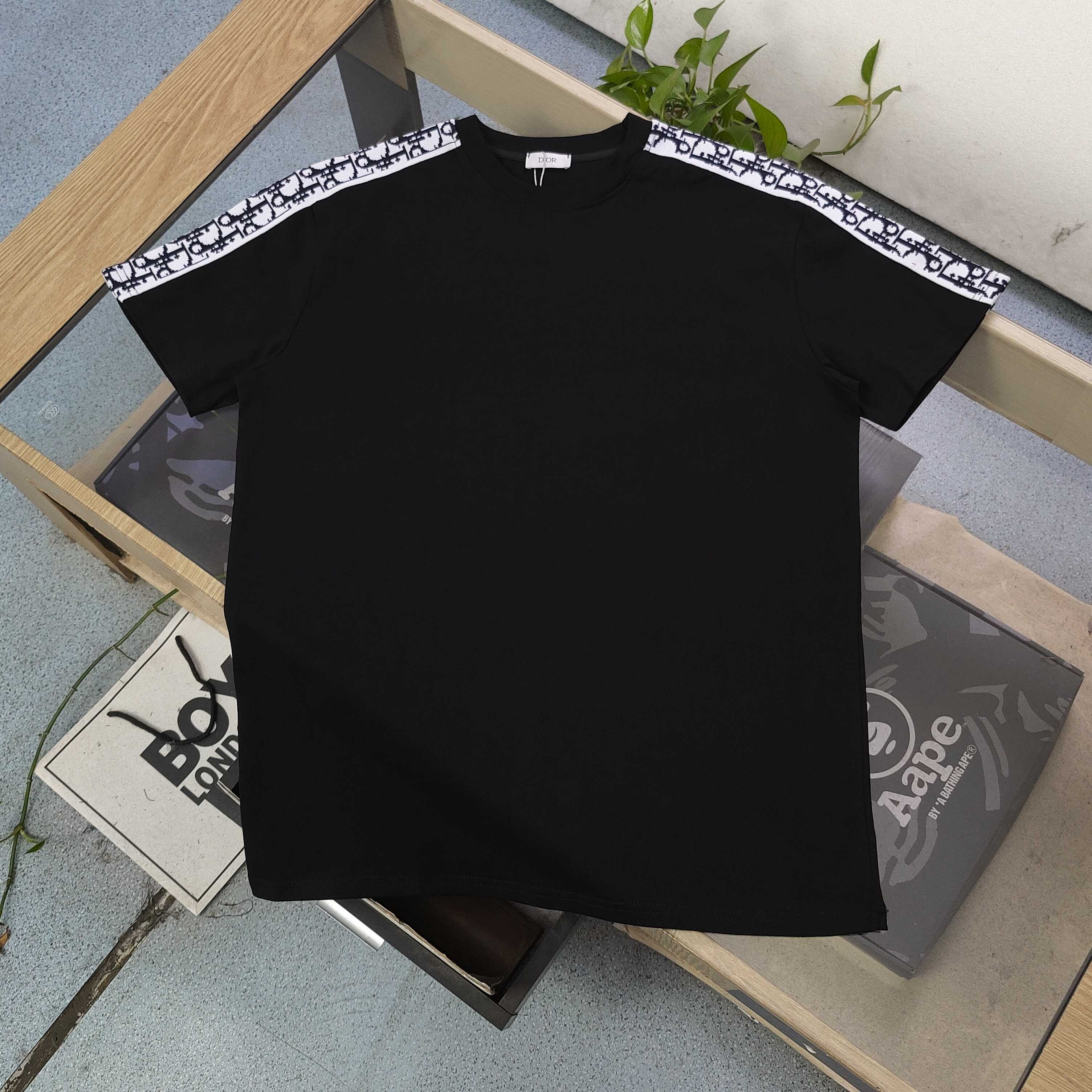 2025新款Dior迪奥双肩经典logo织带休闲情侣圆领短袖T恤 采用32支双纱精梳纯棉爽滑手感 纯棉不起球不起毛 面料厚度240克重 单件重量280克左右 质量保证 定制面料 定制定染 包浆印刷环保不开裂 欢迎对比质量 男女同款
