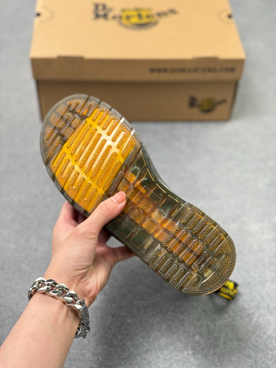 采用硬质牛培开边珠牛培皮打造鞋面 厚实耐磨PVC原厂透明水晶橡胶大底 原版一致空胶工艺 真实大底拉帮线锁底