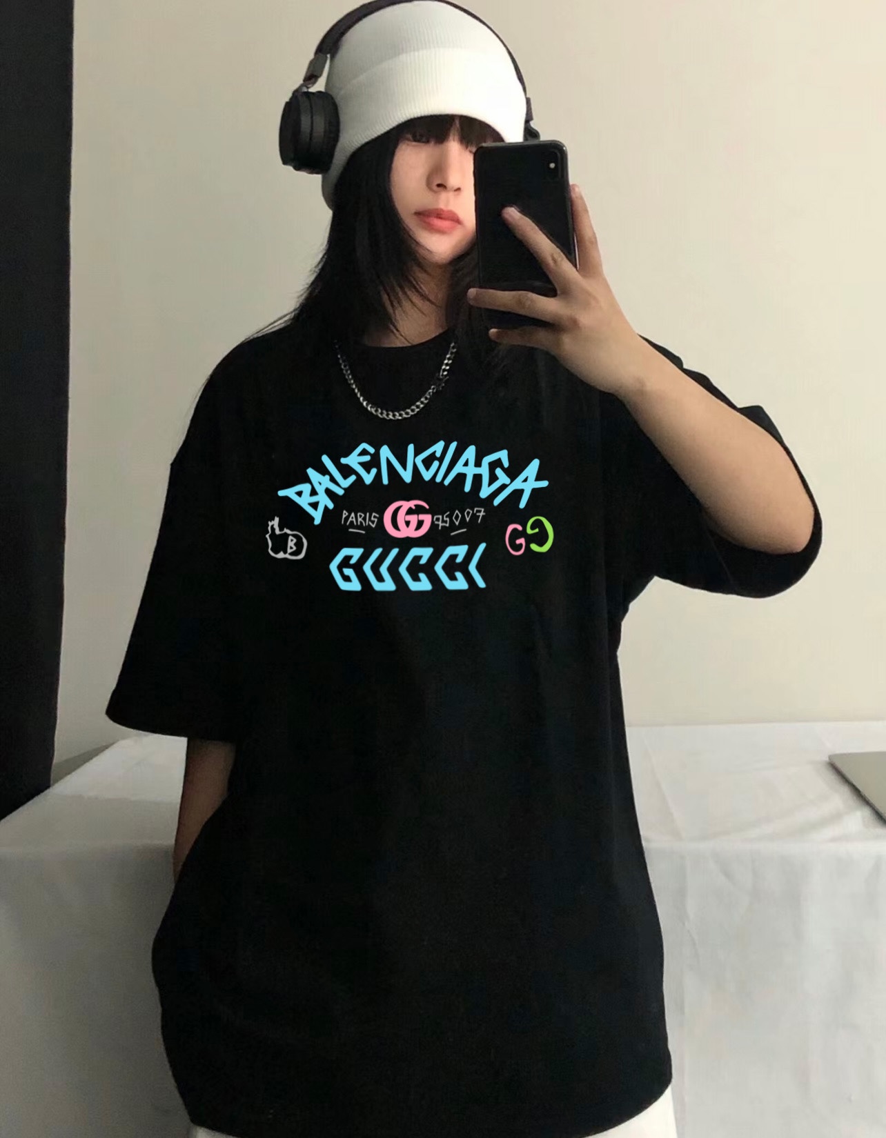 Balenciaga x Gucci 巴黎世家联名古驰Paris圆领短袖半袖T恤