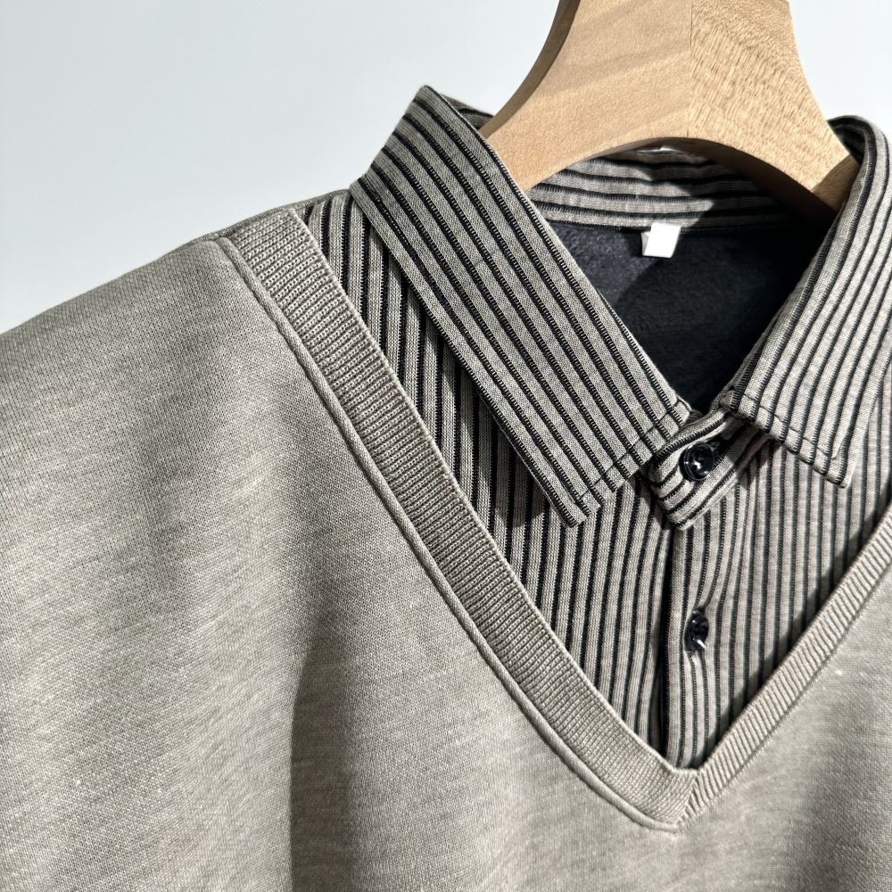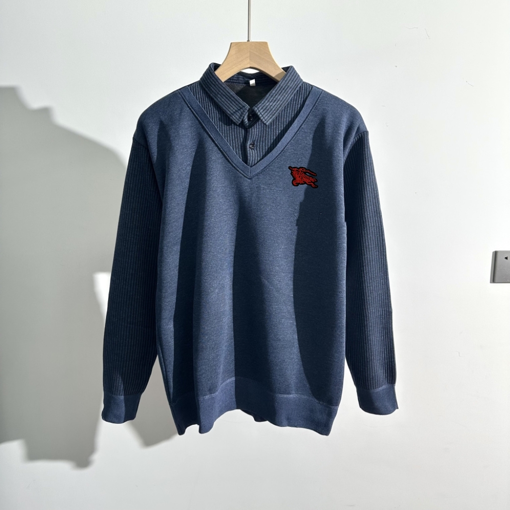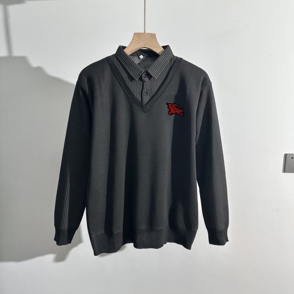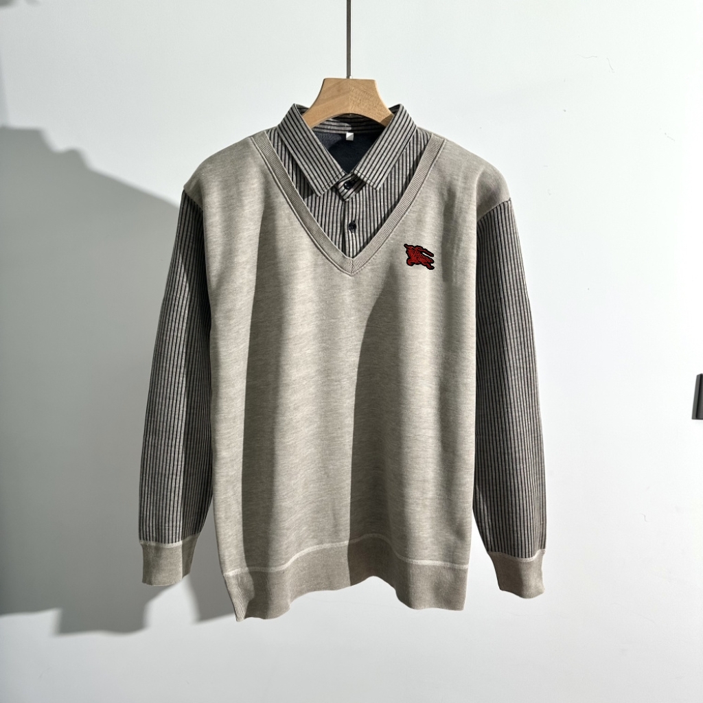 120128498 - 巴宝莉2025年秋冬男士翻领假两件水貂绒毛衣 经典之作 百 376809