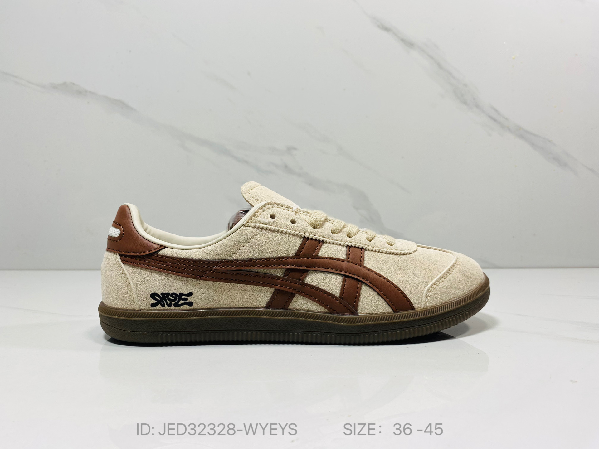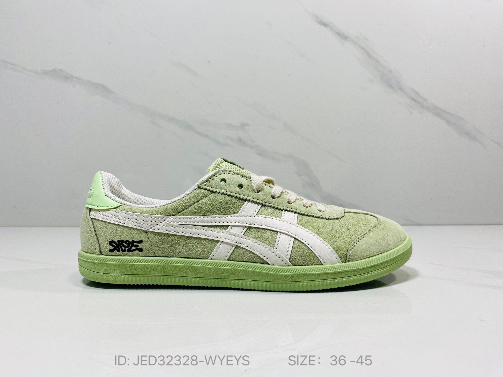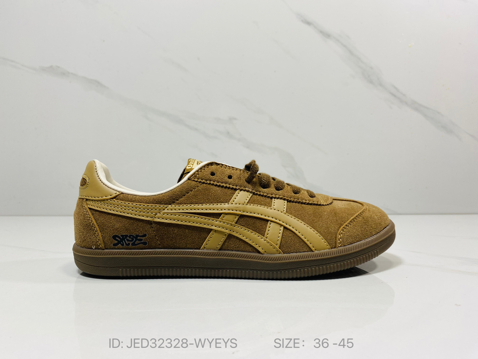 鞋跟 鞋舌处印有鬼塚虎特有的品牌logo标志