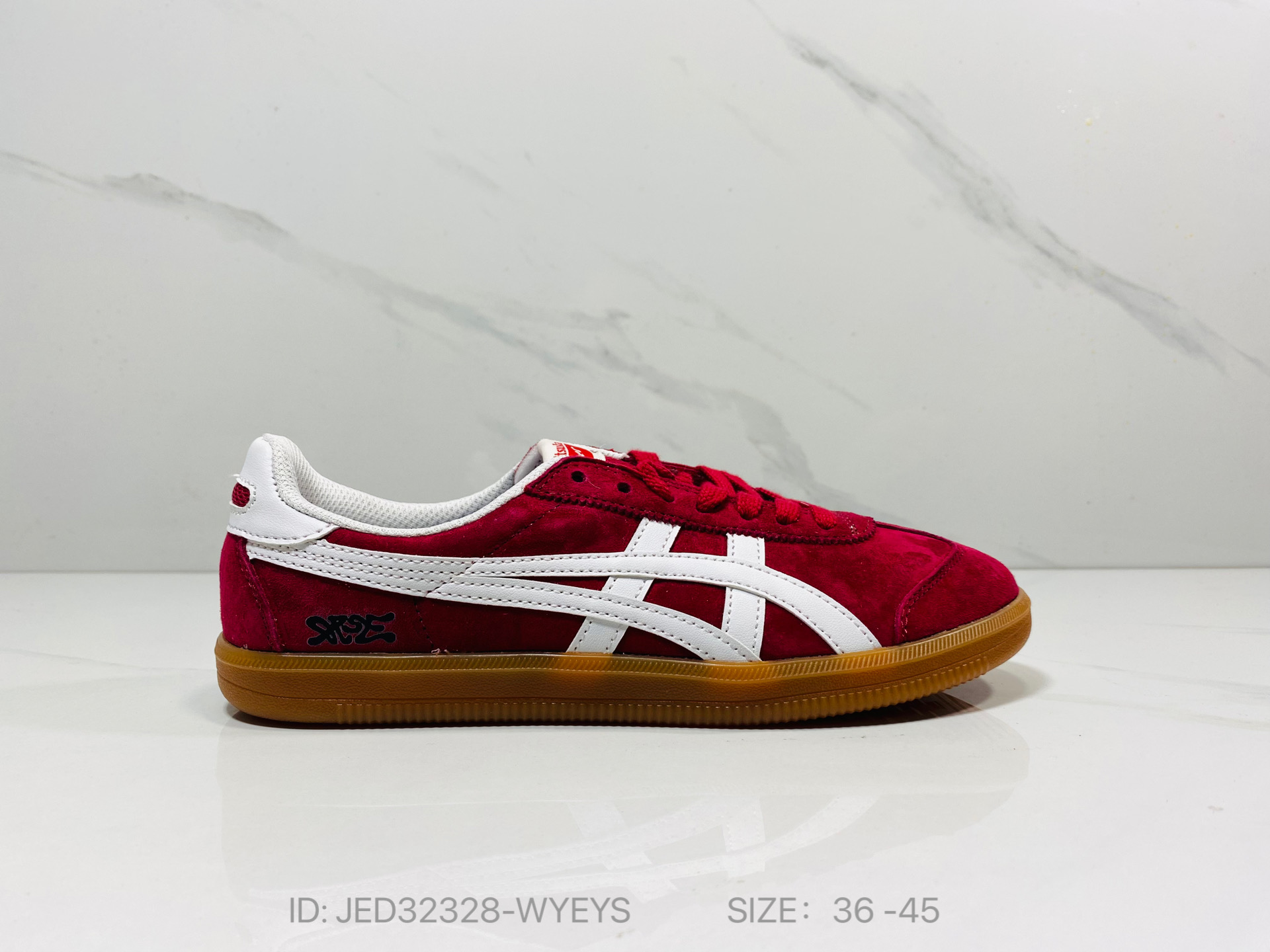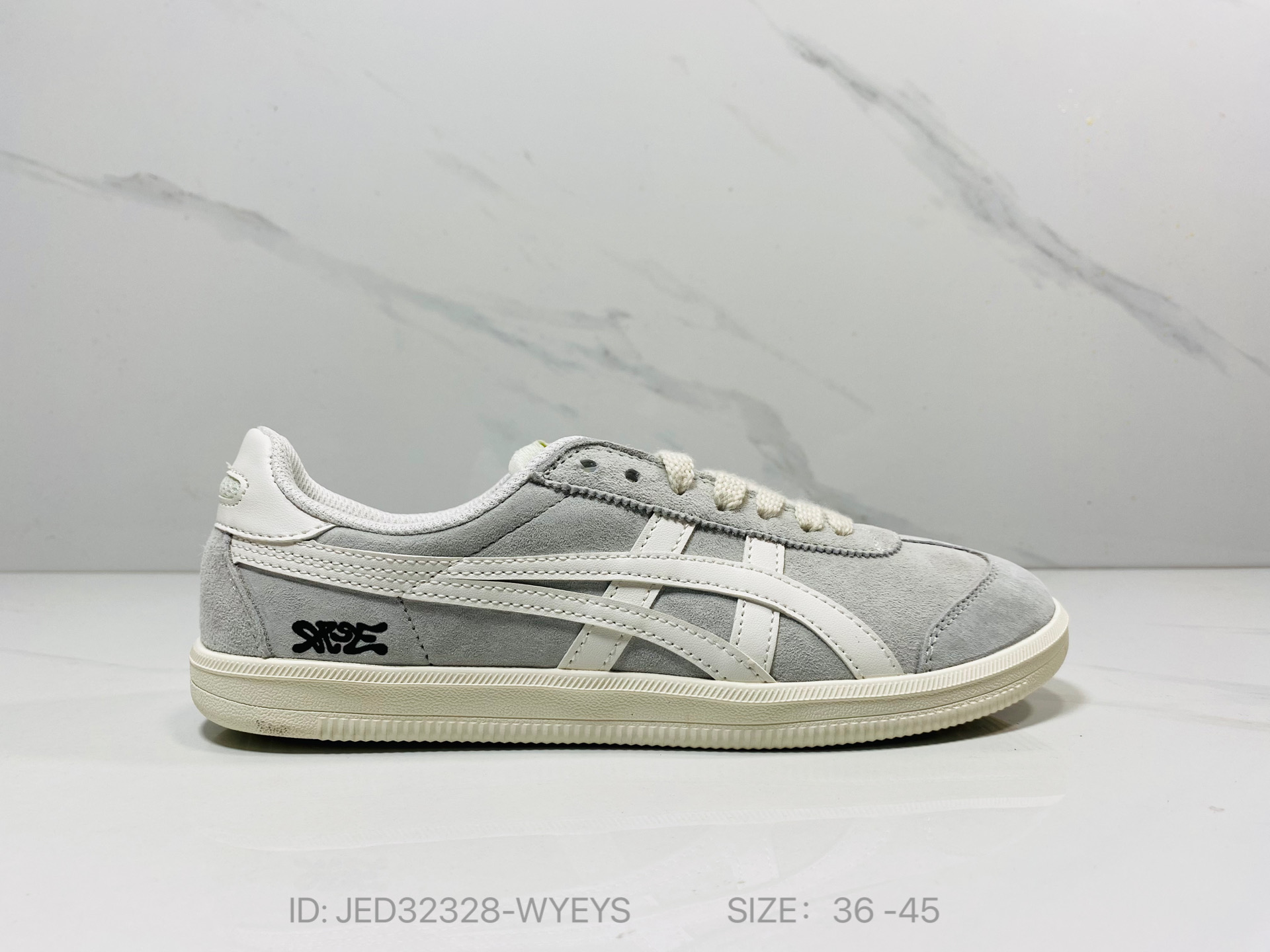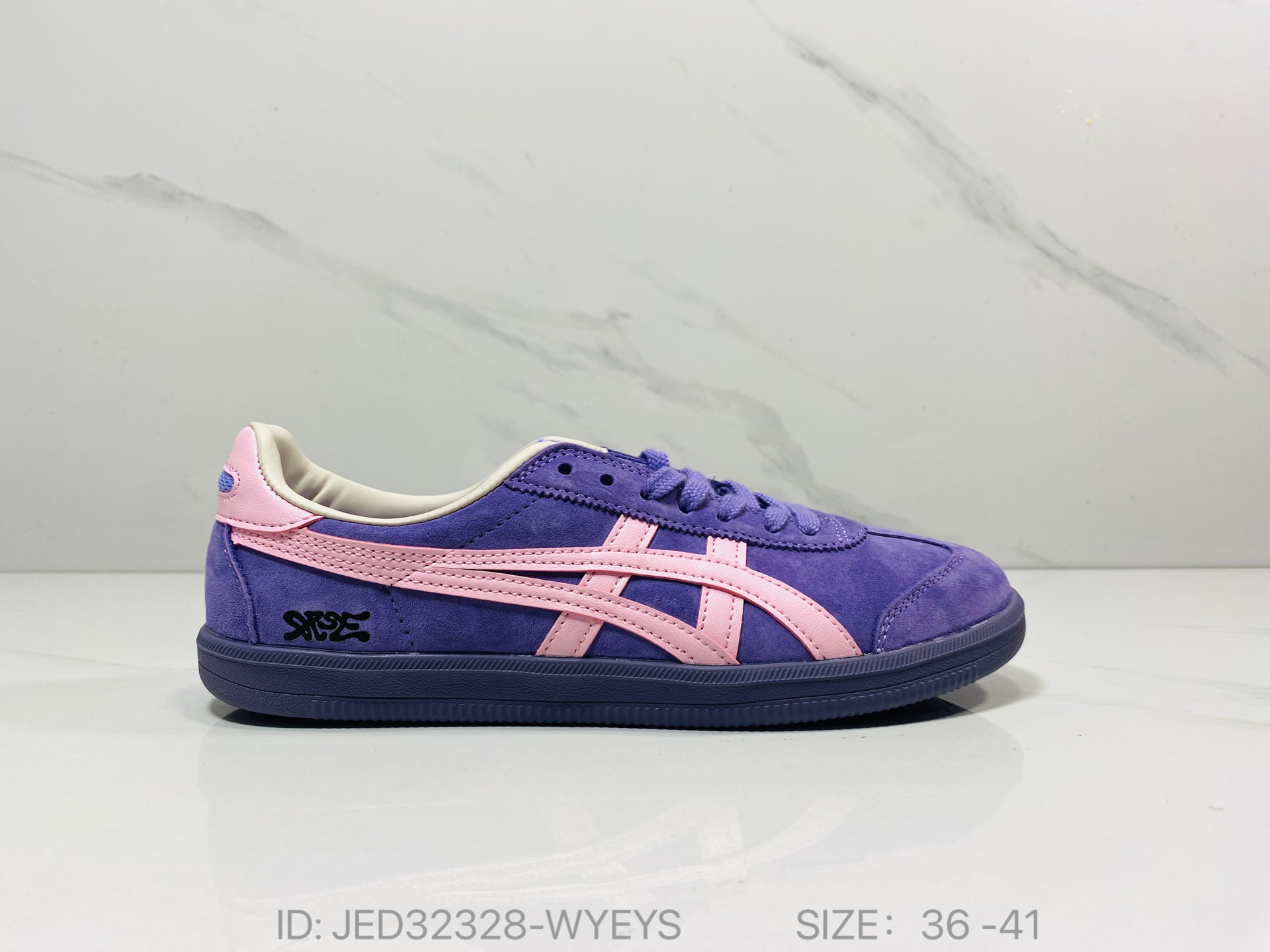 鞋跟 鞋舌处印有鬼塚虎特有的品牌logo标志
