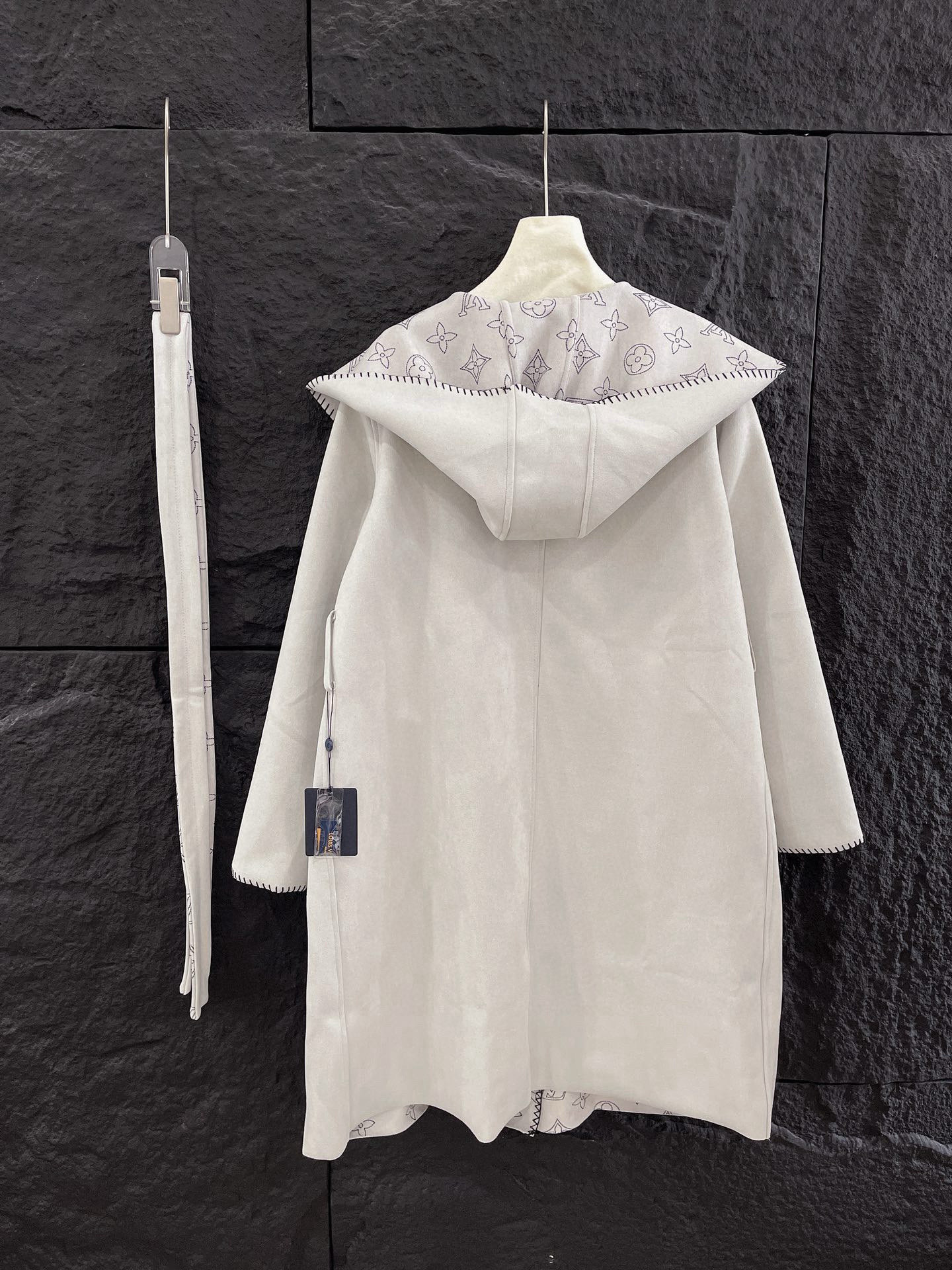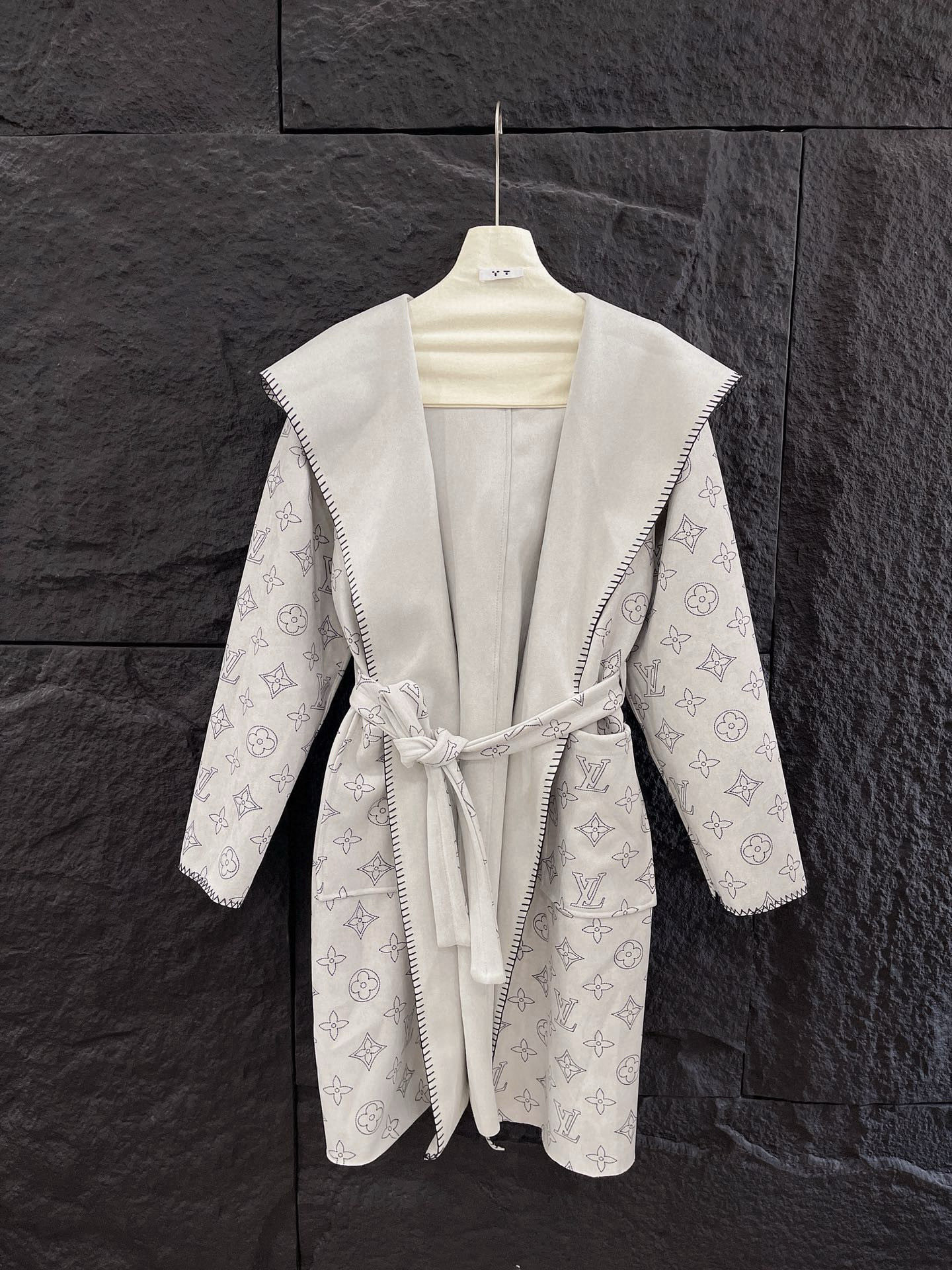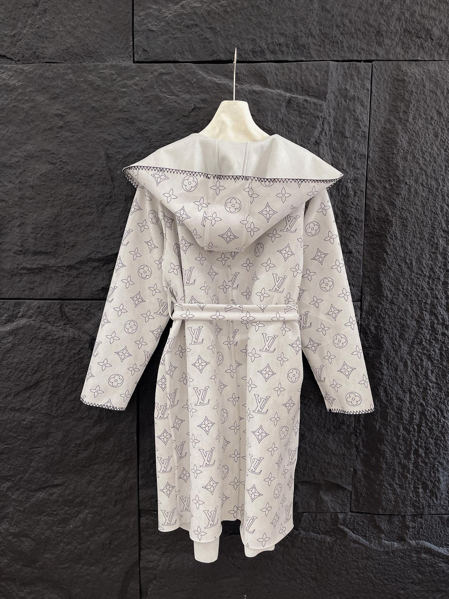 Louis Vuitton LV 驴家满印老花四叶草字母印花连帽大衣外套配腰带 双面穿