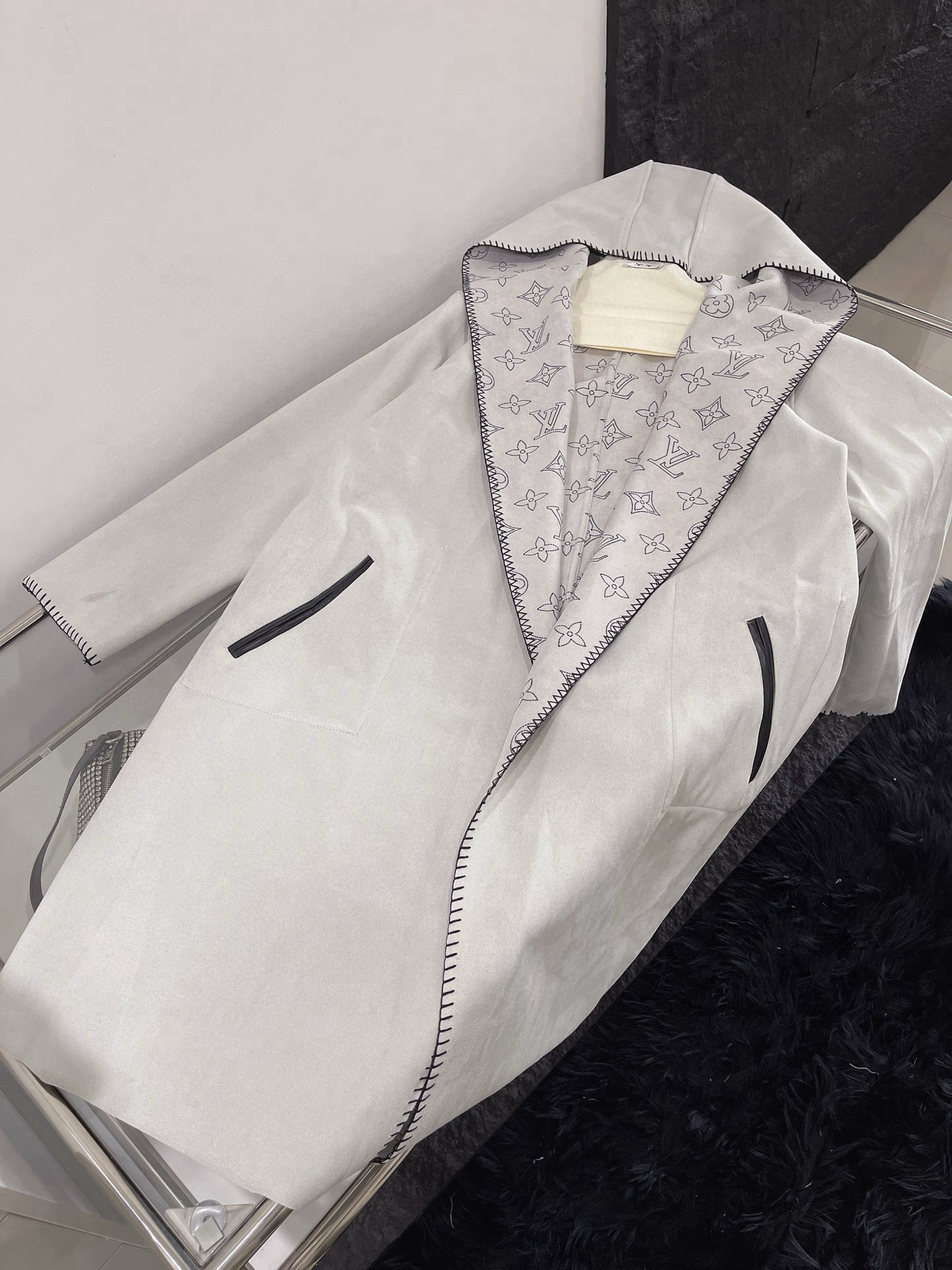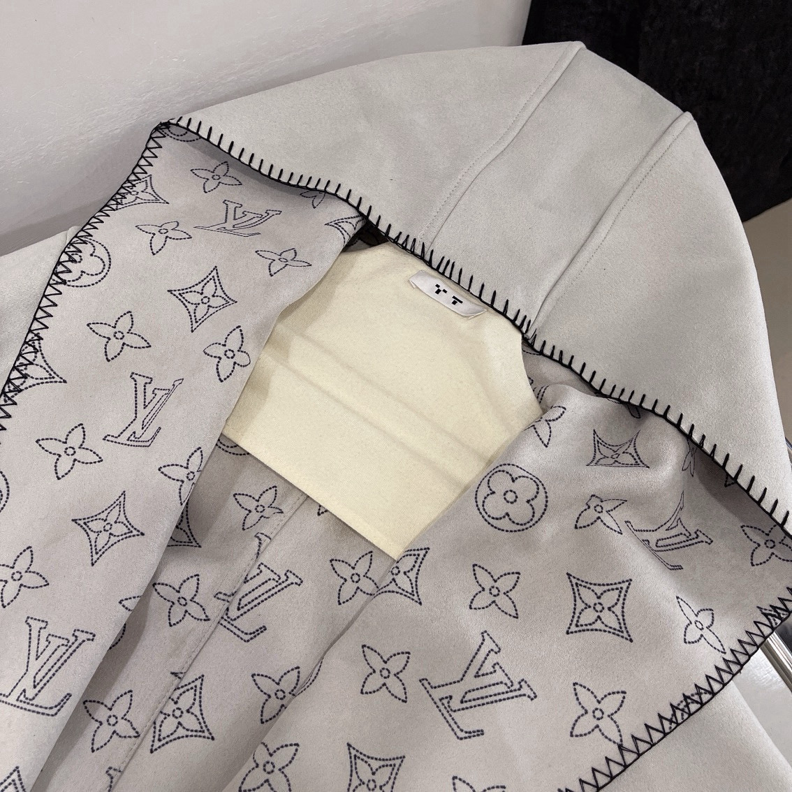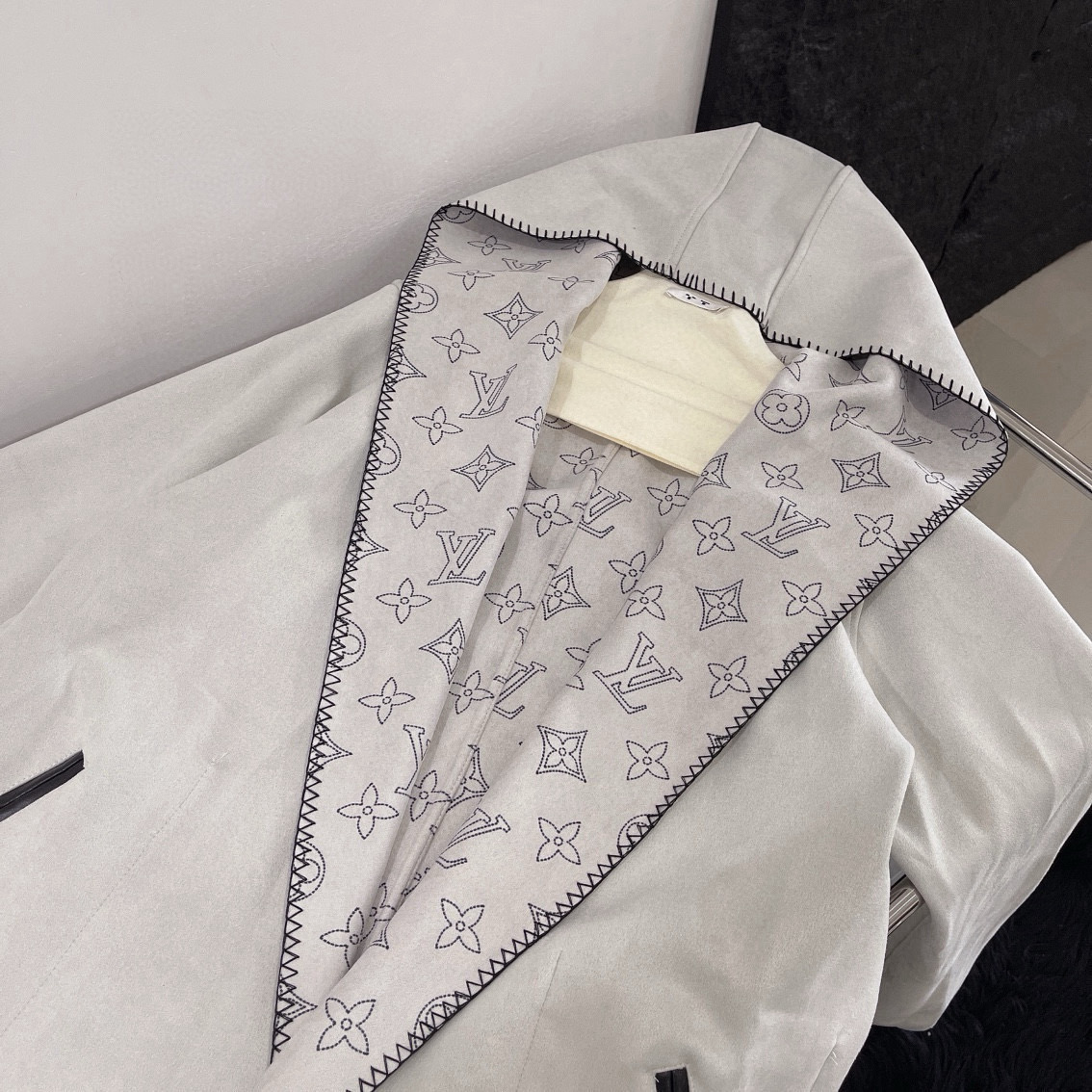 Louis Vuitton LV 驴家满印老花四叶草字母印花连帽大衣外套配腰带 双面穿