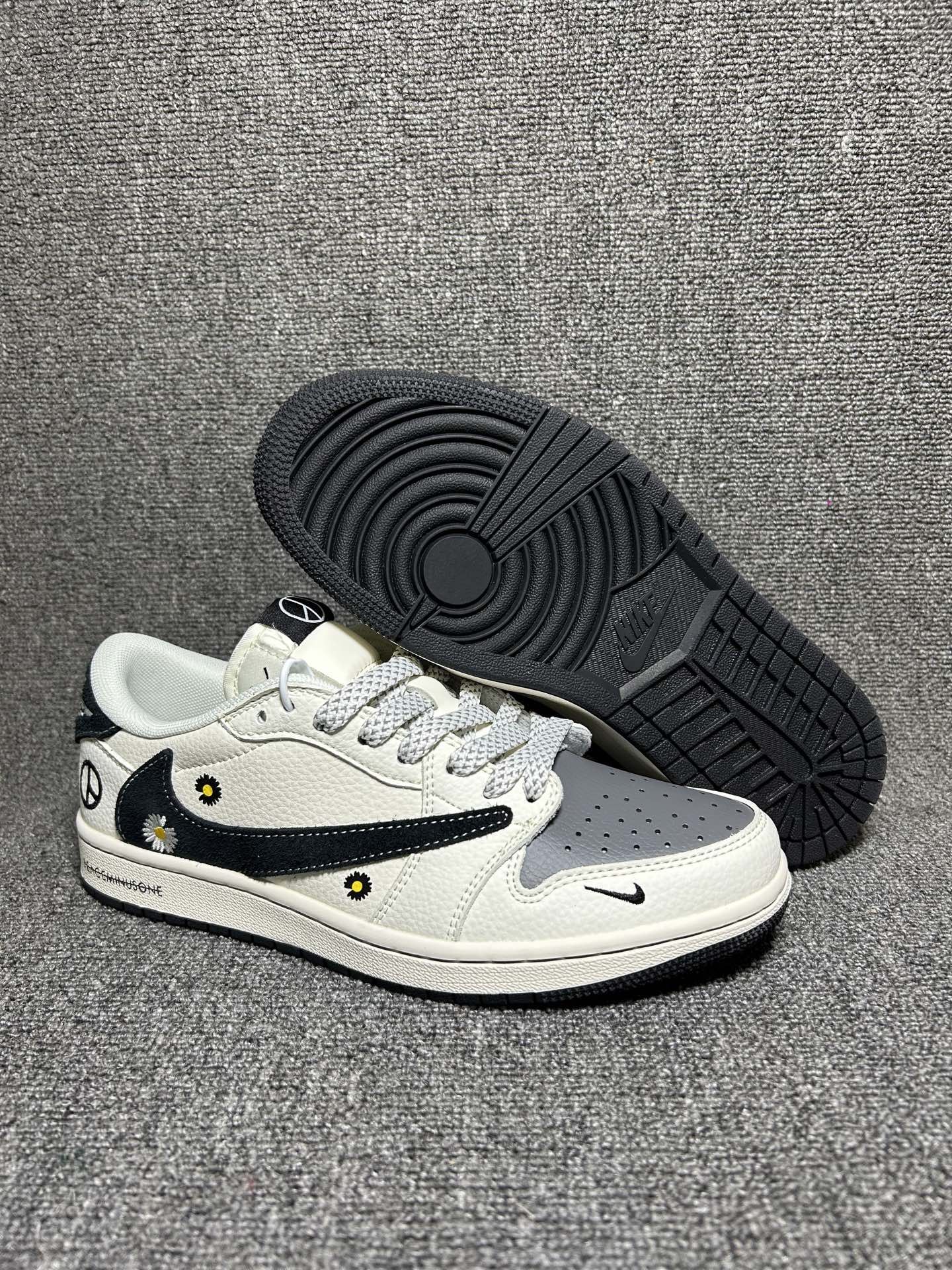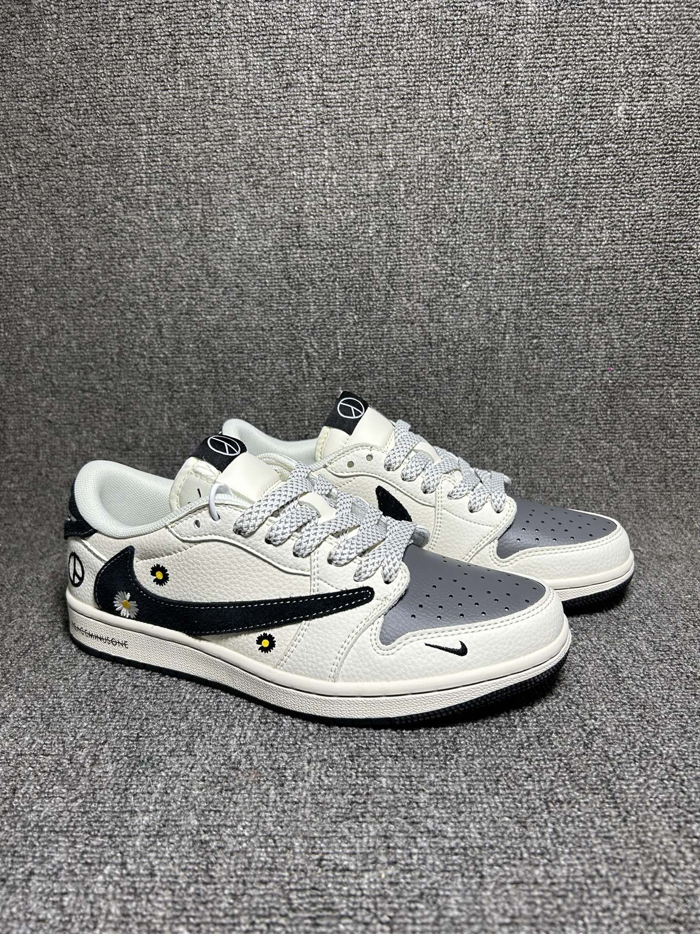 海外爆款限量发售 Travis Scott x Jordan 1 Low 权志龙联名 雏菊米灰黑 高端定制 乔丹倒勾低帮休闲板鞋 大厂纯原品质出货 纯正版型 定制鞋盒 皮料切割干净无任何毛边 细节完美 超高清洁度