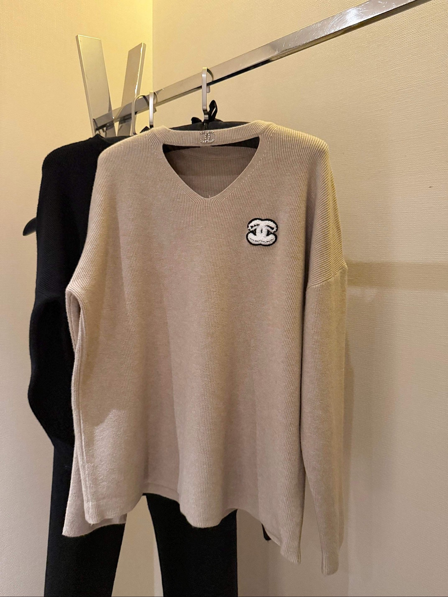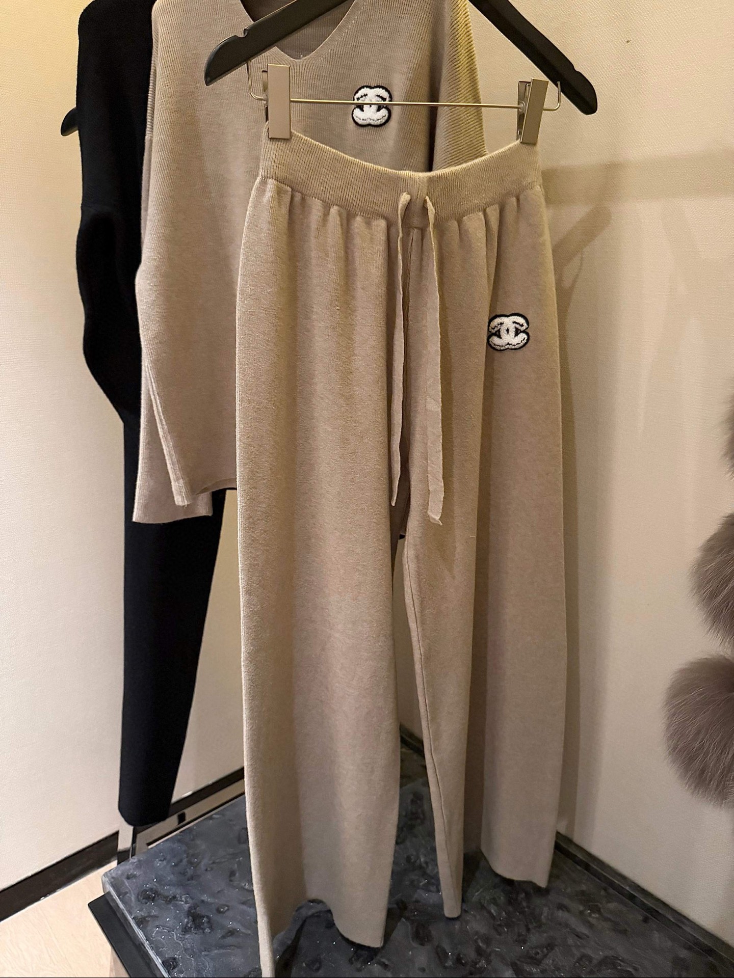 165135597 - Chanel香奈儿小香双C立体毛巾绣花镂空毛衣抽绳长裤针织套 383664
