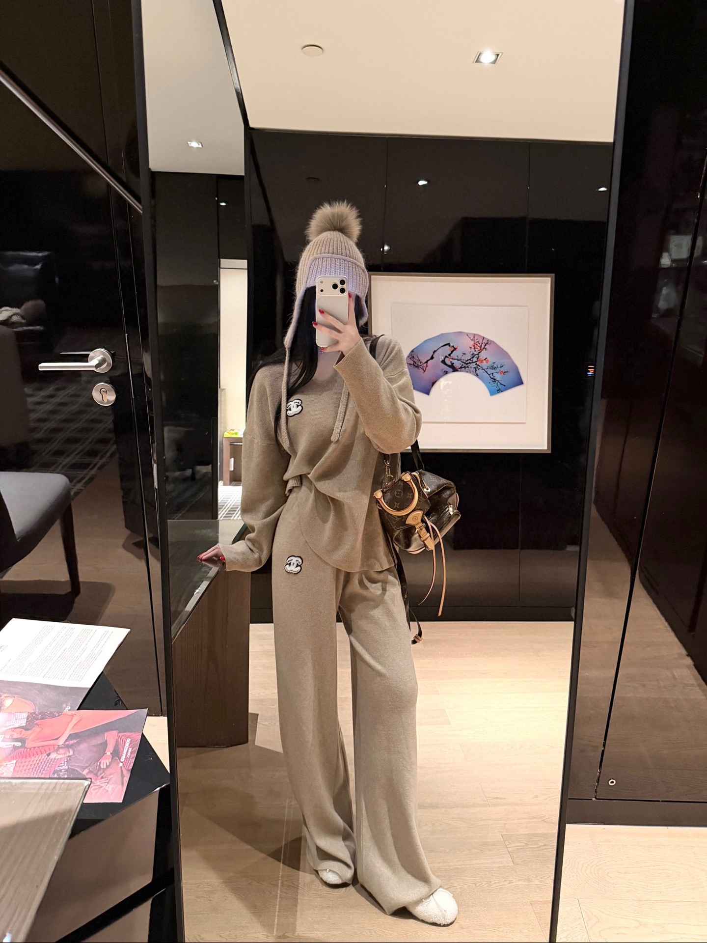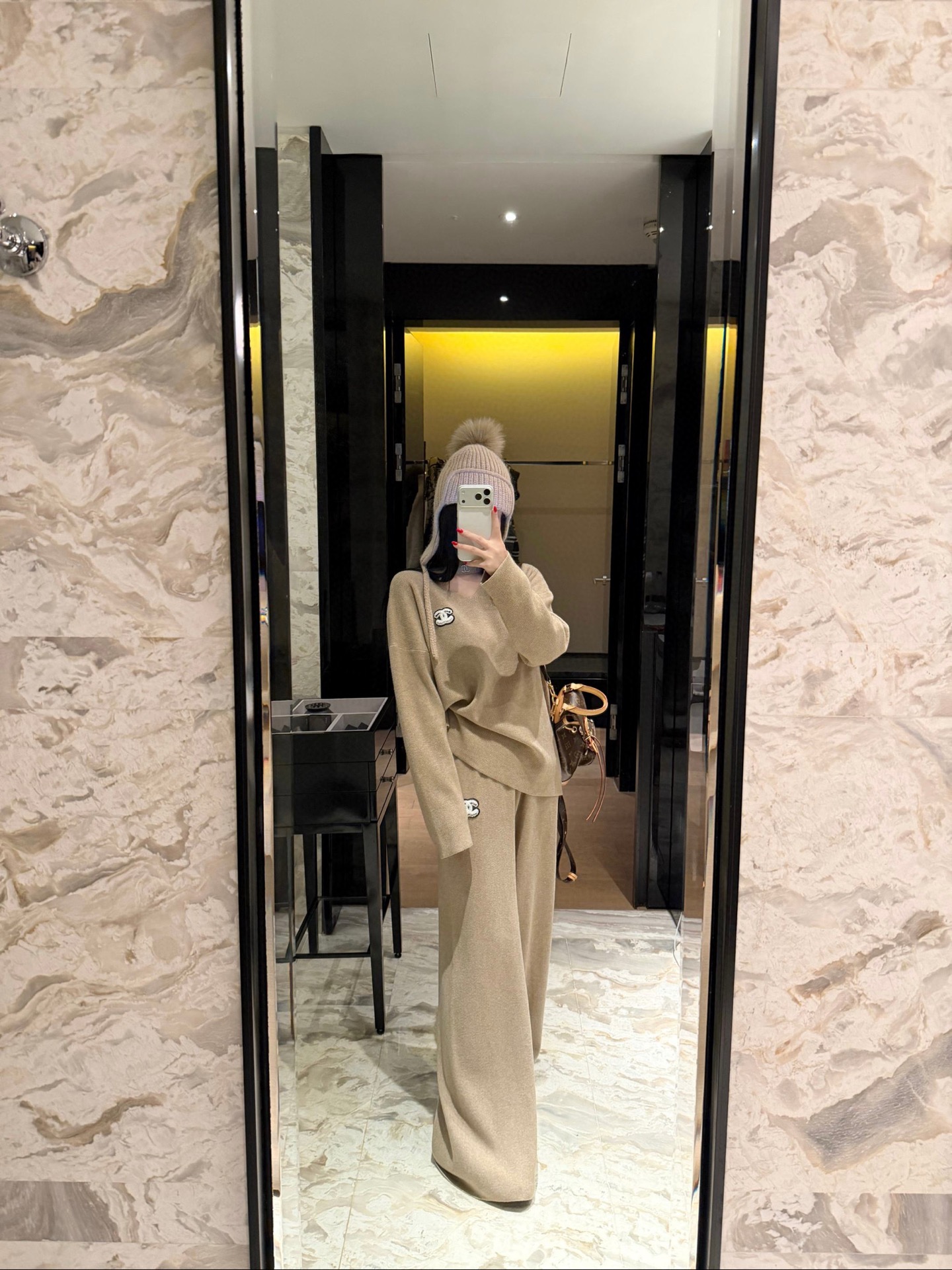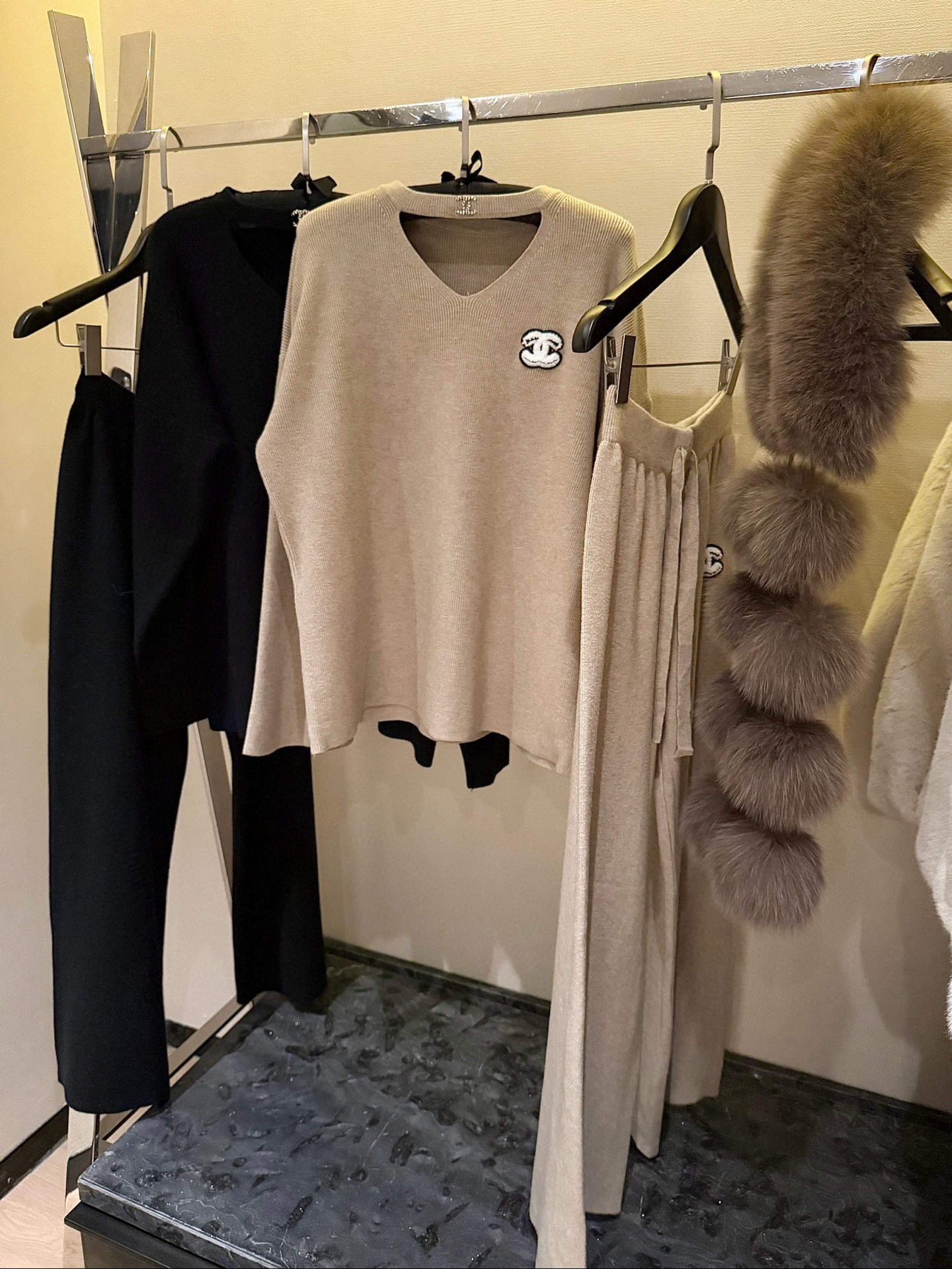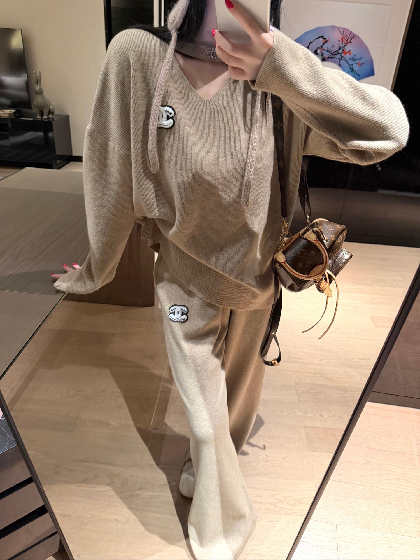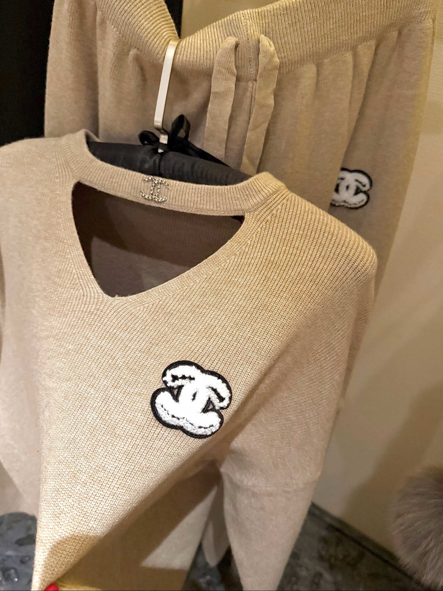 Chanel香奈儿小香双C立体毛巾绣花镂空毛衣抽绳长裤针织套装