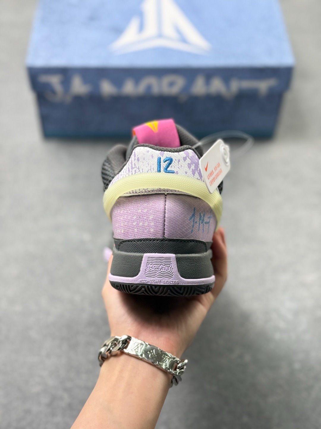个性化设计 鞋上有莫兰特自己手写的签名 个人标志和球衣号码 体现了专属的个人风格 也彰显了球员的特色