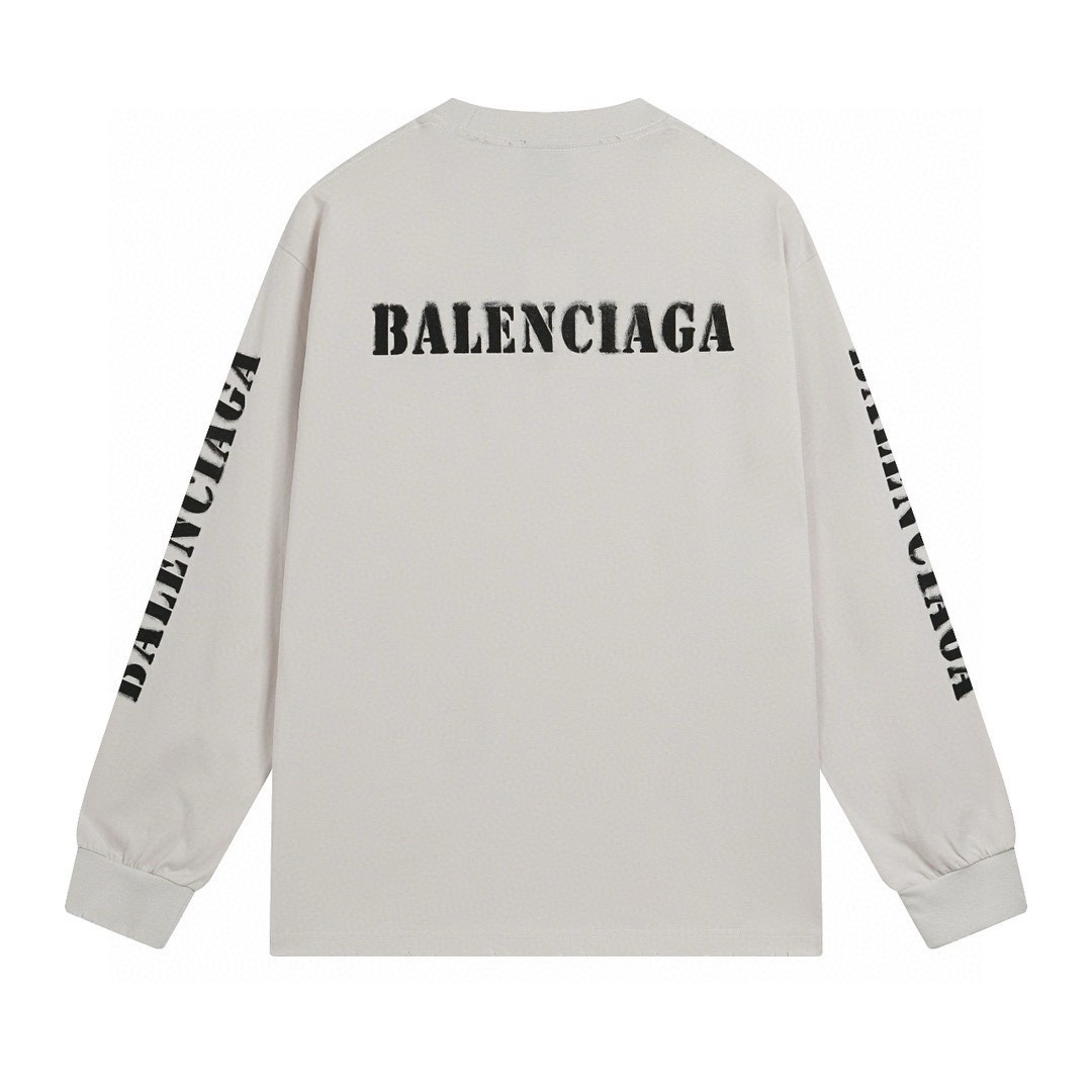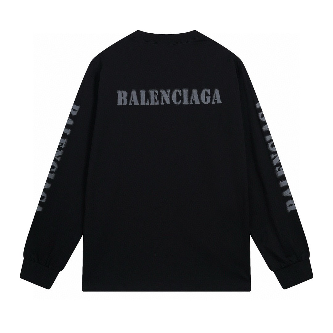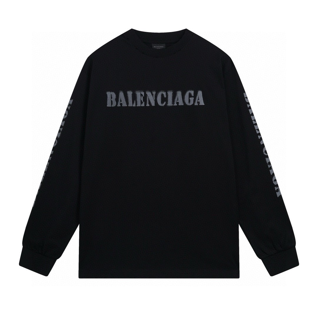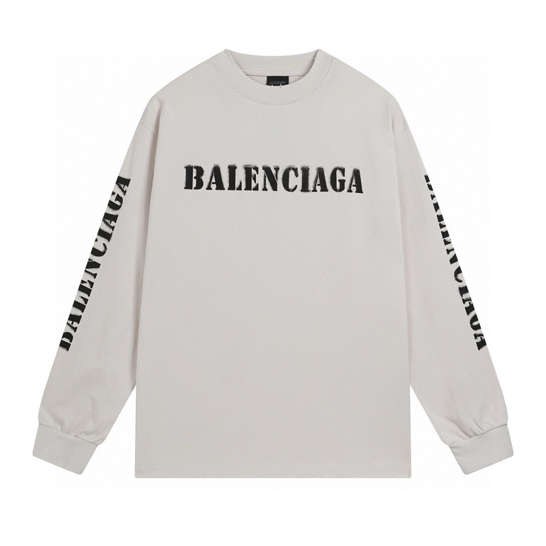 代发 BALENCIAGA 巴黎世家2025 SS 新款模糊字母LOGO印花长袖T恤