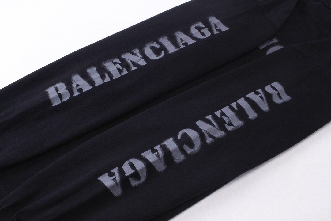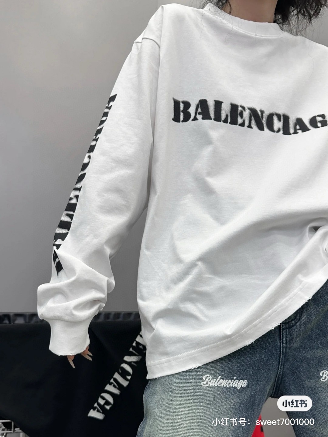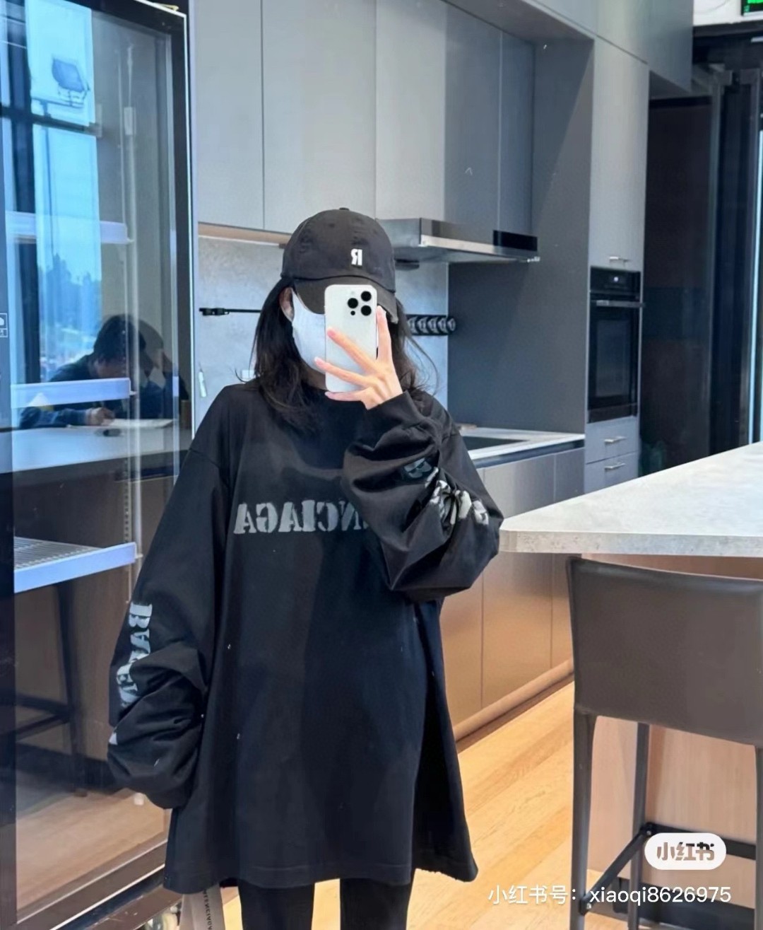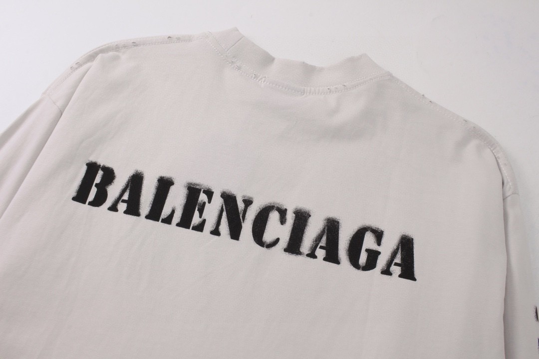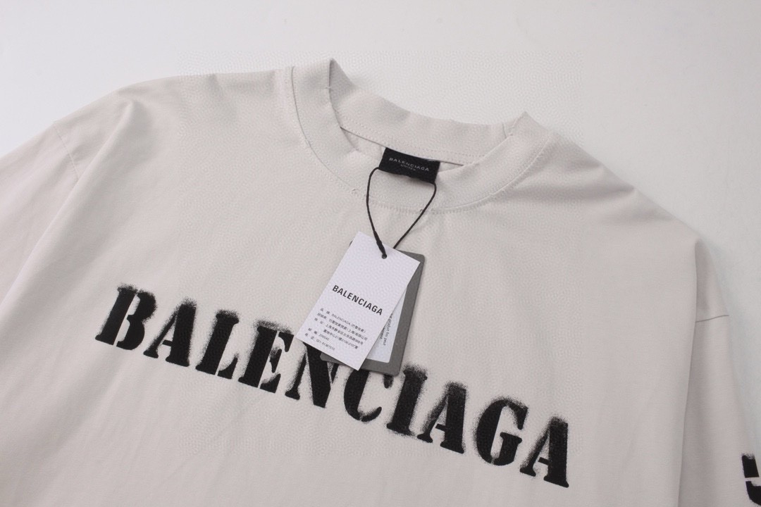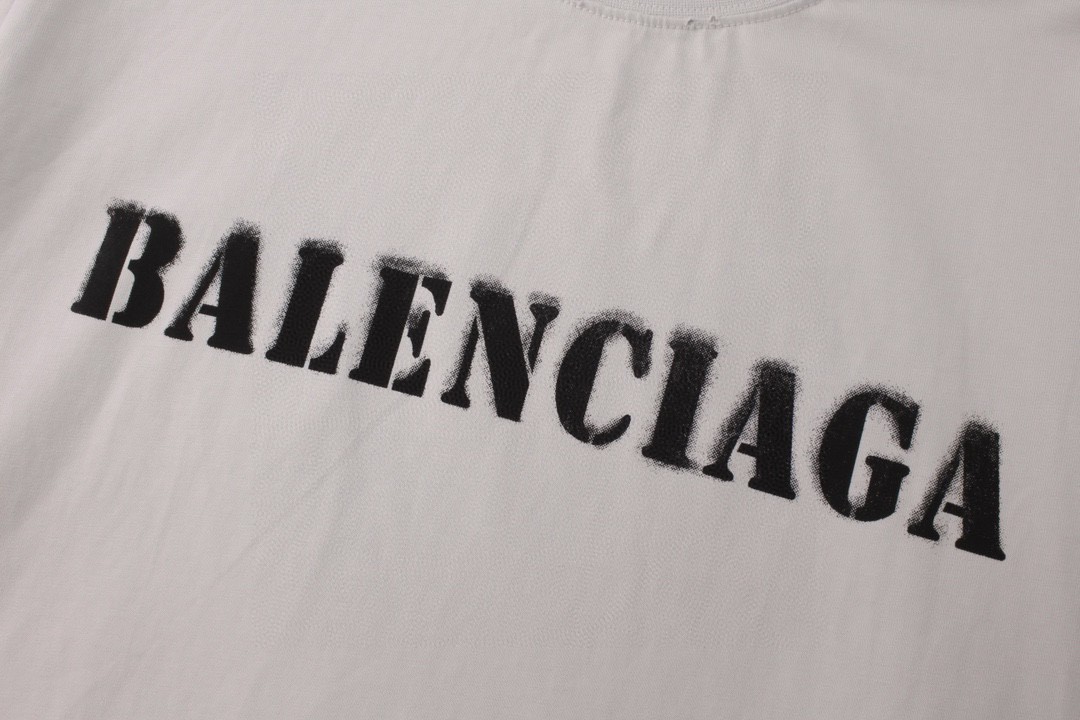 代发 BALENCIAGA 巴黎世家2025 SS 新款模糊字母LOGO印花长袖T恤