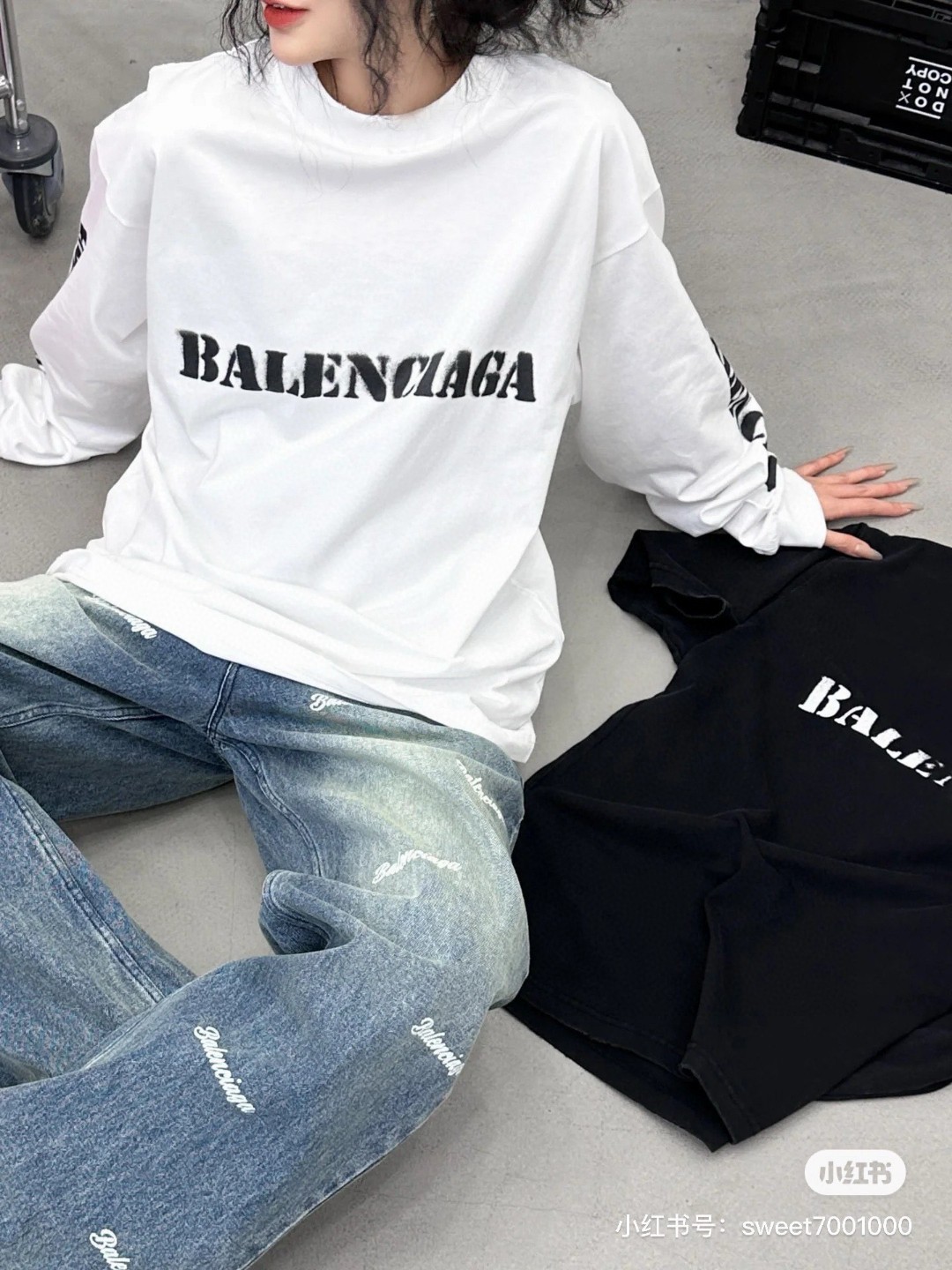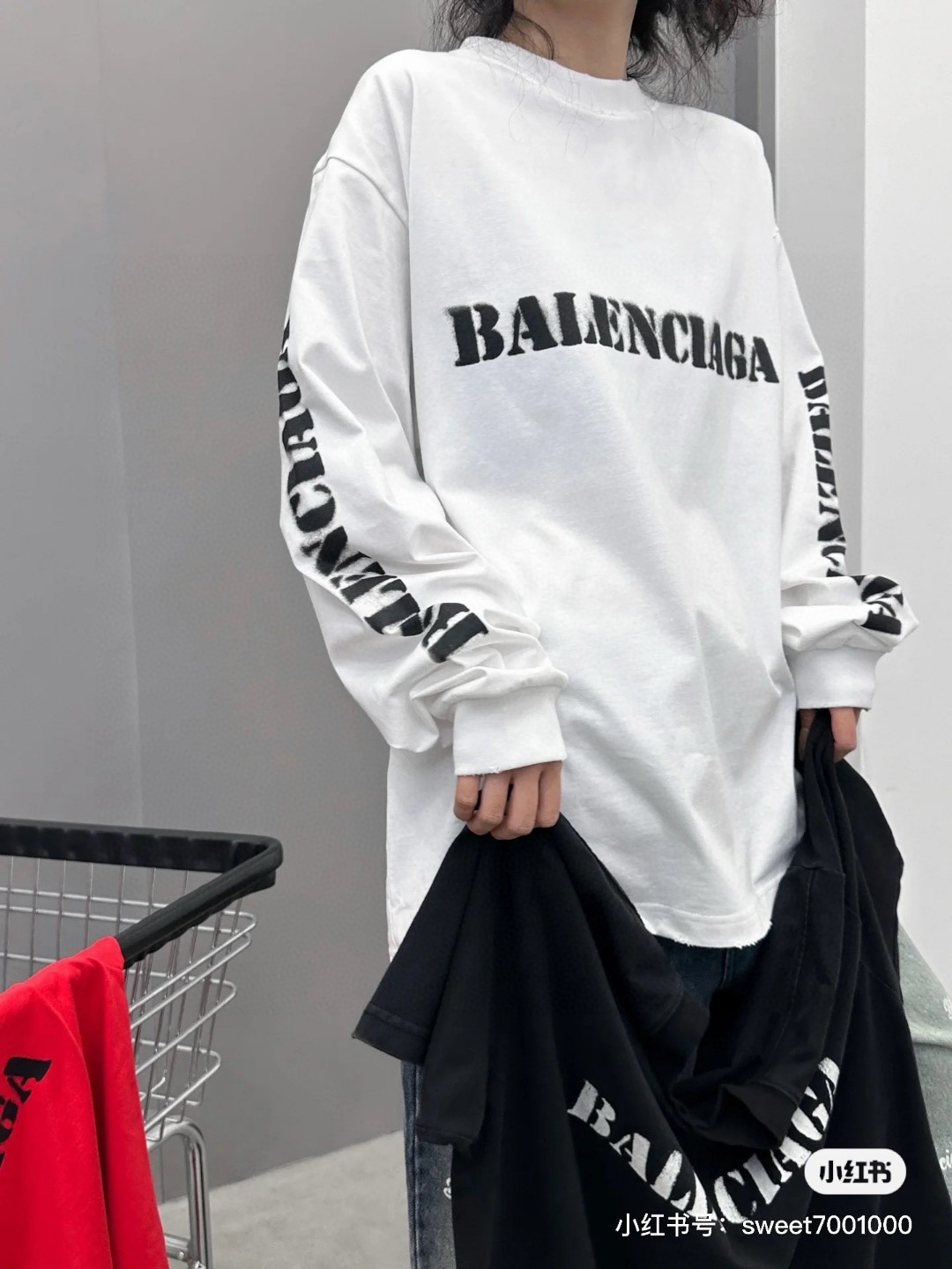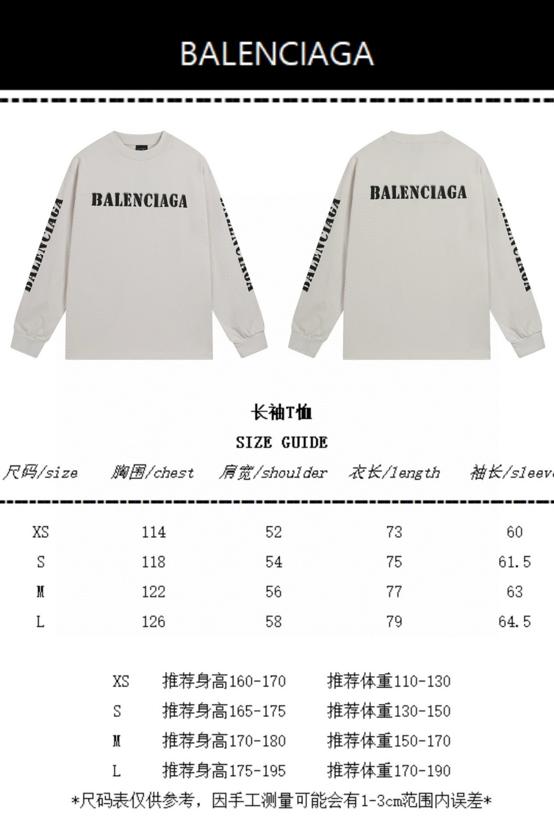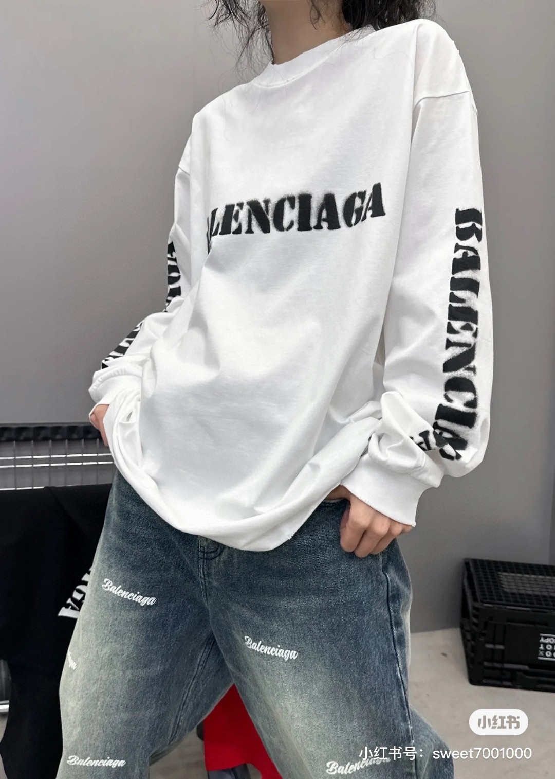 代发 BALENCIAGA 巴黎世家2025 SS 新款模糊字母LOGO印花长袖T恤