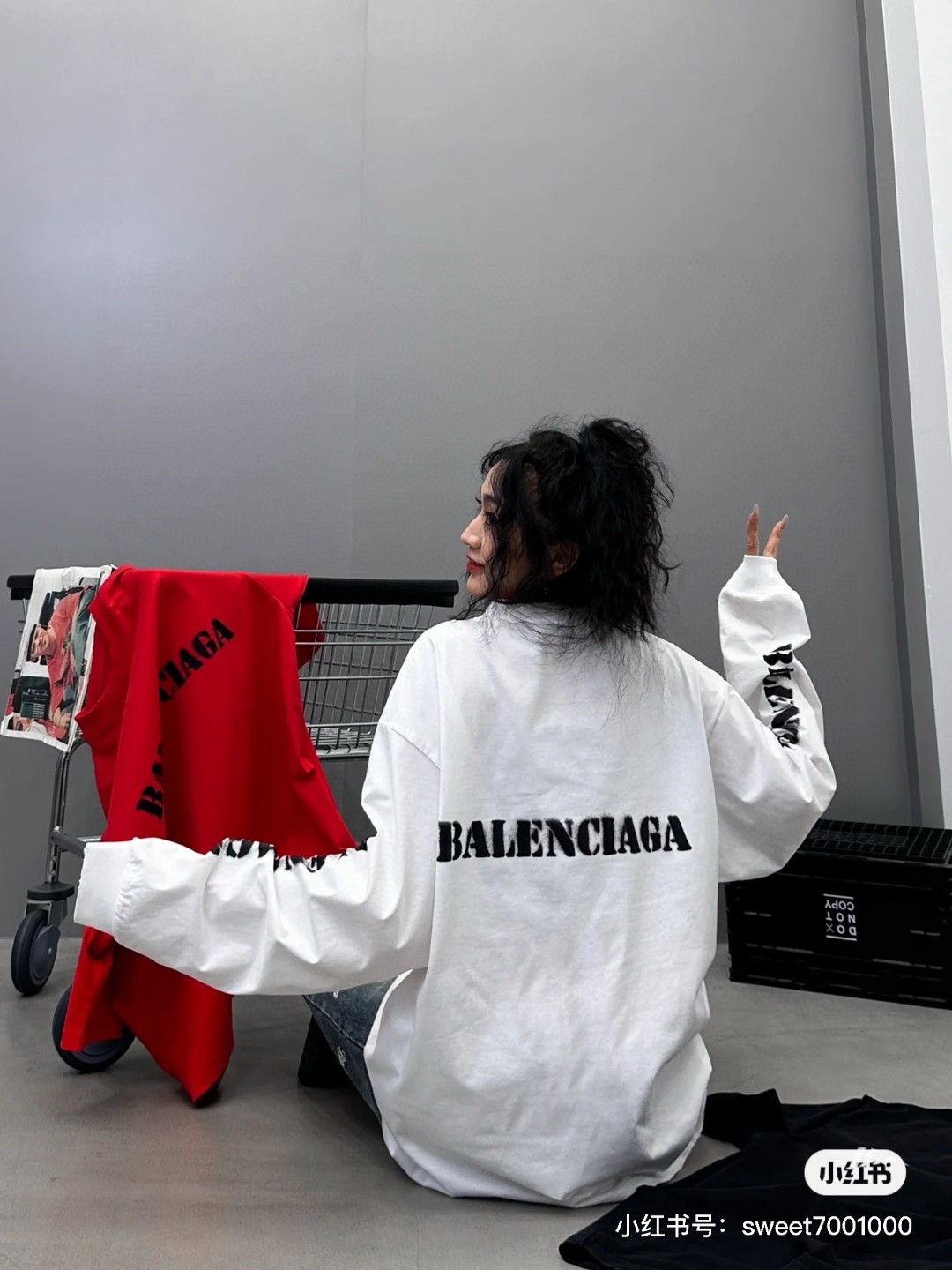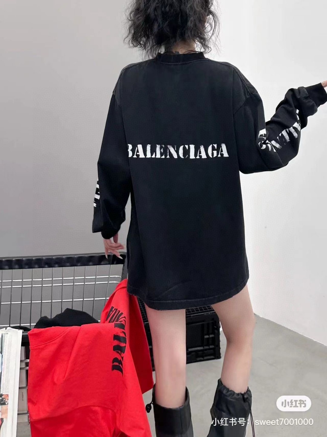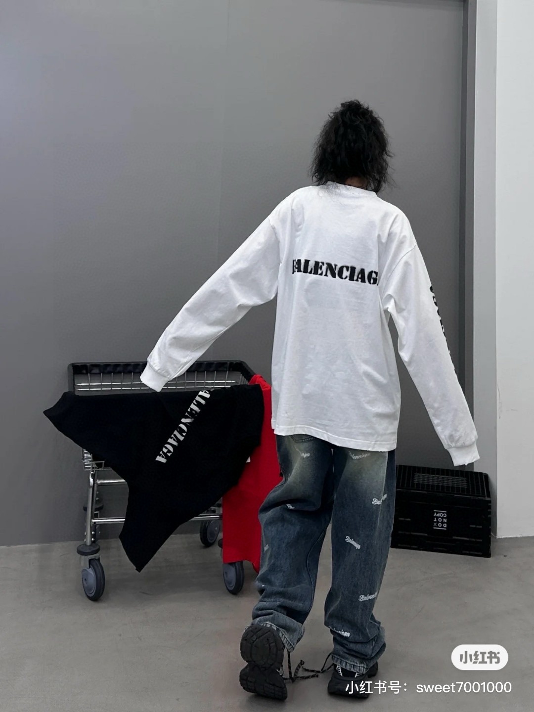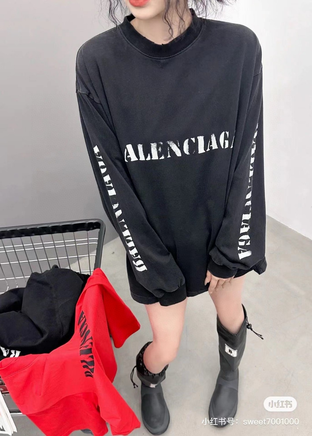 代发 BALENCIAGA 巴黎世家2025 SS 新款模糊字母LOGO印花长袖T恤