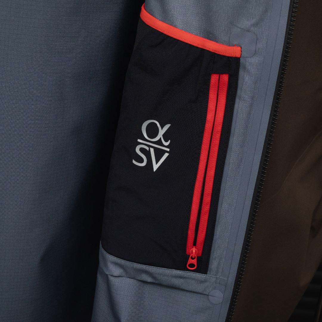 面料 采用经五年开发的新N80p X GORE TEX 面料 这款Alpha SV极度耐磨 柔软安静 紧密机织面料 防水 防雪 耐磨 表面平滑