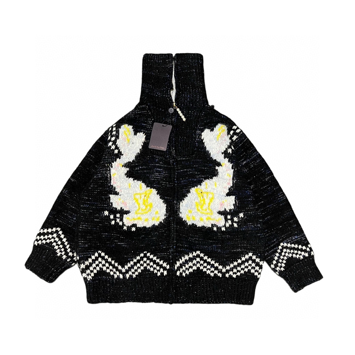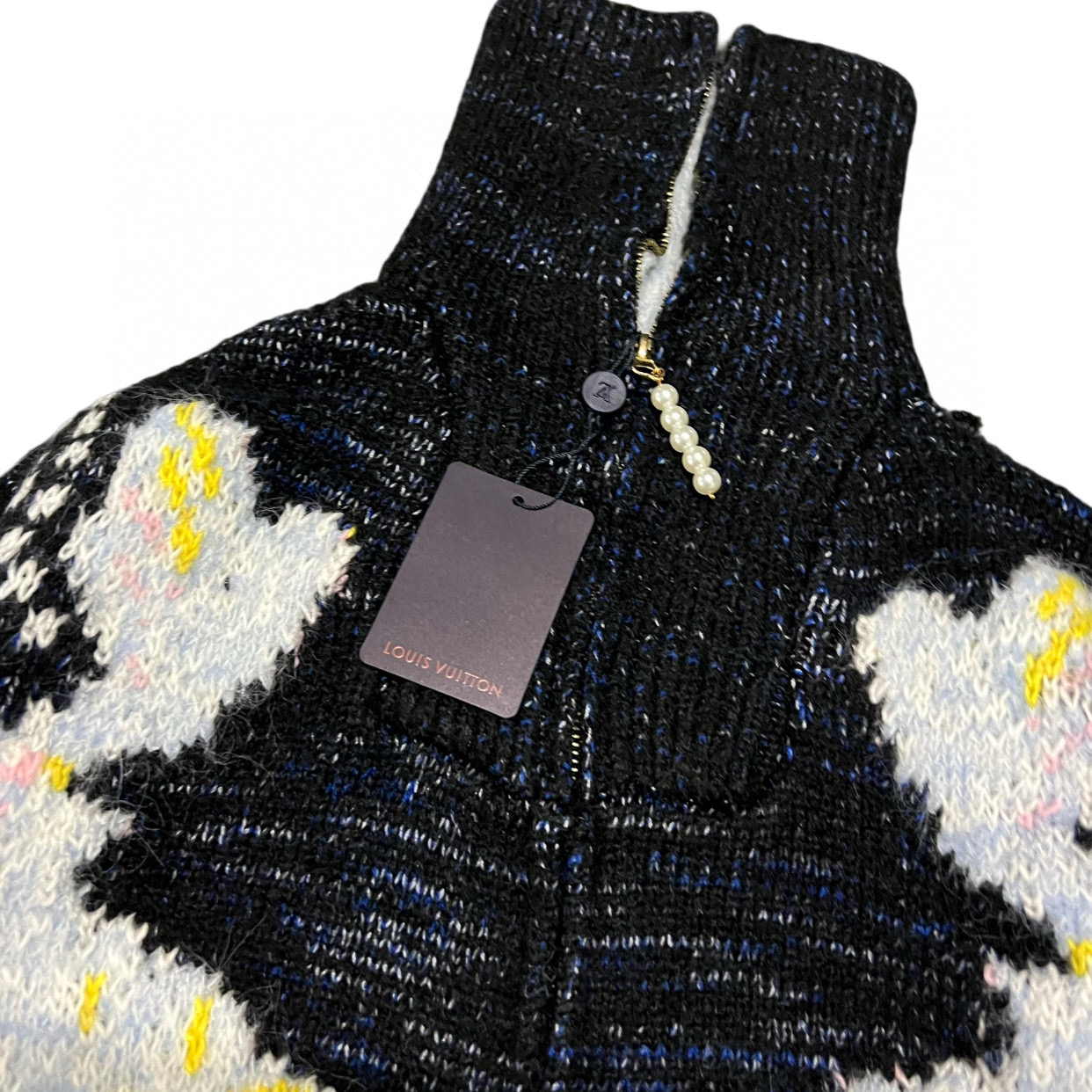 Louis Vuitton LV 路易威登 25ss联名款锦鲤提花粉花logo女款高领大翻领两穿针织毛衣珍珠拉链开衫 顶级南油版本